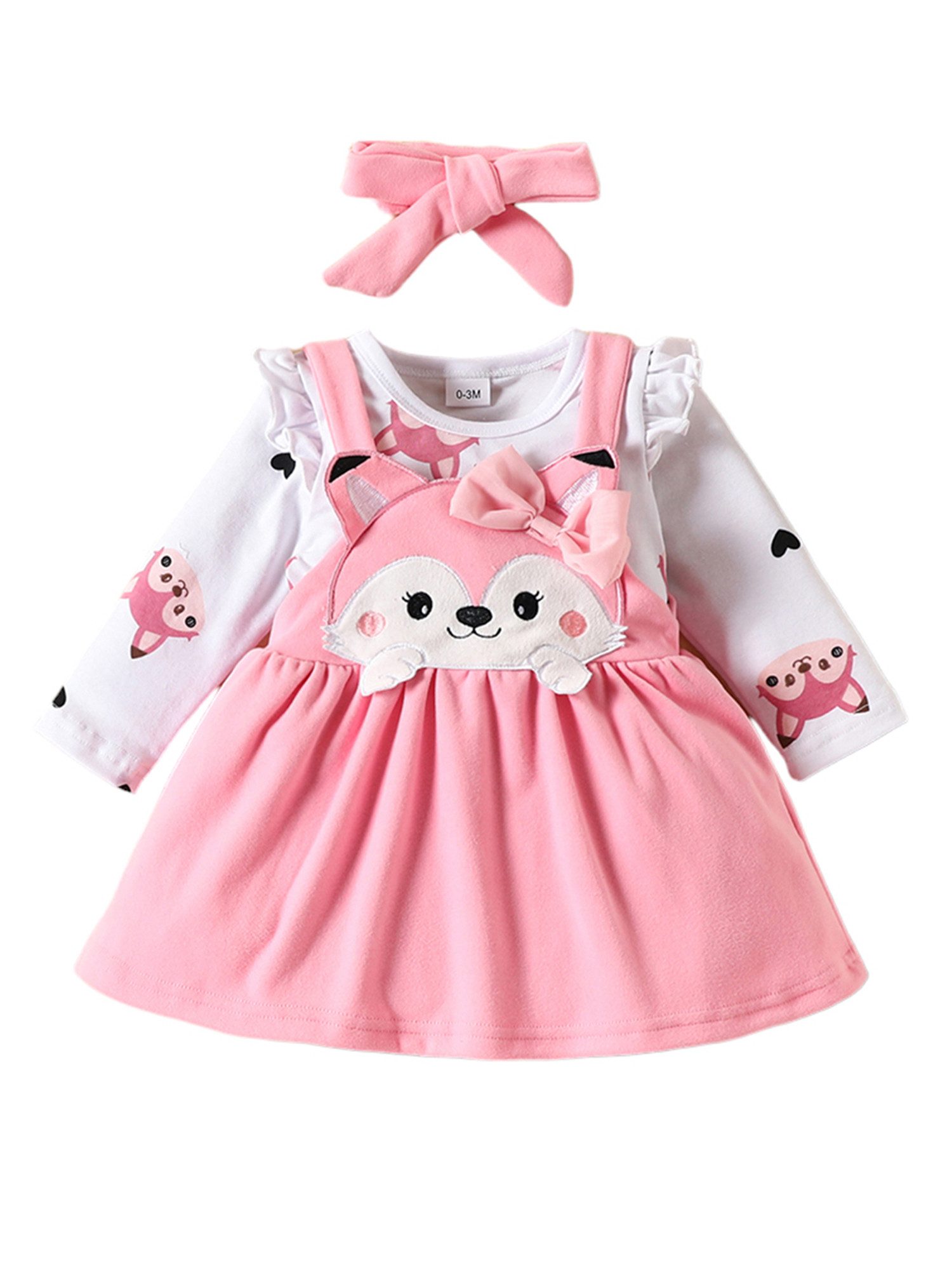 Besondere Merkmale | Fuchs & Herz-Muster Langarm Babykleidung Rüschen Bodysuit Träger Rock |