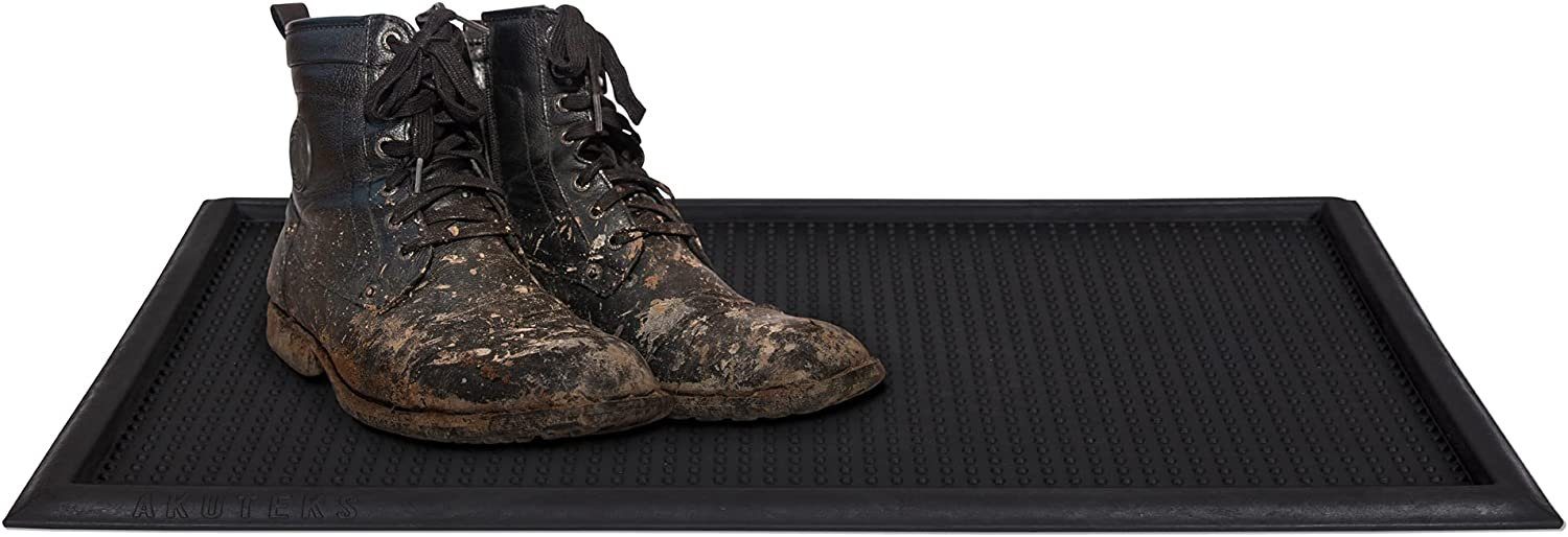 Products - Boottrays Eine Matte mit erhöhtem Rand: Draußen regnet es und ihre Schuhe sind durchnässt? Sie suchen etwas für die Futternäpfe Ihrer Tiere? Hierfür ist diese Matte perfekt geeignet. Sie ist unten geschlossen, so tritt kein Wasser oder Schmutz aus und Sie können die Matte einfach ausschütten. Rutschfest: Durch die Применитьung aus 100 % recyceltem PVC ist die Matte sehr rutschfest. So bleibt sie, wo sie ist und es gibt kein verrutschen. Leicht zu reinigen: Gerade, wenn man Schuhe oder Futternäpfe in die Matte stellt, wird diese schnell mal schmutzig. Das ist hier aber gar kein Problem, einfach abwaschen oder abduschen, trocknen lassen, wieder an seinen Platz stellen, fertig.
