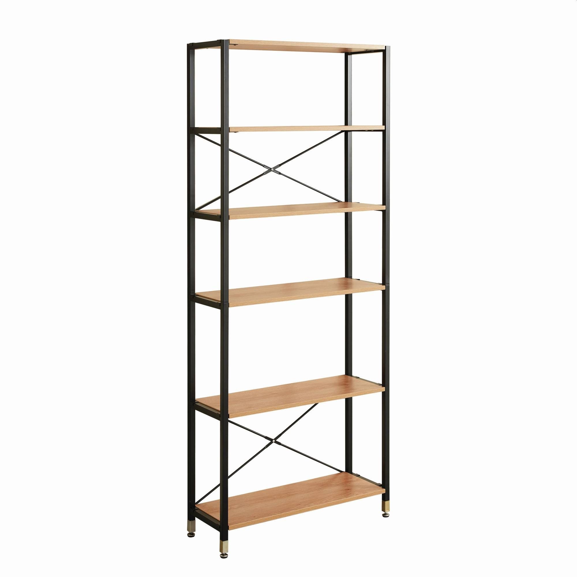 Das Gestell besteht aus stabilem Metall und die Einlegeböden sind aus furniertem MDF in Akazie-Optik. Dank der offenen Aufteilung des Standregals kann dieses auch als Raumteiler genutzt werden.