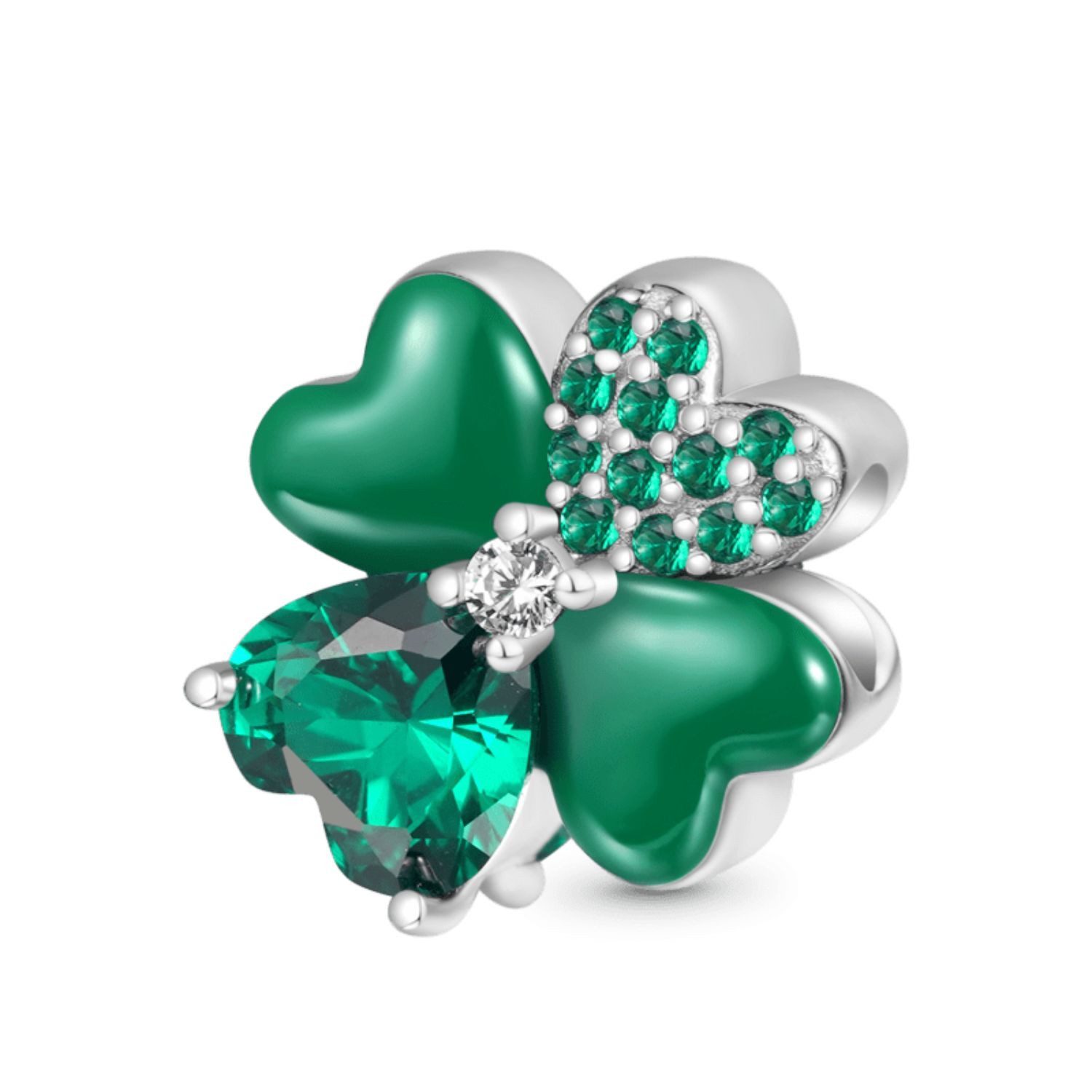 Vierblättriger Glücksklee Charm, wunderschön gestaltet mit einem leuchtend grünen vierblättrigen Kleeblatt. Dieser Charm aus 925er Sterlingsilber symbolisiert Glück und Reichtum. Die filigranen Details und die atemberaubende Farbe machen ihn zu einer bezaubernden Ergänzung für jedes Armband oder jede Halskette.