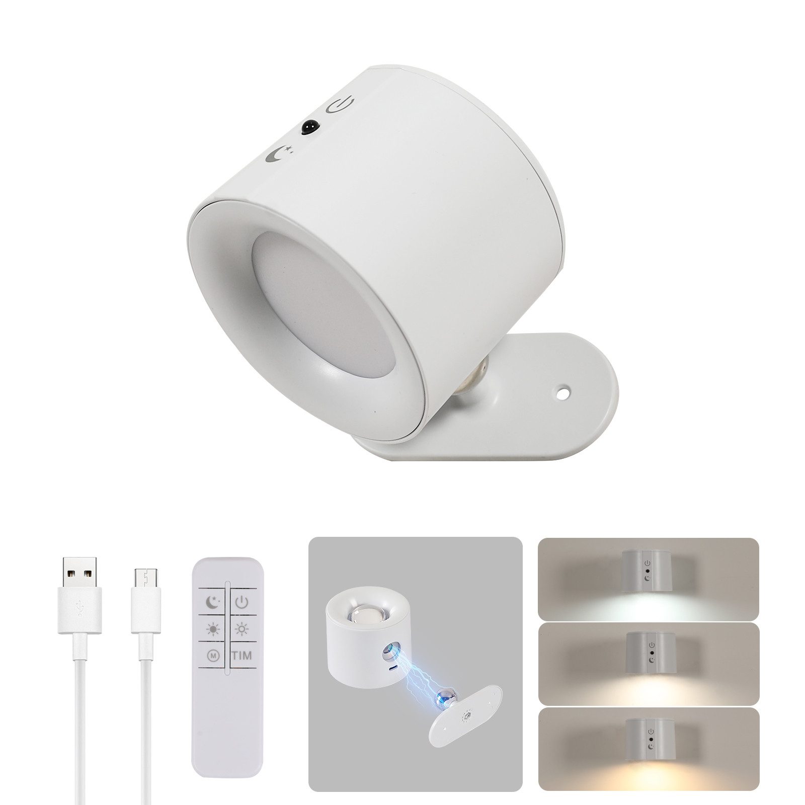 Diese Wandleuchte ist abnehmbar und verfügt über eine um 360° verstellbare Halterung. Sie kann auch zum mobilen Laden oder als Taschenlampe abgenommen werden.