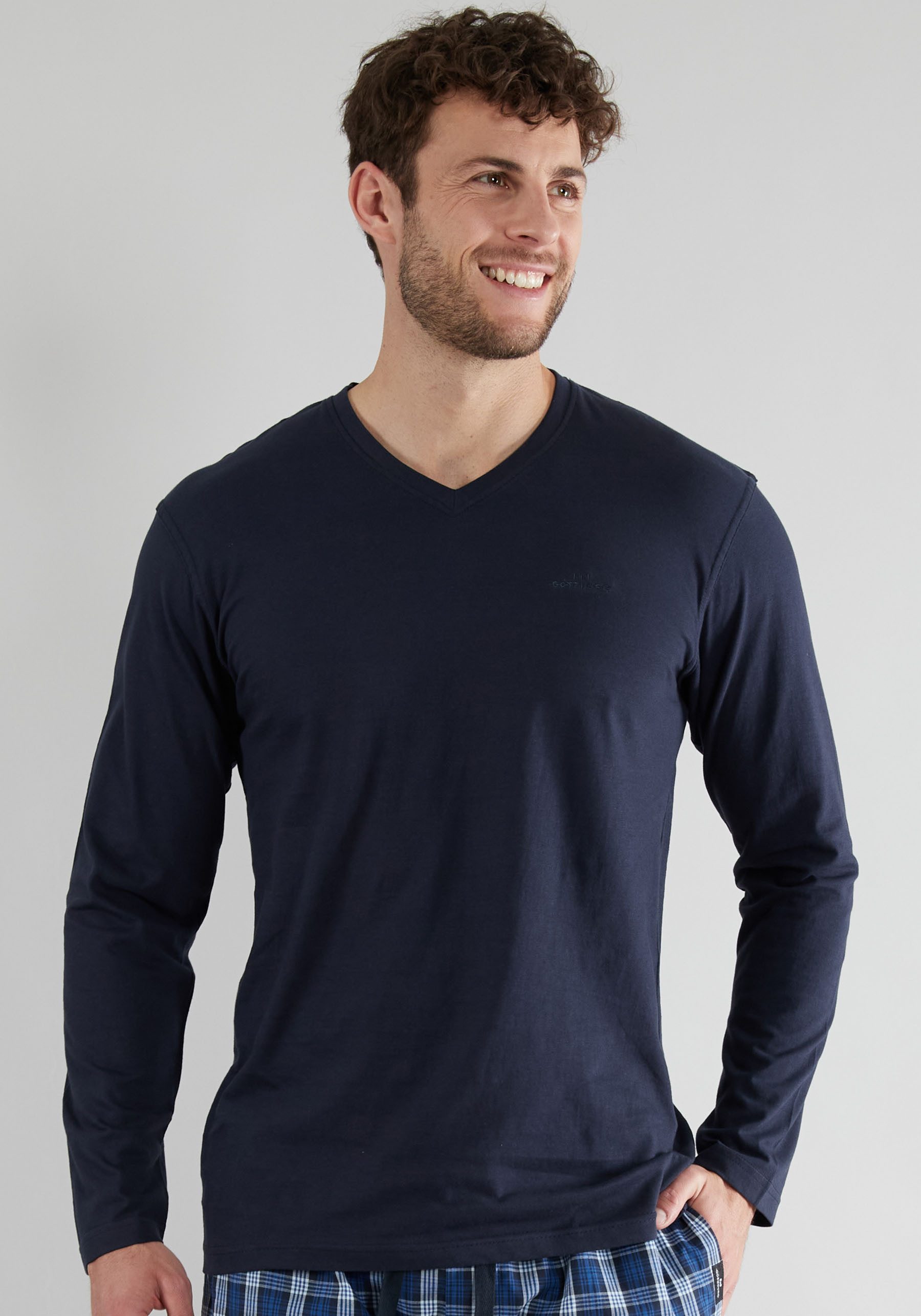 Besondere Merkmale | V-Ausschnitt, Langarm, unifarben, weich, bequem, Baumwolle |