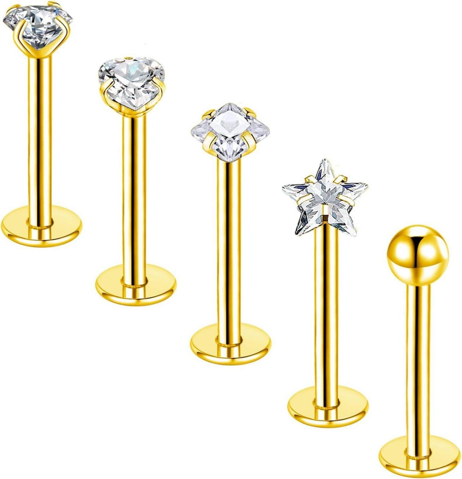 Die 5stk Lippenpiercing Labret Stecker aus hochwertigem Edelstahl sind die perfekte Ergänzung für Ihr Piercing-Schmucksortiment. Jede Bestellung enthält 5 Stecker mit einer Stablänge von 10mm, die in einem eleganten Samtbeutel geliefert werden.