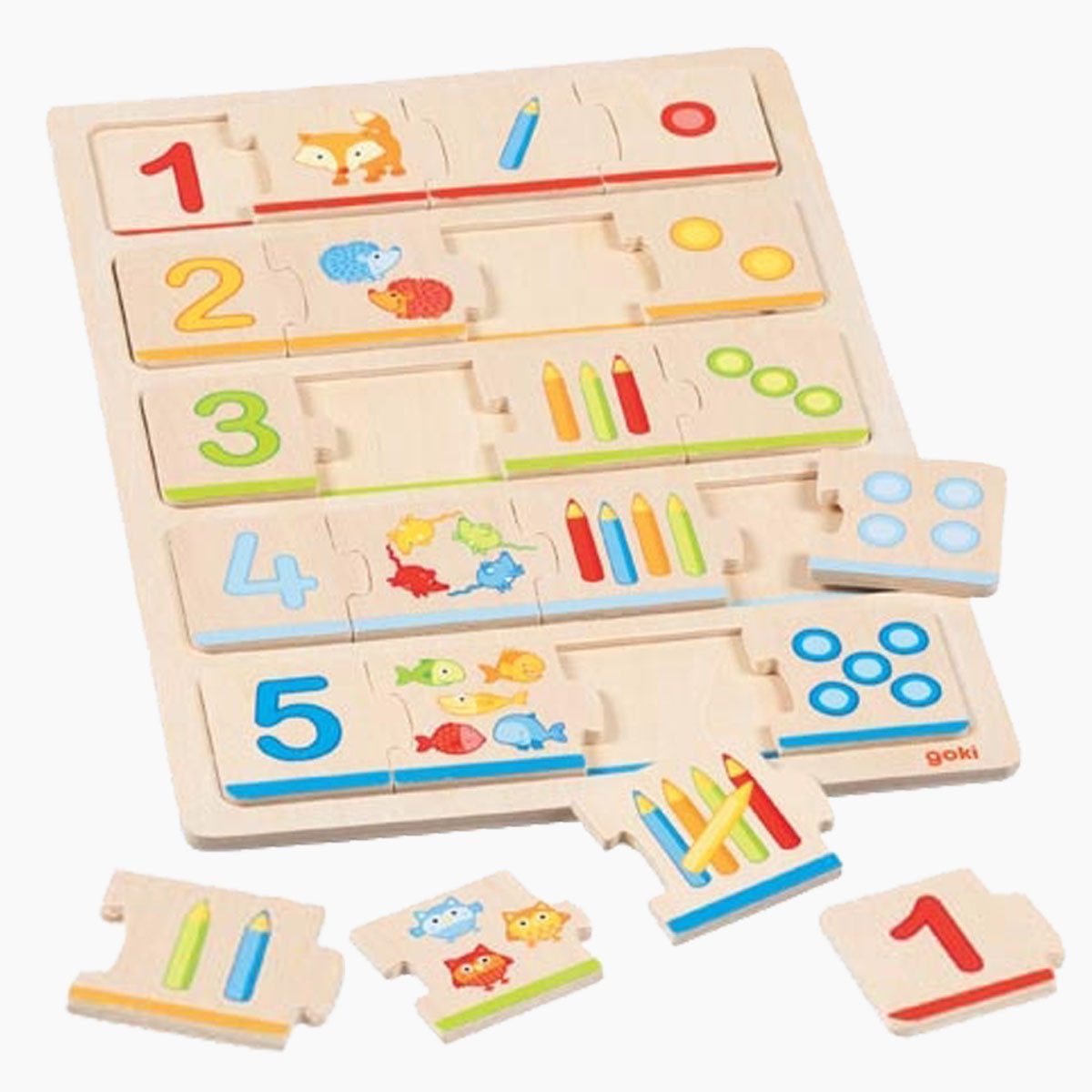 Beispielsweise steht die Zahl „5“ zusammen mit fünf lustigen Tierchen – ideal, um frühzeitig ein Gefühl für Mengen zu entwickeln. Das Puzzle fördert somit gezielt das Zahlenverständnis und die visuelle Erfassung von Mengen.