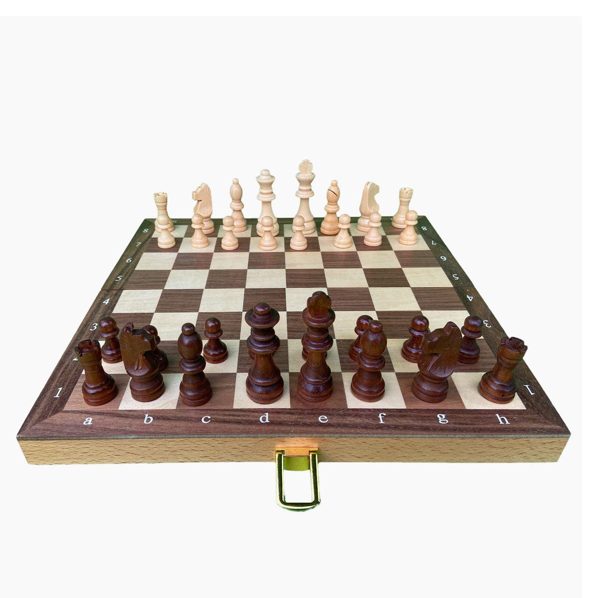 Schachspiel in Holzklappkassette: Strategische Spannung und klassischer Stil in einem kompakten Format