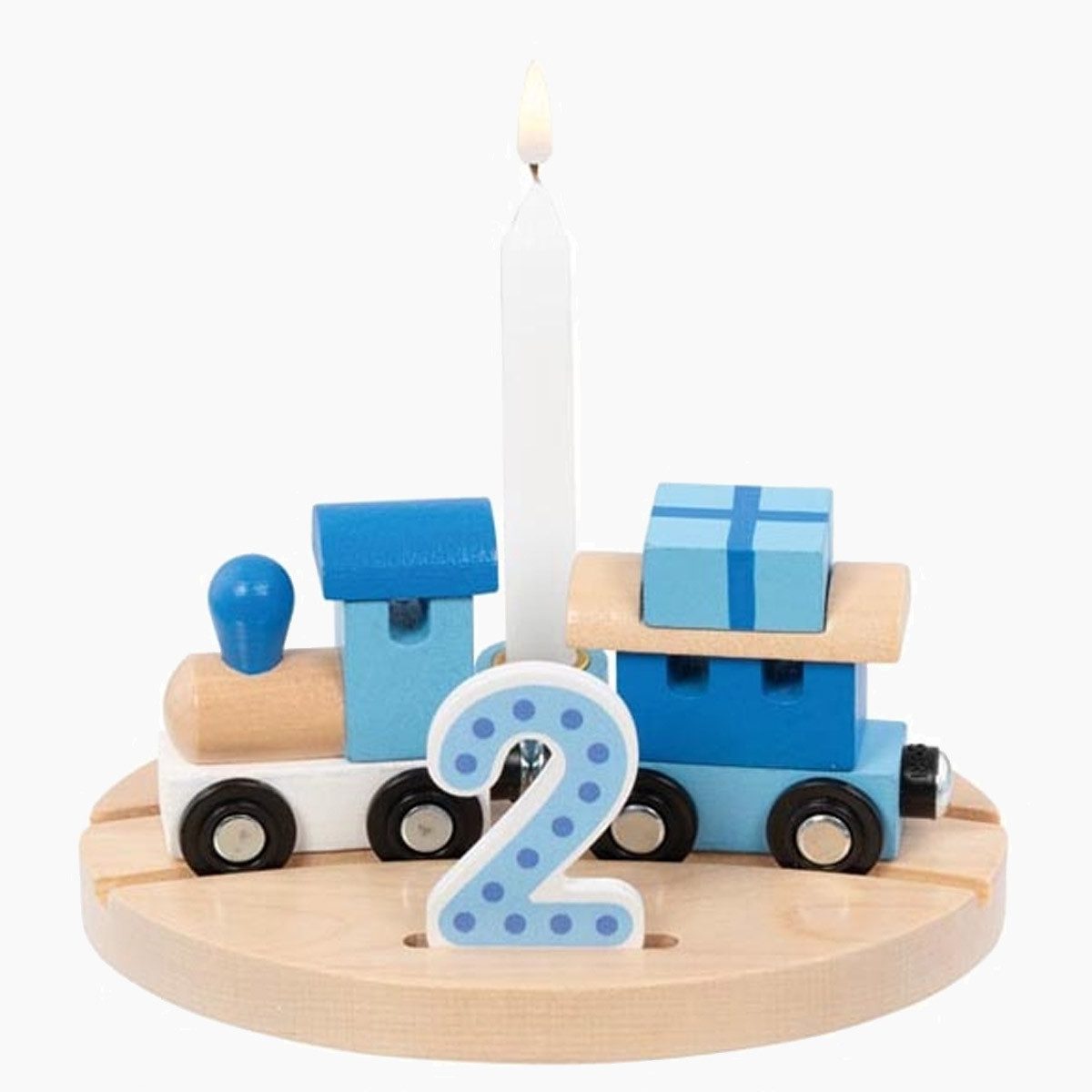 Besonderes Detail ist der integrierte Kerzenhalter, der eine Geburtstagskerze aufnehmen kann. So bekommt das Geburtstagskind einen persönlichen Moment, wenn die Kerze entzündet wird. Mit den austauschbaren Zahlen begleitet der Zug die Kinder über viele Jahre hinweg und wird zu einem festen Bestandteil des jährlichen Rituals.