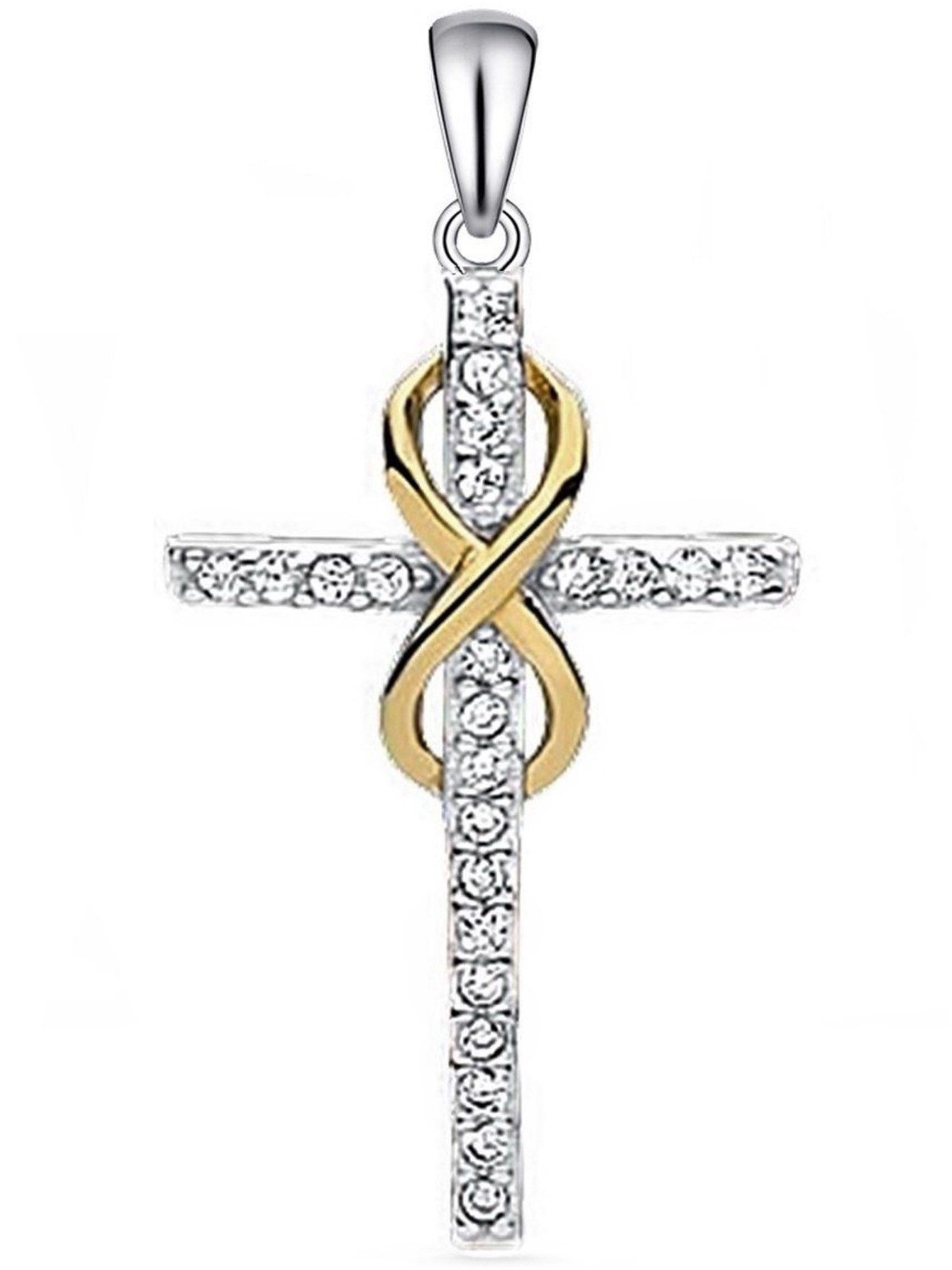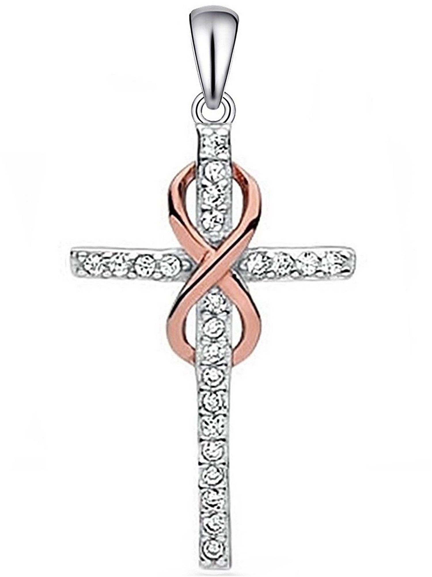 Kettenanhänger aus 925 Sterling-Silber "Kreuz Unendlichkeit" mit Microsetting Zirkonia Kristalle die aus einer Pavé Fassung heraus funkeln