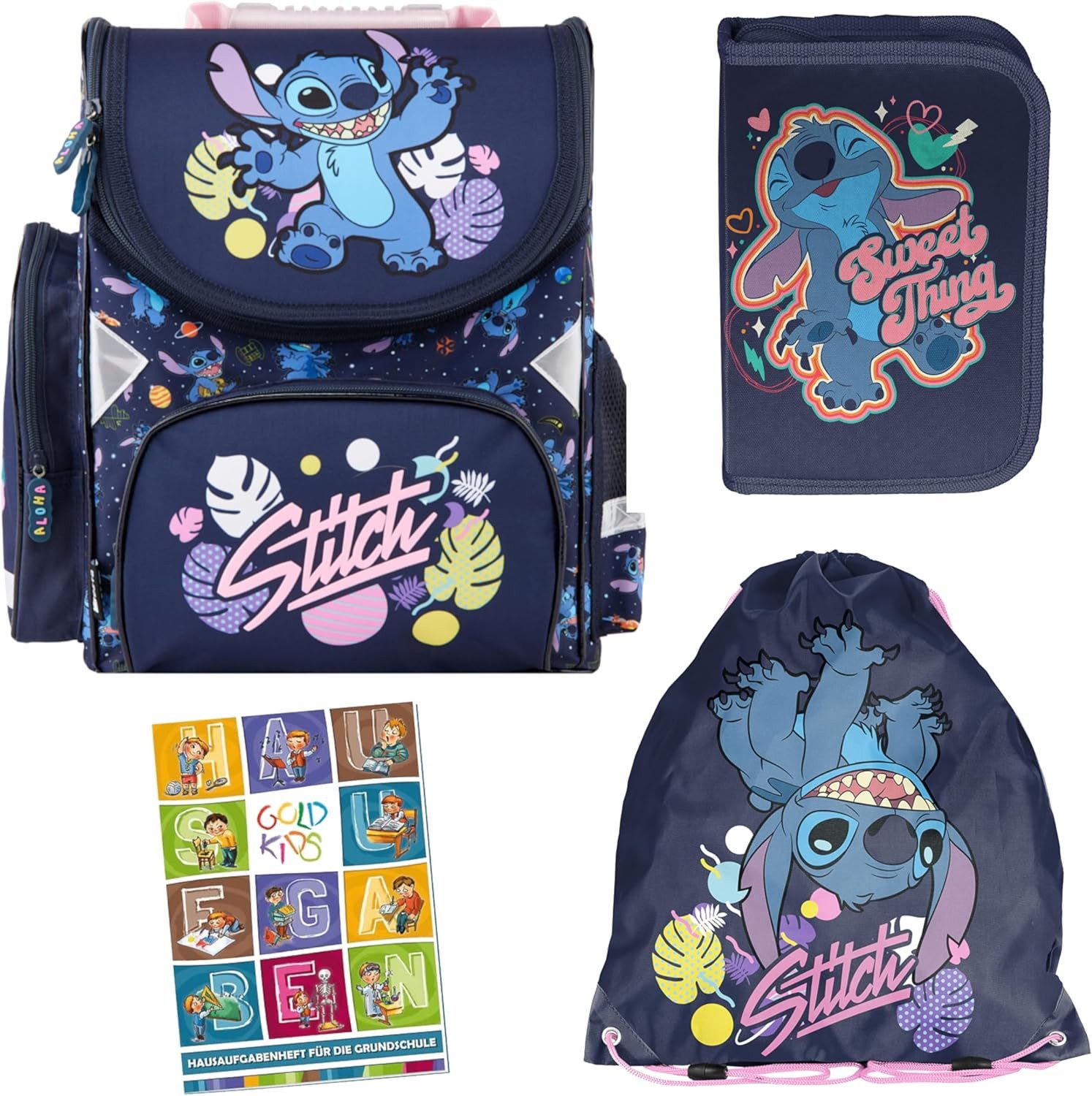 Goldkids - 4-teiliges Set - Schulausstattung für Kinder und Fans von Stitch!