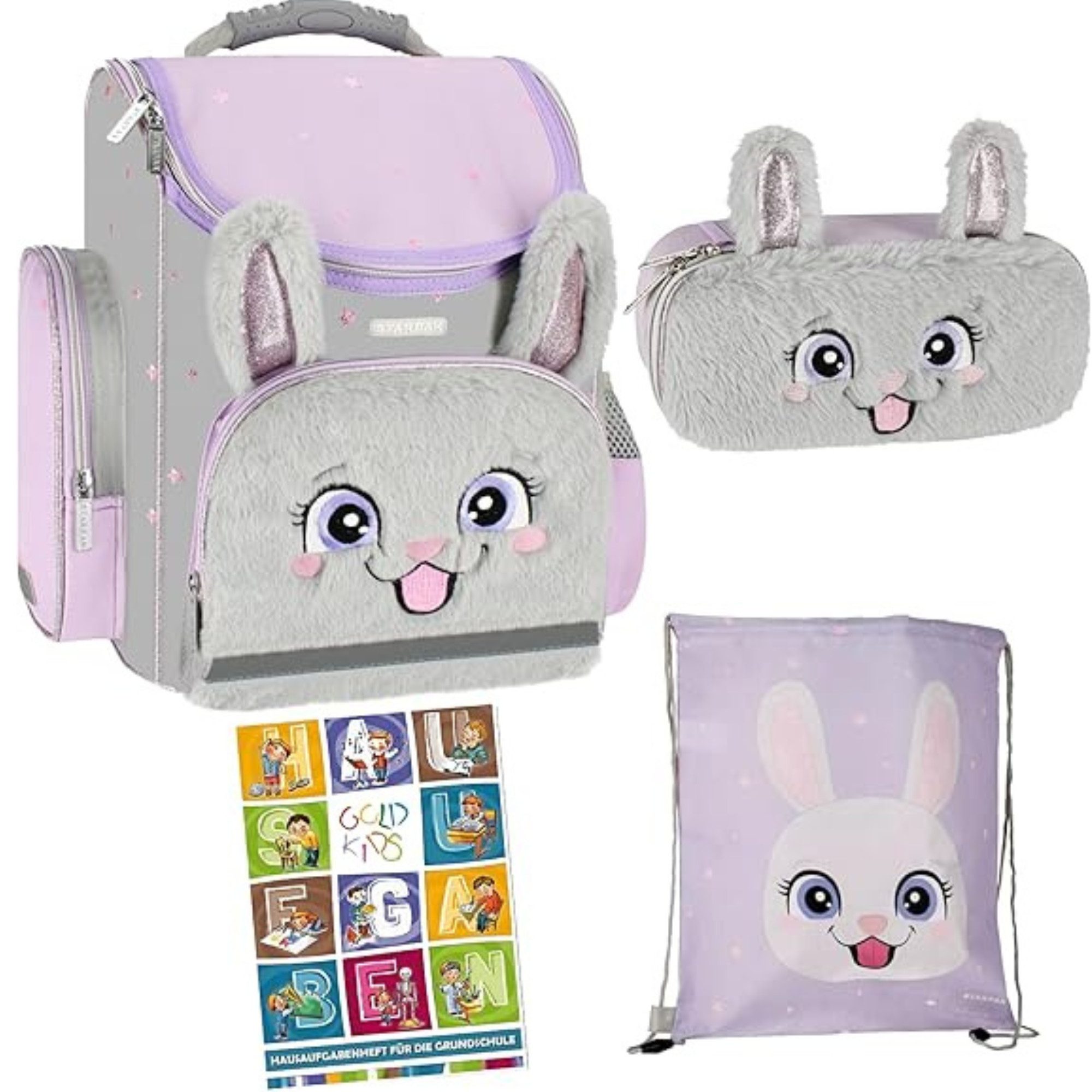 Goldkids - 4-teiliges Set - Schulausstattung für Kinder und Fans von Kaninchen!