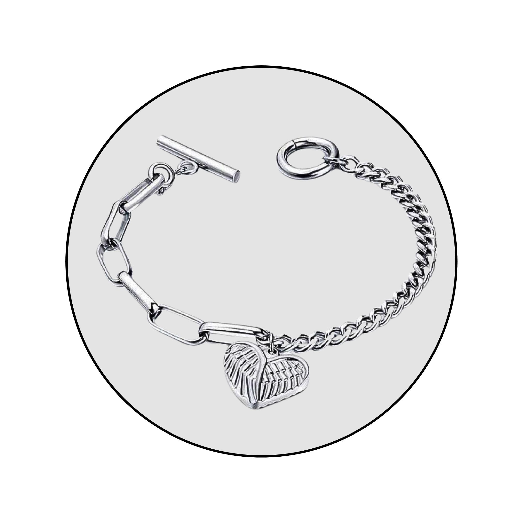 Dieses einzigartige Gliederarmband vereint zeitlose Eleganz mit modernem Design. Die Kombination aus filigranen, länglichen Gliedern und einer klassischen Panzerkette macht es zu einem stilvollen Statement-Piece. Der detailreich strukturierte Herzanhänger verleiht dem Armband eine besondere Bedeutung und symbolisiert Liebe und Verbundenheit.