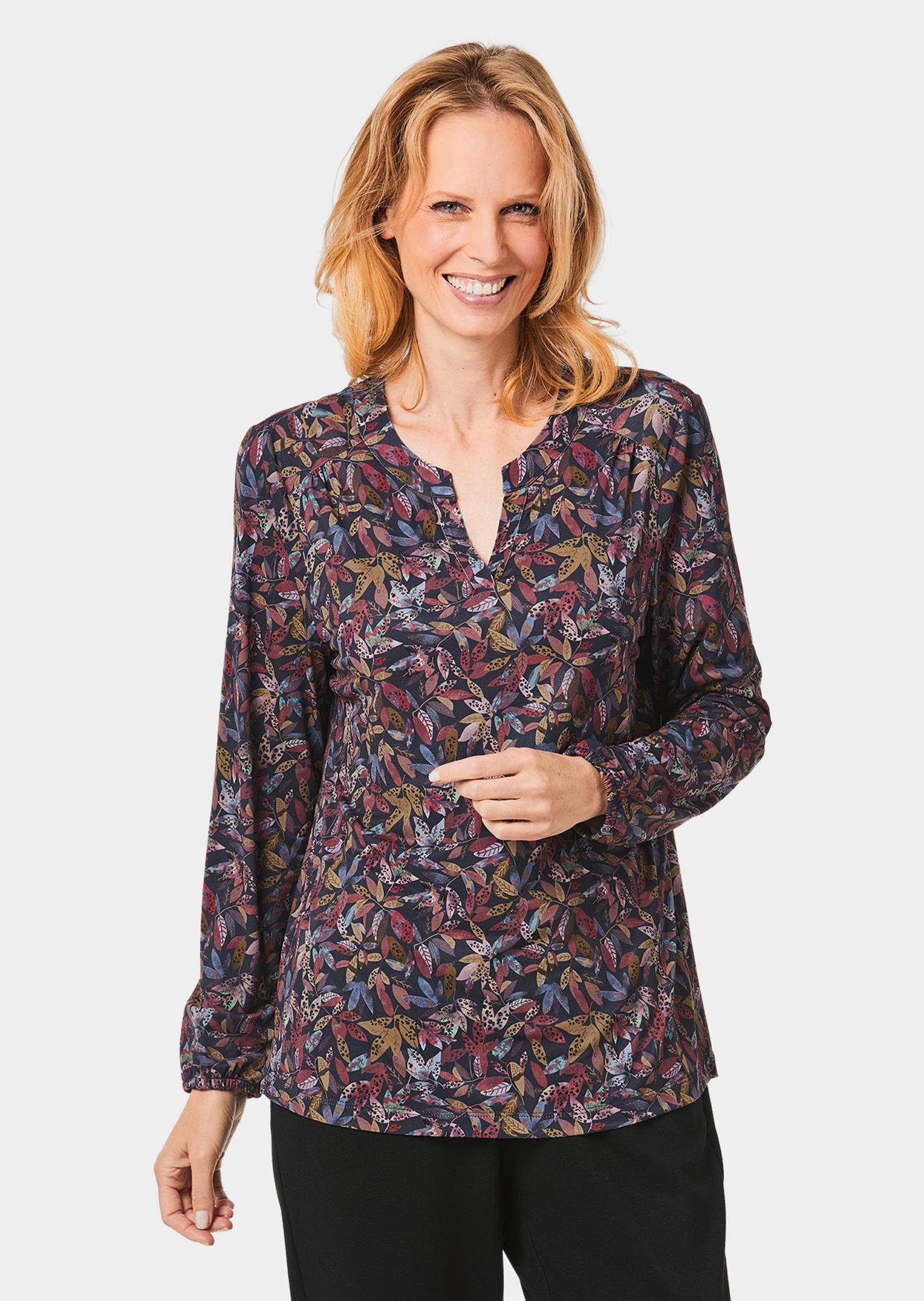 Besondere Merkmale | Schlupfbluse mit Allover-Print, Kräuselung und Langarm |