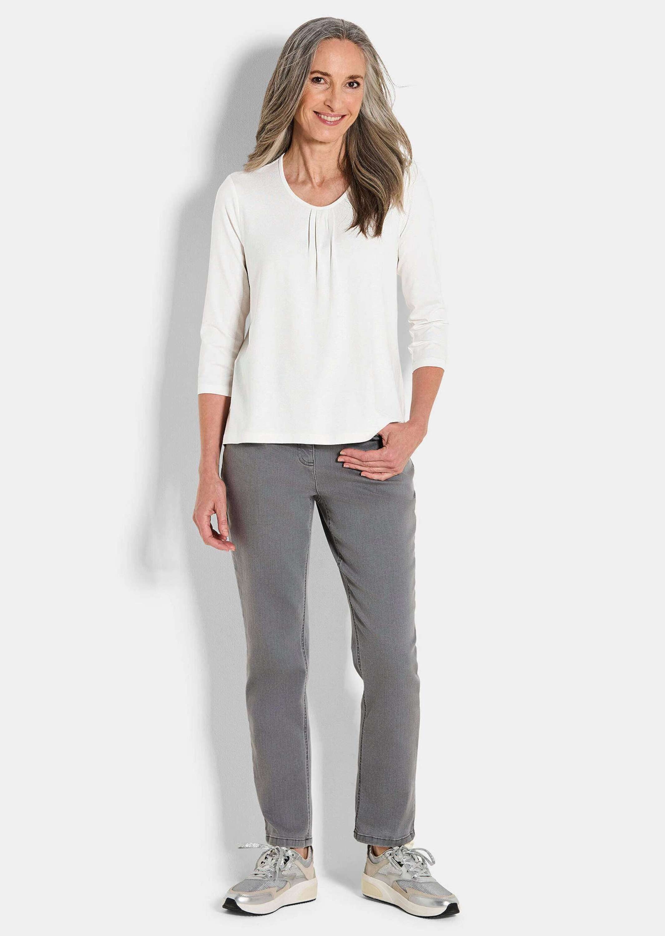 Besondere Merkmale | Feminines Design mit Falten und Rundhalsausschnitt |