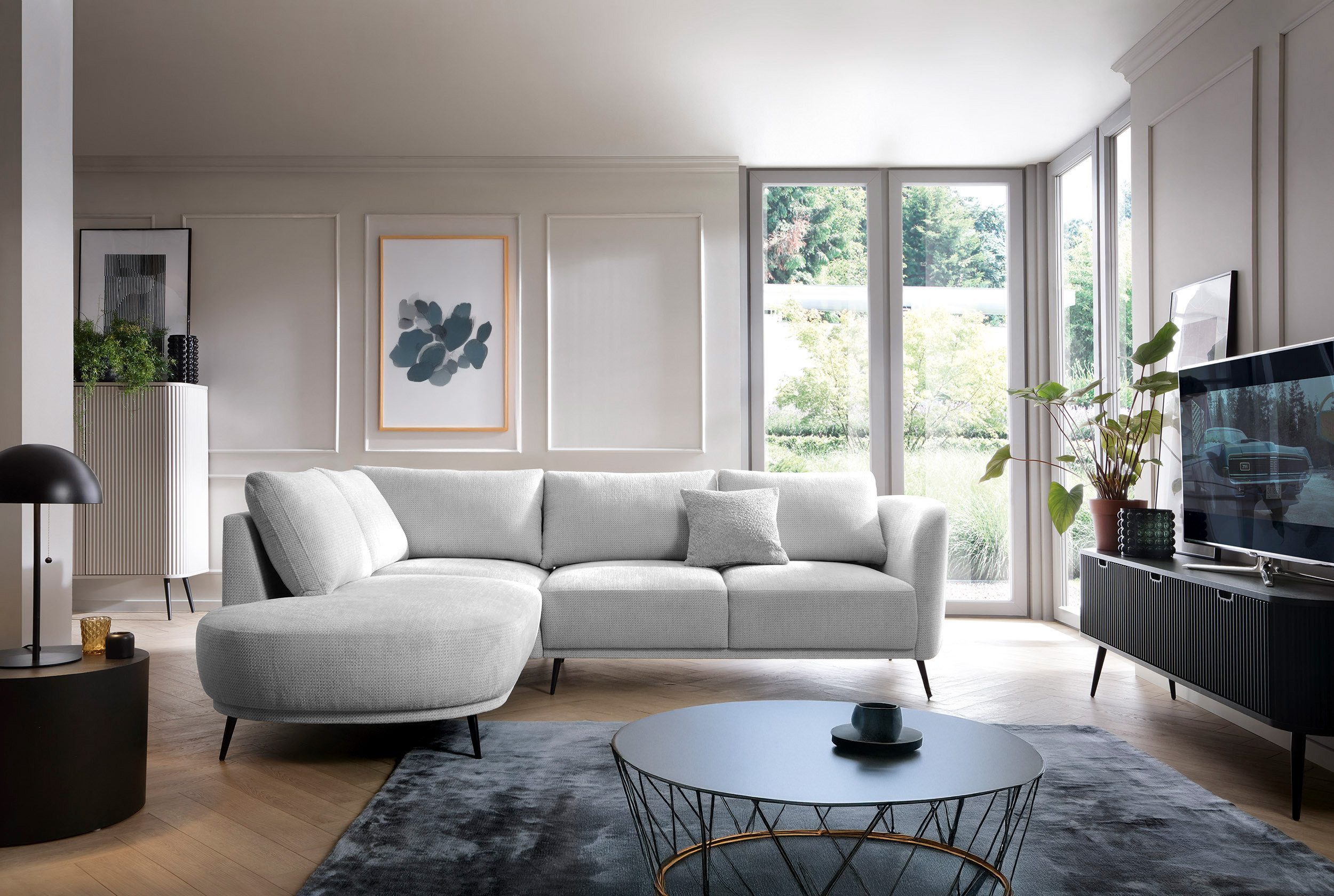 Das Ecksofa AURORA vereint modernes Design mit hohem Komfort und ist dabei besonders anpassungsfähig: Es ist in zwei Stellvarianten – mit Recamiere links oder rechts – erhältlich und passt sich damit flexibel Ihrer Raumplanung an.