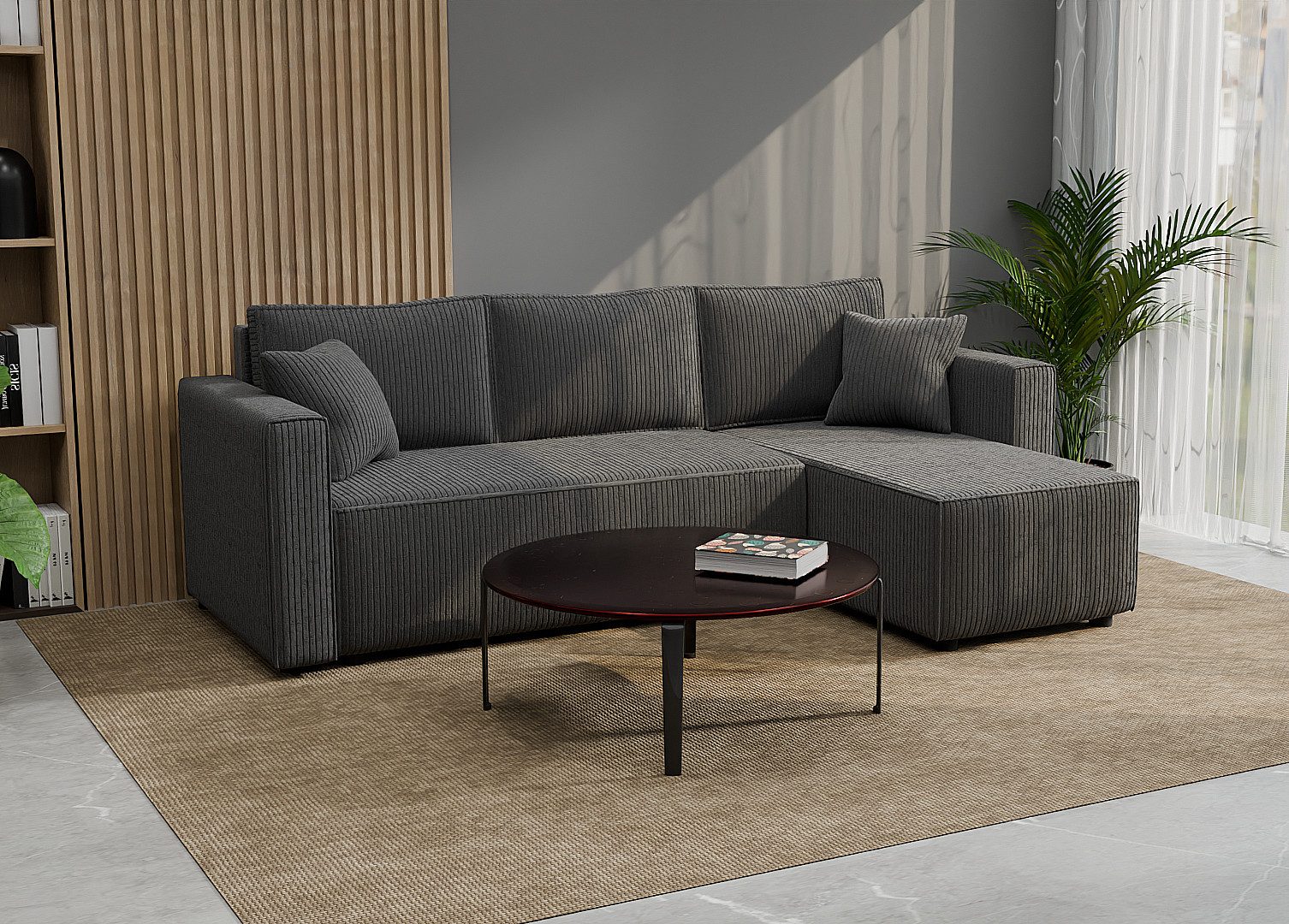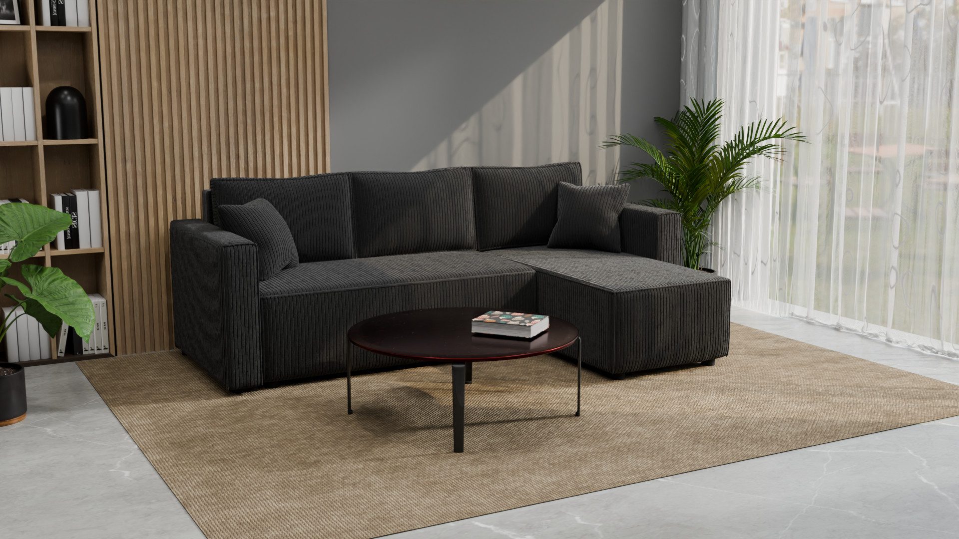 Das Cord Ecksofa „Gabriel“ ist mehr als nur ein Sofa – es ist Wohnkomfort, Stauraum und Schlafplatz in einem. Mit seiner Kombination aus trendigem Cordstoff, praktischer Schlaffunktion und durchdachtem Stauraum ist es die perfekte Wahl für modernes Wohnen.