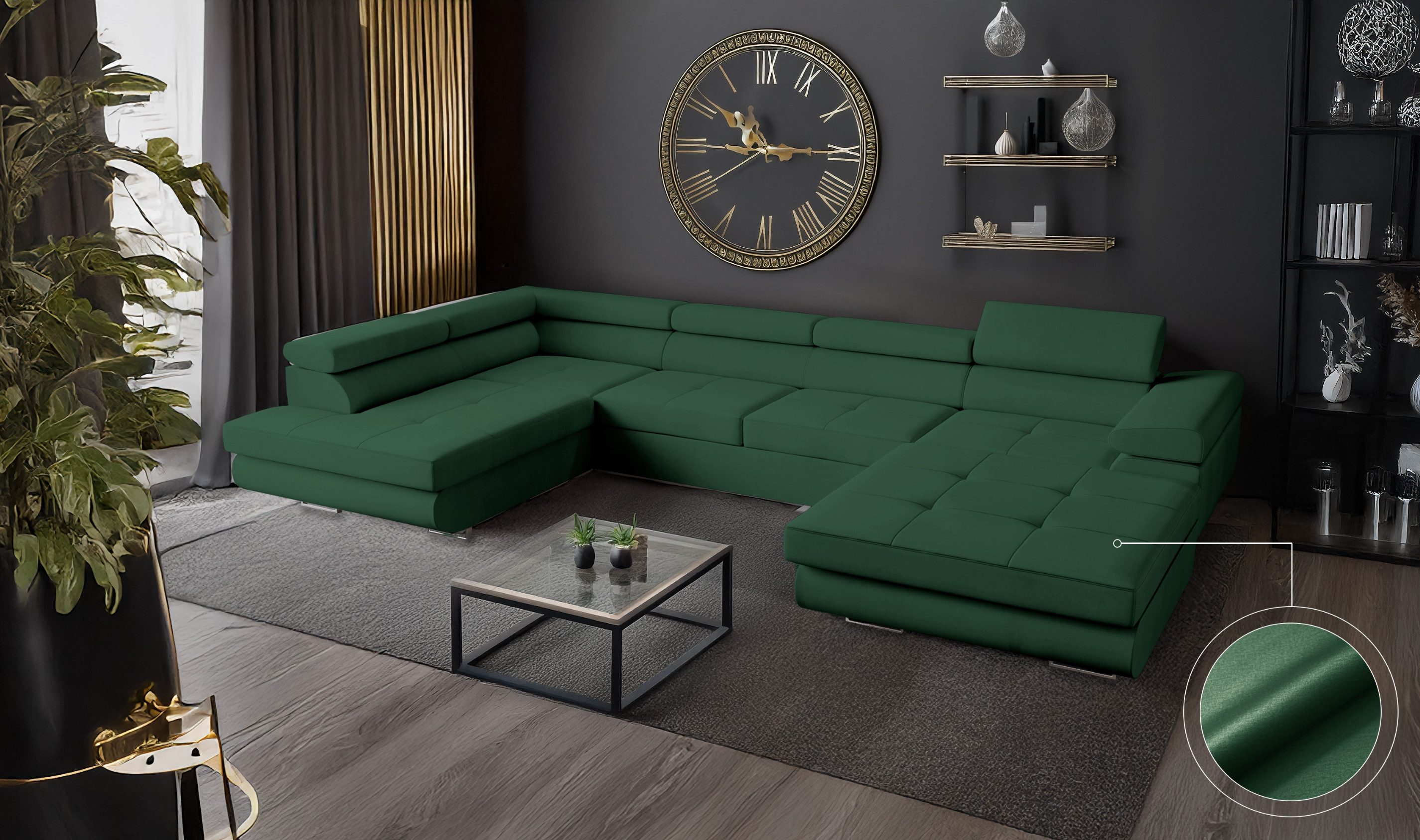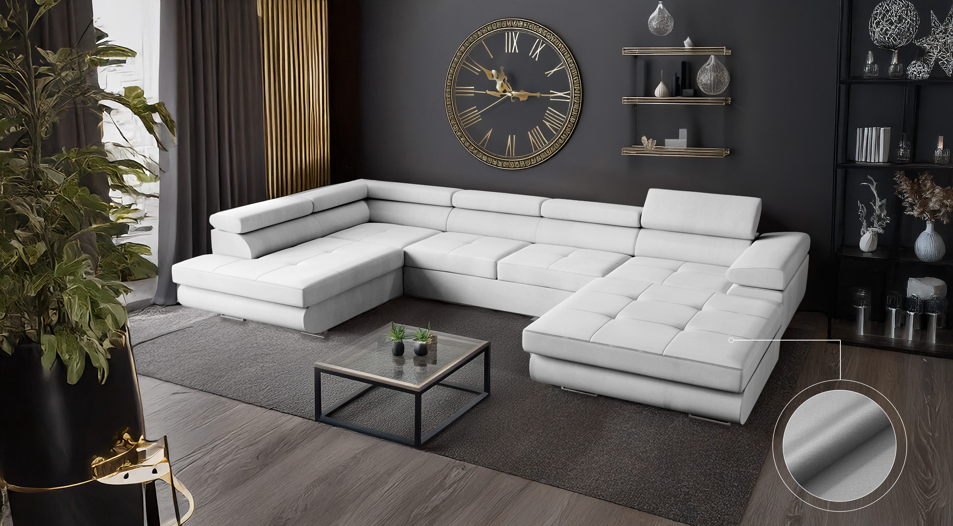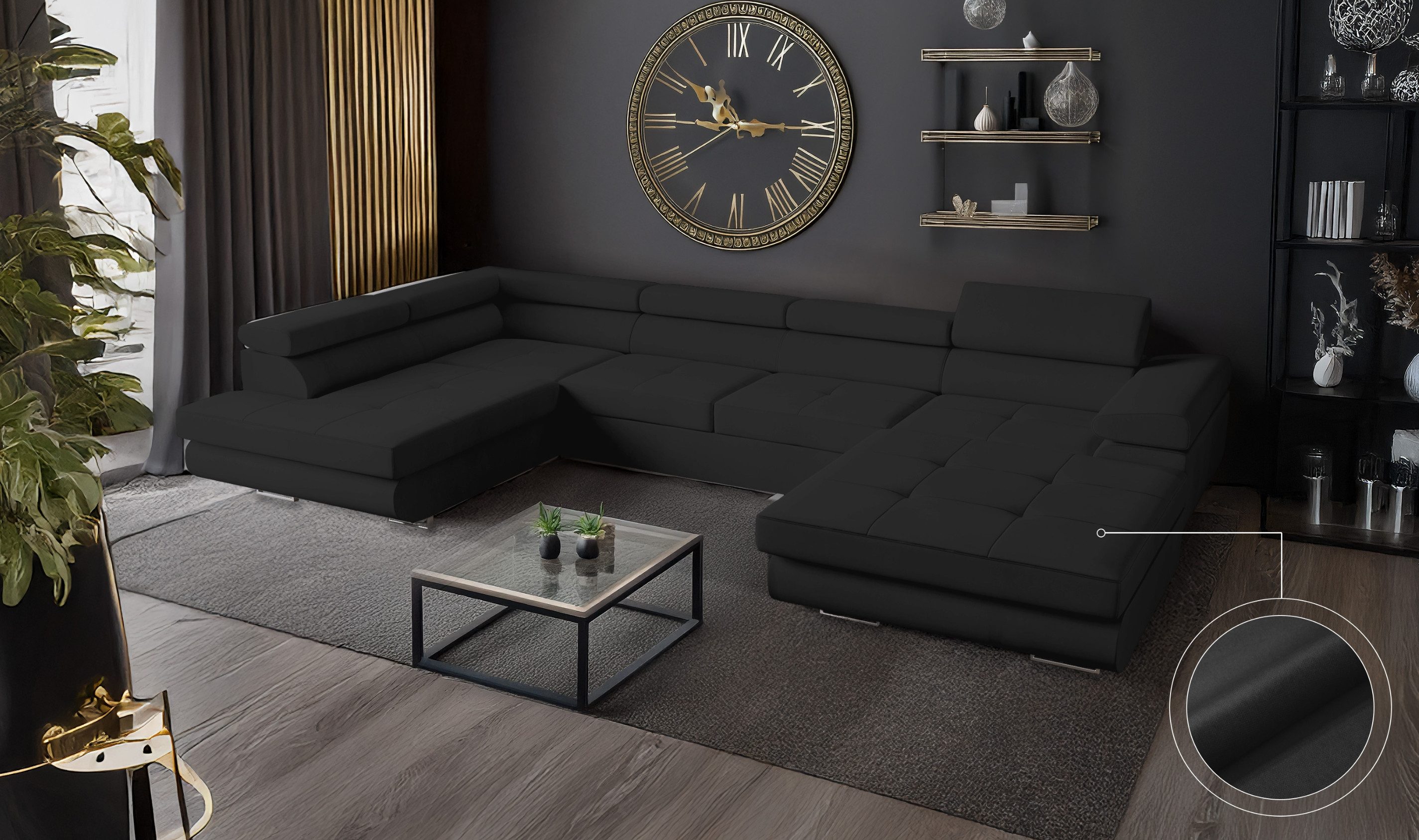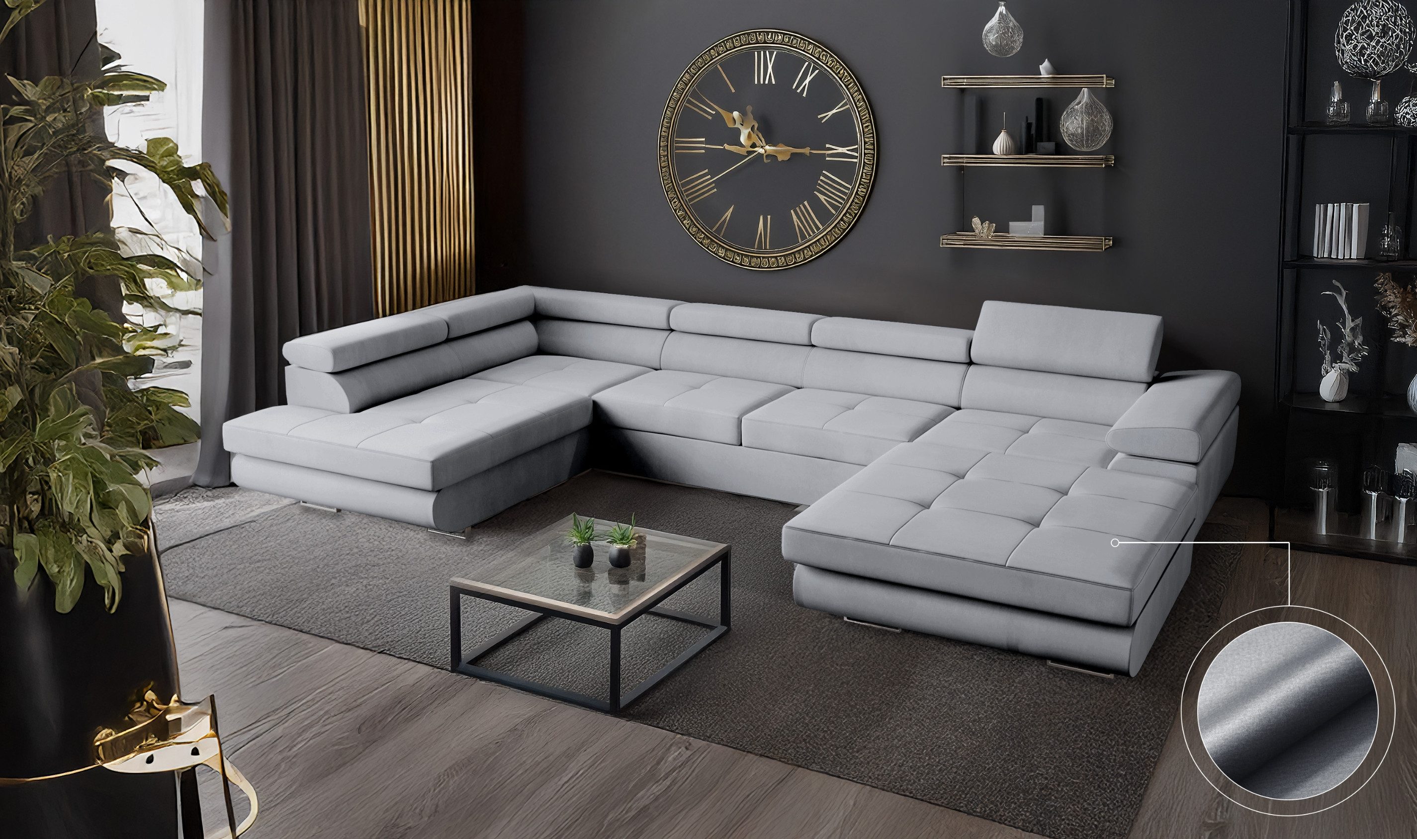 Das VENUS Ecksofa in U-Form ist mehr als nur eine Wohnlandschaft – es ist ein durchdachtes Komfortmöbelstück für anspruchsvolle Haushalte, das modernes Design mit praktischen Funktionen vereint. Mit ihrer großzügigen U-Form bietet die Couch besonders viel Platz und schafft eine kommunikative Wohlfühlzone für Familie, Freunde und Gäste.