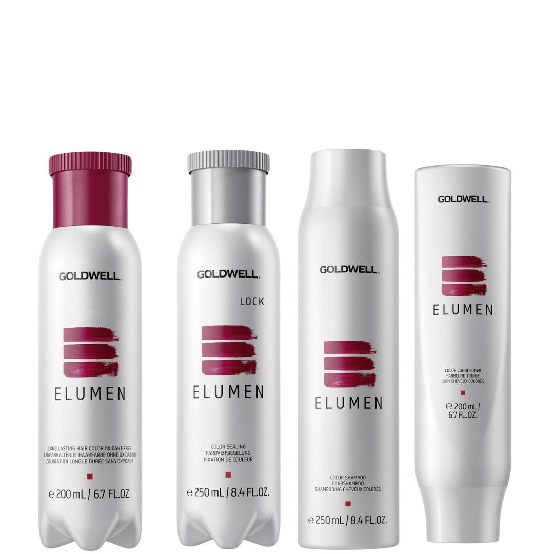 Verleihen Sie Ihrem Haar strahlende Farbe und pflegen Sie es intensiv mit dem exklusiven Elumen Set. Dieses Set umfasst alles, was Sie für die perfekte Haarfärbung und Pflege benötigen: Elumen Farbe: Die hochpigmentierte Elumen-Haarfarbe bietet langanhaltende, intensive Farbergebnisse, die Ihr Haar in lebendigen, glänzenden Nuancen erstrahlen lassen. Dank der innovativen Formel ohne Ammoniak und Oxidation bleibt die Farbe besonders sanft zu Ihrem Haar, während sie gleichzeitig für langanhaltende Ergebnisse sorgt. Elumen Lock: Der Elumen Lock schützt die Farbpigmente und sorgt für noch mehr Glanz und Haltbarkeit. Er versiegelt die Farbe in den Haarsträhnen und verhindert das Verblassen, sodass Ihre Farbergebnisse länger frisch und lebendig bleiben. Elumen Shampoo: Das speziell entwickelte Elumen Shampoo reinigt das Haar sanft und entfernt Rückstände, ohne die Farbpigmente zu beeinträchtigen. Es sorgt für einen langanhaltenden Farbschutz und verleiht Ihrem Haar einen natürlichen Glanz. Elumen Conditioner: Der Elumen Conditioner spendet tiefenwirksame Feuchtigkeit und macht das Haar weich und geschmeidig. Er schützt vor Frizz und stärkt die Haarstruktur, während die Farbpigmente optimal geschützt bleiben.
