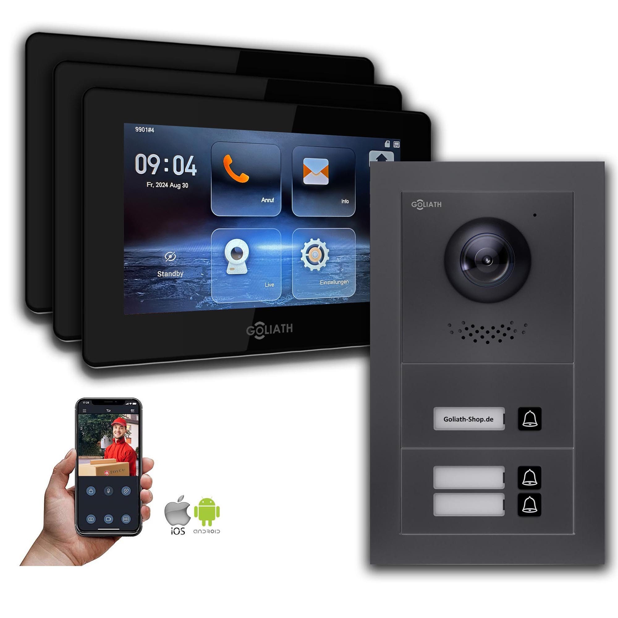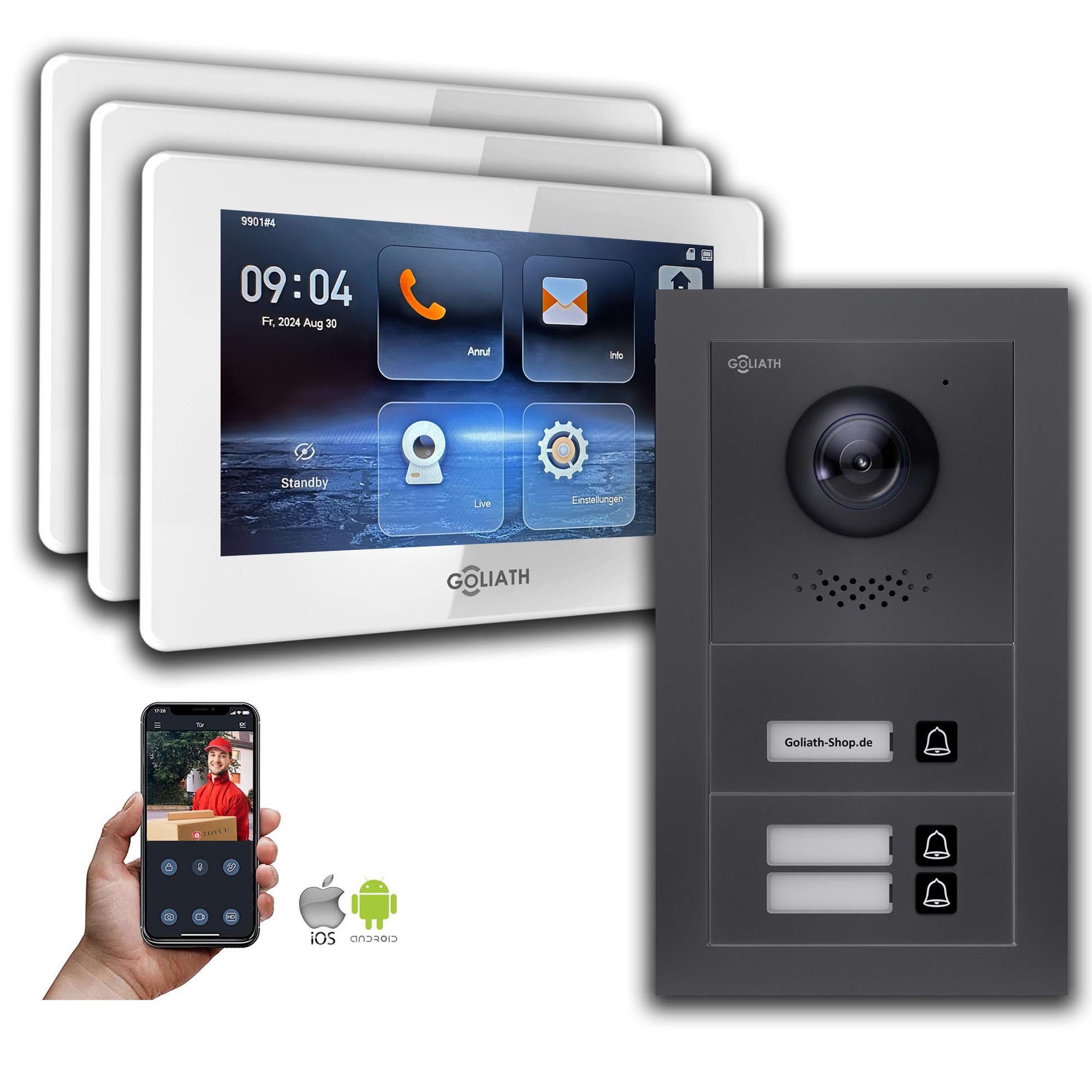 Die Goliath IP BUS Video Türsprechanlage ist eine hochmoderne und zuverlässige Sicherheitslösung für Ihr Zuhause oder Unternehmen. Mit ihrer fortschrittlichen Technologie bietet sie Ihnen ein Höchstmaß an Sicherheit und Komfort. Die hohe Bild- und Tonqualität ermöglicht Ihnen eine sichere Identifizierung von Besuchern, bevor Sie die Tür öffnen. Zusätzlich bietet die Türklingel Sicherheitsfunktionen wie die Türöffnung mit Passwort oder Fingerabdruck, um den Zugang zu autorisierten Personen zu beschränken. Die Fernzugriffsfunktion über App Android/iOS ermöglicht es Ihnen, von überall aus auf Ihr System zuzugreifen und mit Besuchern zu kommunizieren. Die robuste Bauweise und Wetterbeständigkeit schützen die Türsprechanlage vor Vandalismus und extremen Wetterbedingungen. Insgesamt bietet die Goliath Video Türsprechanlage eine umfassende Sicherheitslösung mit hohem Schutz und Zuverlässigkeit.