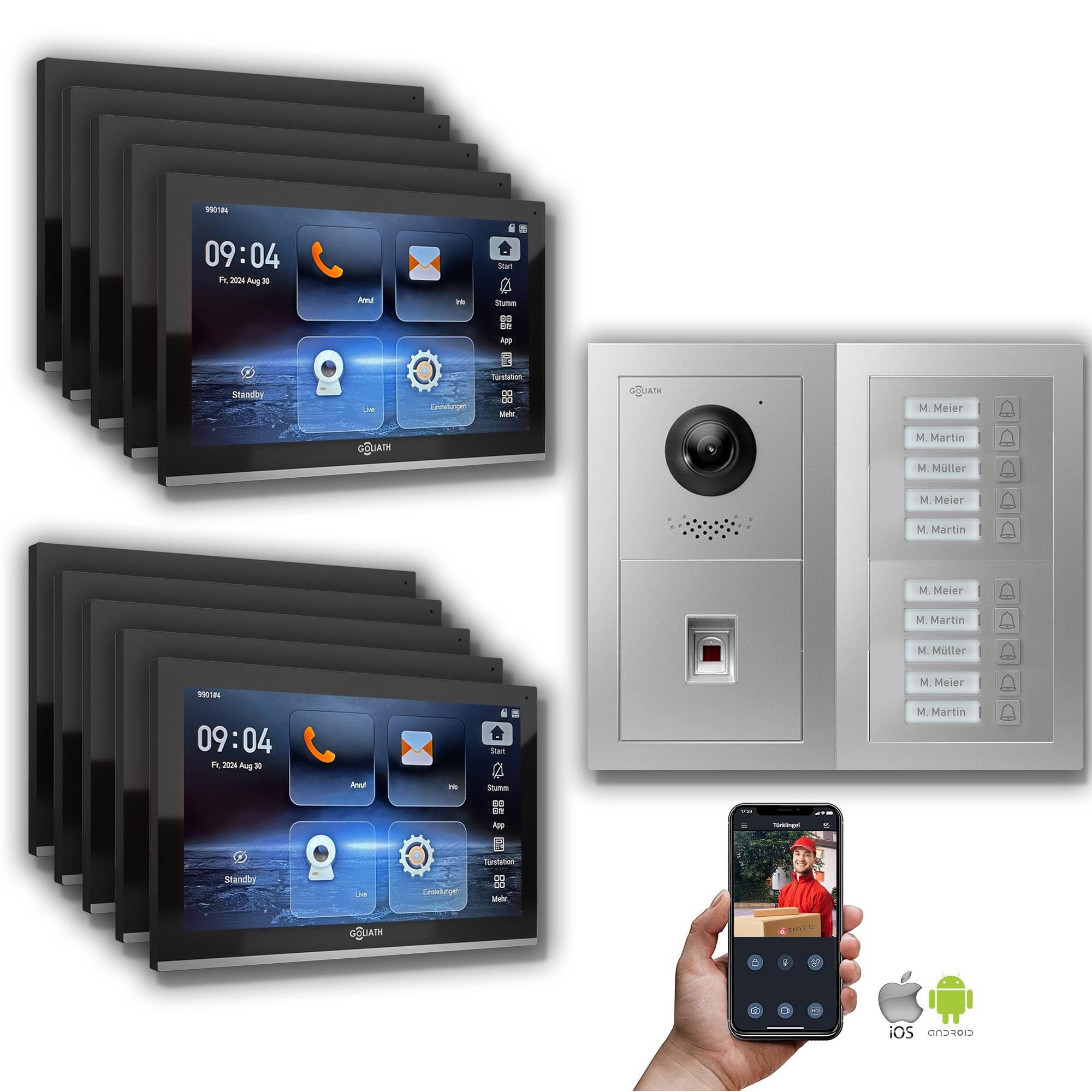 Goliath Intercom Video-Türsprechanlage Goliath IP Video Türsprechanlage: 10-Zoll 10 Familienhaus, Fingerprint (Privat oder Gewerblich)