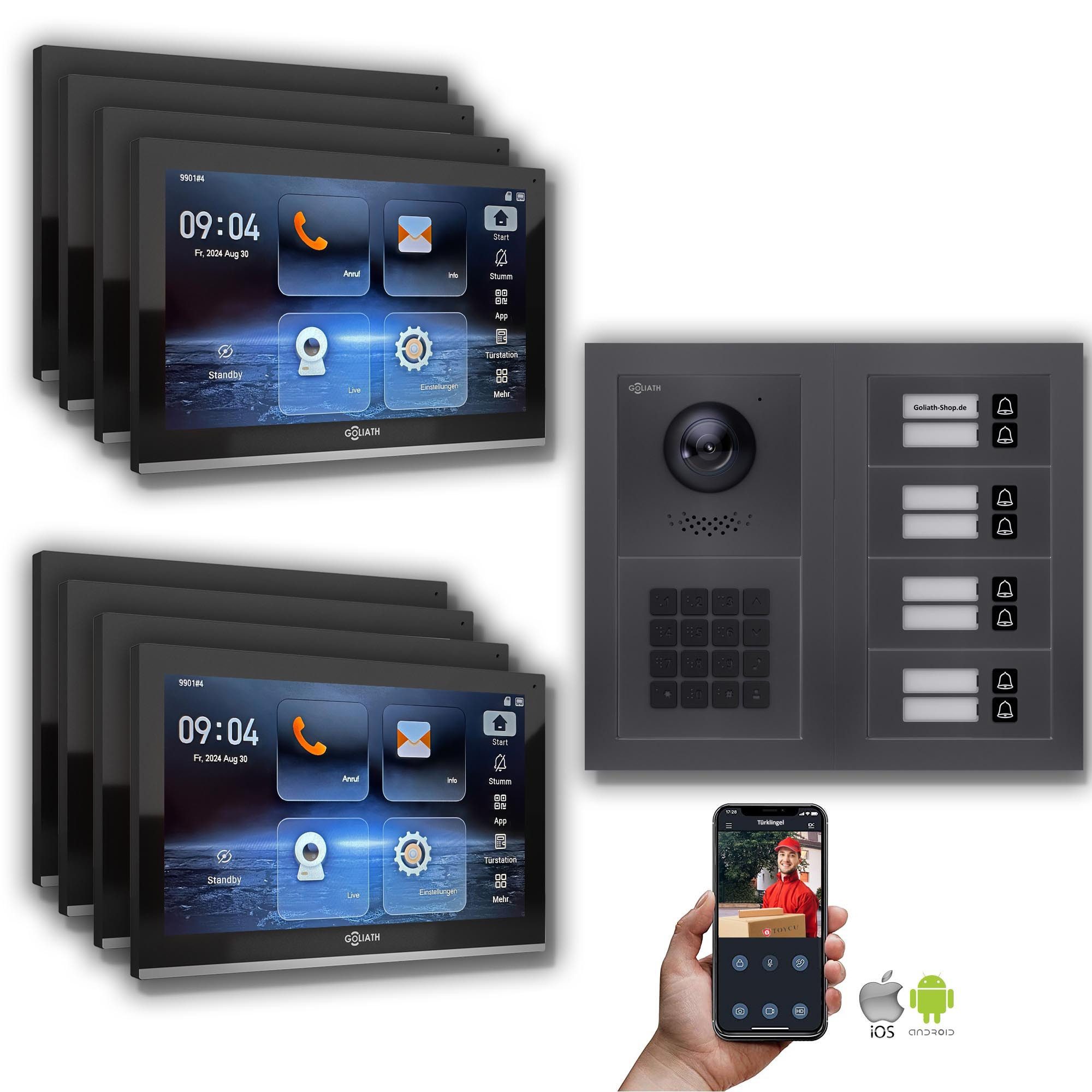Goliath Intercom Video-Türsprechanlage Goliath IP Video Türsprechanlage: 10-Zoll 8 Familienhaus, Zahlencode,A (Privat oder Gewerblich)