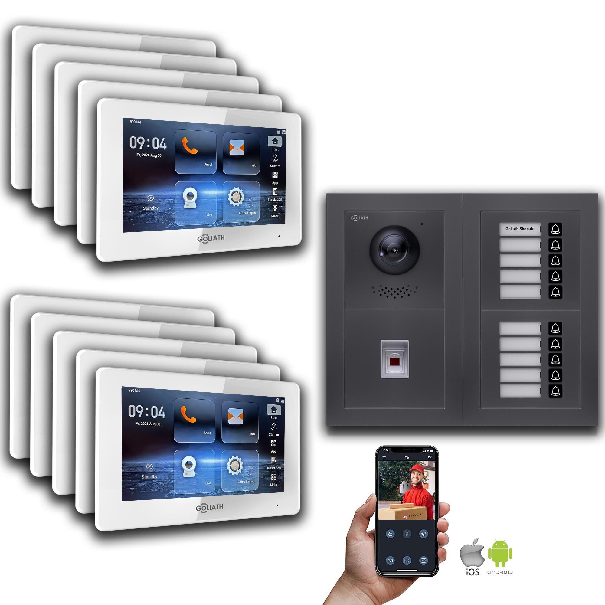 Die Goliath Video Türsprechanlage ist eine hochmoderne und zuverlässige Sicherheitslösung für Ihr Zuhause oder Unternehmen. Mit ihrer fortschrittlichen Technologie bietet sie Ihnen ein Höchstmaß an Sicherheit und Komfort. Die hohe Bild- und Tonqualität ermöglicht Ihnen eine sichere Identifizierung von Besuchern, bevor Sie die Tür öffnen. Zusätzlich bietet die Türklingel Sicherheitsfunktionen wie die Türöffnung mit Passwort oder Fingerabdruck, um den Zugang zu autorisierten Personen zu beschränken. Die Fernzugriffsfunktion über App Android/iOS ermöglicht es Ihnen, von überall aus auf Ihr System zuzugreifen und mit Besuchern zu kommunizieren. Die robuste Bauweise und Wetterbeständigkeit schützen die Türsprechanlage vor Vandalismus und extremen Wetterbedingungen. Insgesamt bietet die Goliath Video Türsprechanlage eine umfassende Sicherheitslösung mit hohem Schutz und Zuverlässigkeit.