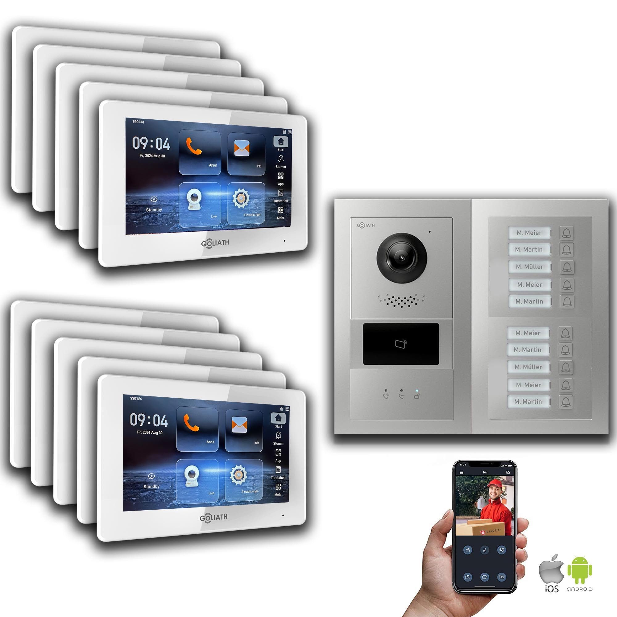 Die Goliath Video Türsprechanlage ist eine hochmoderne und zuverlässige Sicherheitslösung für Ihr Zuhause oder Unternehmen. Mit ihrer fortschrittlichen Technologie bietet sie Ihnen ein Höchstmaß an Sicherheit und Komfort. Die hohe Bild- und Tonqualität ermöglicht Ihnen eine sichere Identifizierung von Besuchern, bevor Sie die Tür öffnen. Zusätzlich bietet die Türklingel Sicherheitsfunktionen wie die Türöffnung mit Passwort oder Fingerabdruck, um den Zugang zu autorisierten Personen zu beschränken. Die Fernzugriffsfunktion über App Android/iOS ermöglicht es Ihnen, von überall aus auf Ihr System zuzugreifen und mit Besuchern zu kommunizieren. Die robuste Bauweise und Wetterbeständigkeit schützen die Türsprechanlage vor Vandalismus und extremen Wetterbedingungen. Insgesamt bietet die Goliath Video Türsprechanlage eine umfassende Sicherheitslösung mit hohem Schutz und Zuverlässigkeit.