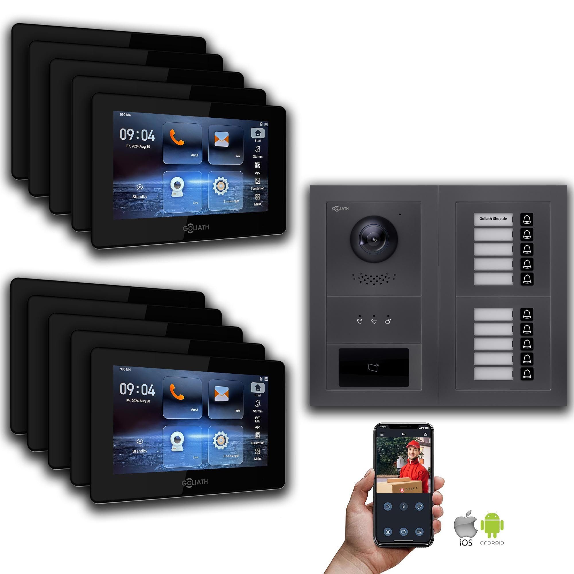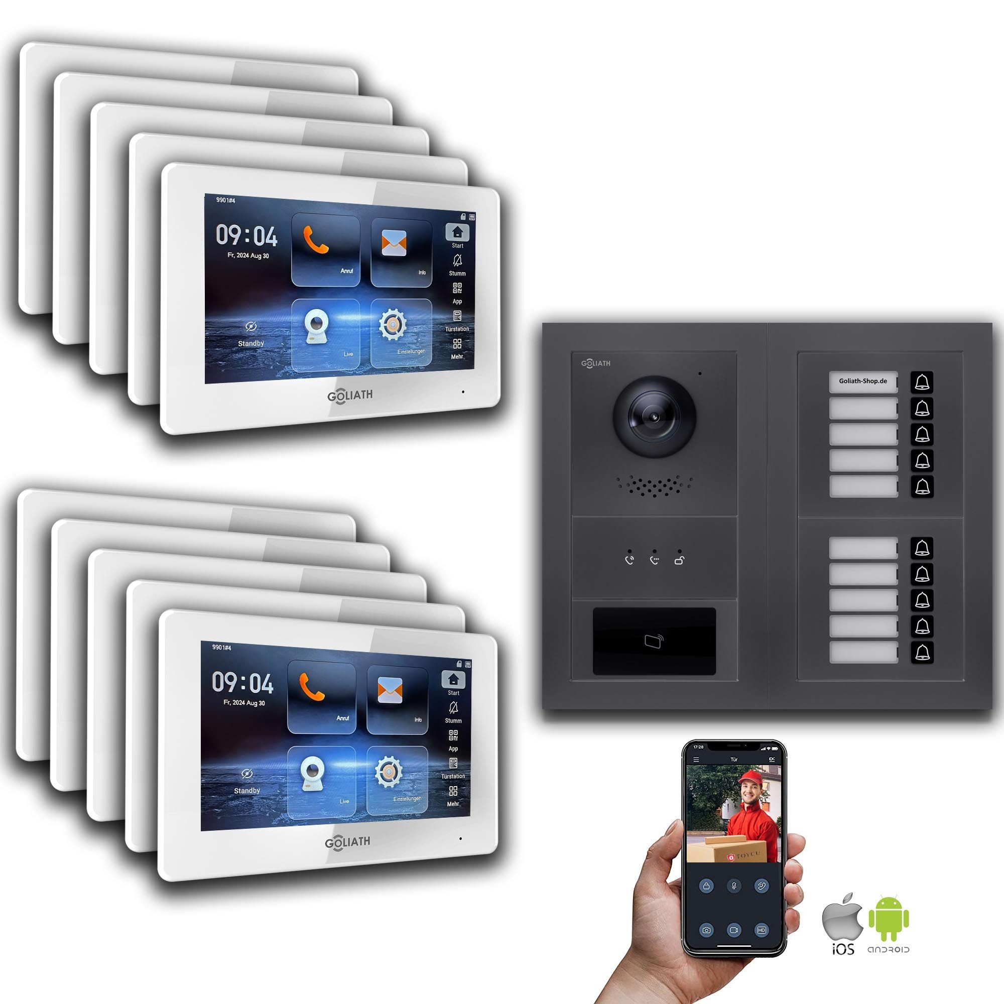 Die Goliath Video Türsprechanlage ist eine hochmoderne und zuverlässige Sicherheitslösung für Ihr Zuhause oder Unternehmen. Mit ihrer fortschrittlichen Technologie bietet sie Ihnen ein Höchstmaß an Sicherheit und Komfort. Die hohe Bild- und Tonqualität ermöglicht Ihnen eine sichere Identifizierung von Besuchern, bevor Sie die Tür öffnen. Zusätzlich bietet die Türklingel Sicherheitsfunktionen wie die Türöffnung mit Passwort oder Fingerabdruck, um den Zugang zu autorisierten Personen zu beschränken. Die Fernzugriffsfunktion über App Android/iOS ermöglicht es Ihnen, von überall aus auf Ihr System zuzugreifen und mit Besuchern zu kommunizieren. Die robuste Bauweise und Wetterbeständigkeit schützen die Türsprechanlage vor Vandalismus und extremen Wetterbedingungen. Insgesamt bietet die Goliath Video Türsprechanlage eine umfassende Sicherheitslösung mit hohem Schutz und Zuverlässigkeit.