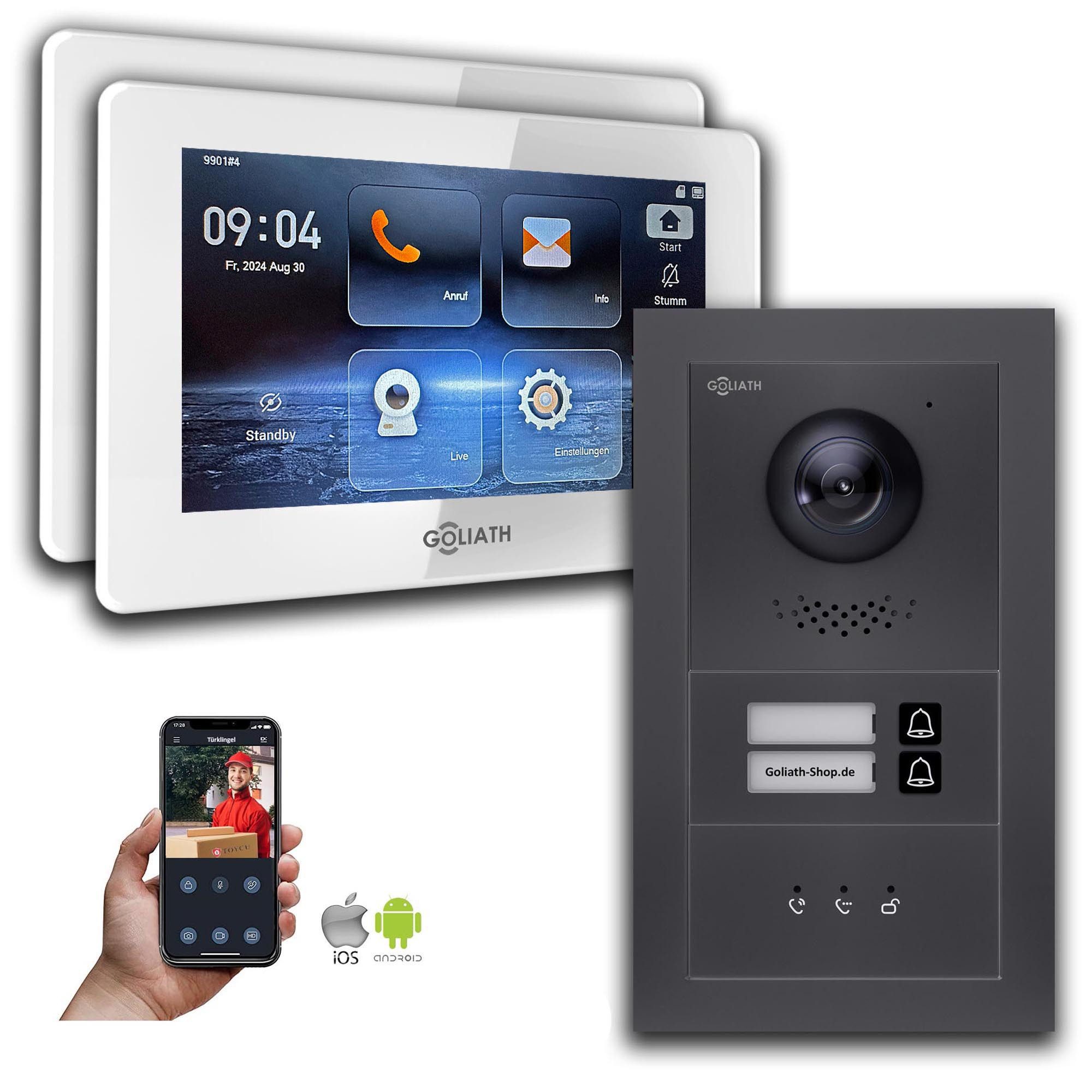 Die Goliath Video Türsprechanlage ist eine hochmoderne und zuverlässige Sicherheitslösung für Ihr Zuhause oder Unternehmen. Mit ihrer fortschrittlichen Technologie bietet sie Ihnen ein Höchstmaß an Sicherheit und Komfort. Die hohe Bild- und Tonqualität ermöglicht Ihnen eine sichere Identifizierung von Besuchern, bevor Sie die Tür öffnen. Zusätzlich bietet die Türklingel Sicherheitsfunktionen wie die Türöffnung mit Passwort oder Fingerabdruck, um den Zugang zu autorisierten Personen zu beschränken. Die Fernzugriffsfunktion über App Android/iOS ermöglicht es Ihnen, von überall aus auf Ihr System zuzugreifen und mit Besuchern zu kommunizieren. Die robuste Bauweise und Wetterbeständigkeit schützen die Türsprechanlage vor Vandalismus und extremen Wetterbedingungen. Insgesamt bietet die Goliath Video Türsprechanlage eine umfassende Sicherheitslösung mit hohem Schutz und Zuverlässigkeit.