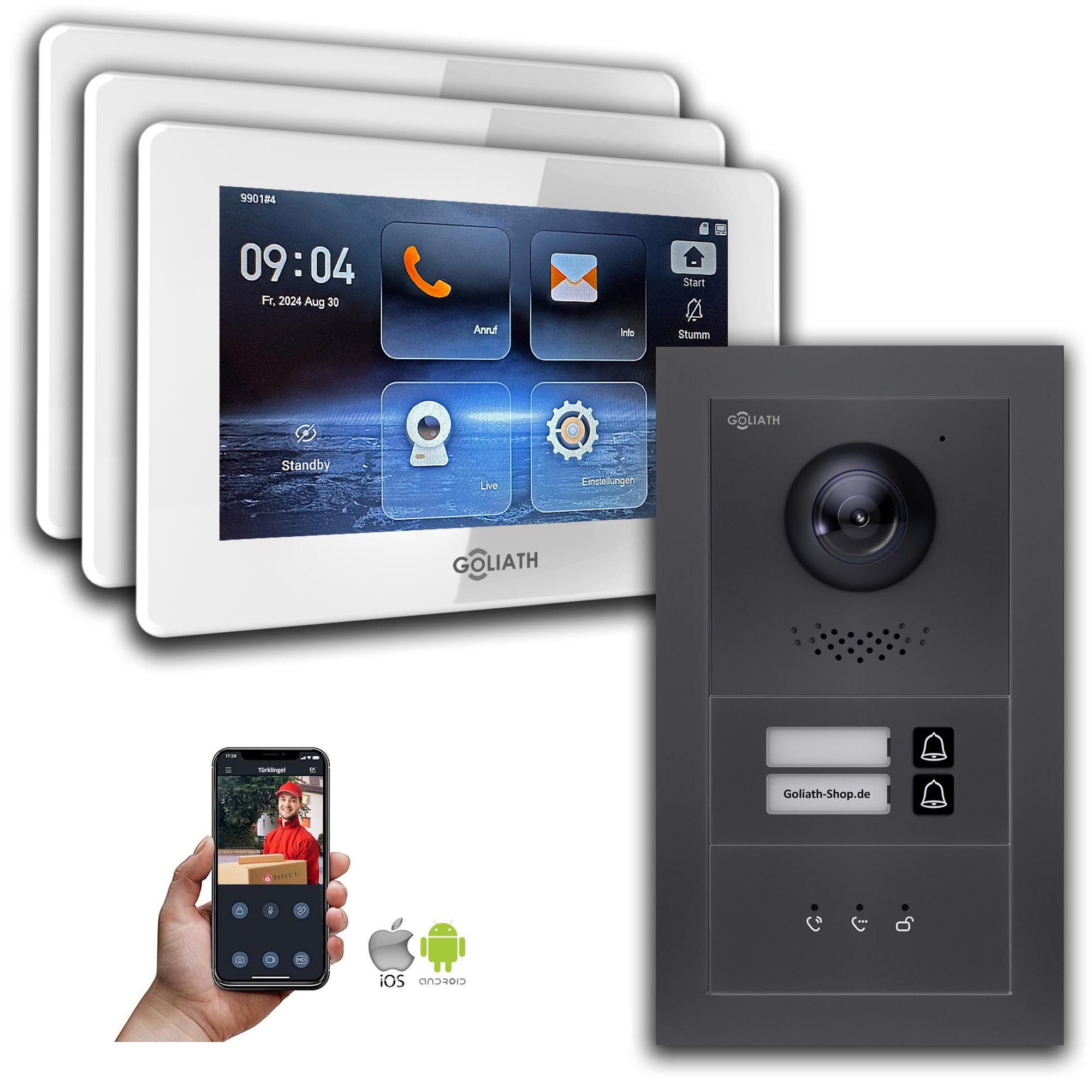 Die Goliath Video Türsprechanlage ist eine hochmoderne und zuverlässige Sicherheitslösung für Ihr Zuhause oder Unternehmen. Mit ihrer fortschrittlichen Technologie bietet sie Ihnen ein Höchstmaß an Sicherheit und Komfort. Die hohe Bild- und Tonqualität ermöglicht Ihnen eine sichere Identifizierung von Besuchern, bevor Sie die Tür öffnen. Zusätzlich bietet die Türklingel Sicherheitsfunktionen wie die Türöffnung mit Passwort oder Fingerabdruck, um den Zugang zu autorisierten Personen zu beschränken. Die Fernzugriffsfunktion über App Android/iOS ermöglicht es Ihnen, von überall aus auf Ihr System zuzugreifen und mit Besuchern zu kommunizieren. Die robuste Bauweise und Wetterbeständigkeit schützen die Türsprechanlage vor Vandalismus und extremen Wetterbedingungen. Insgesamt bietet die Goliath Video Türsprechanlage eine umfassende Sicherheitslösung mit hohem Schutz und Zuverlässigkeit.