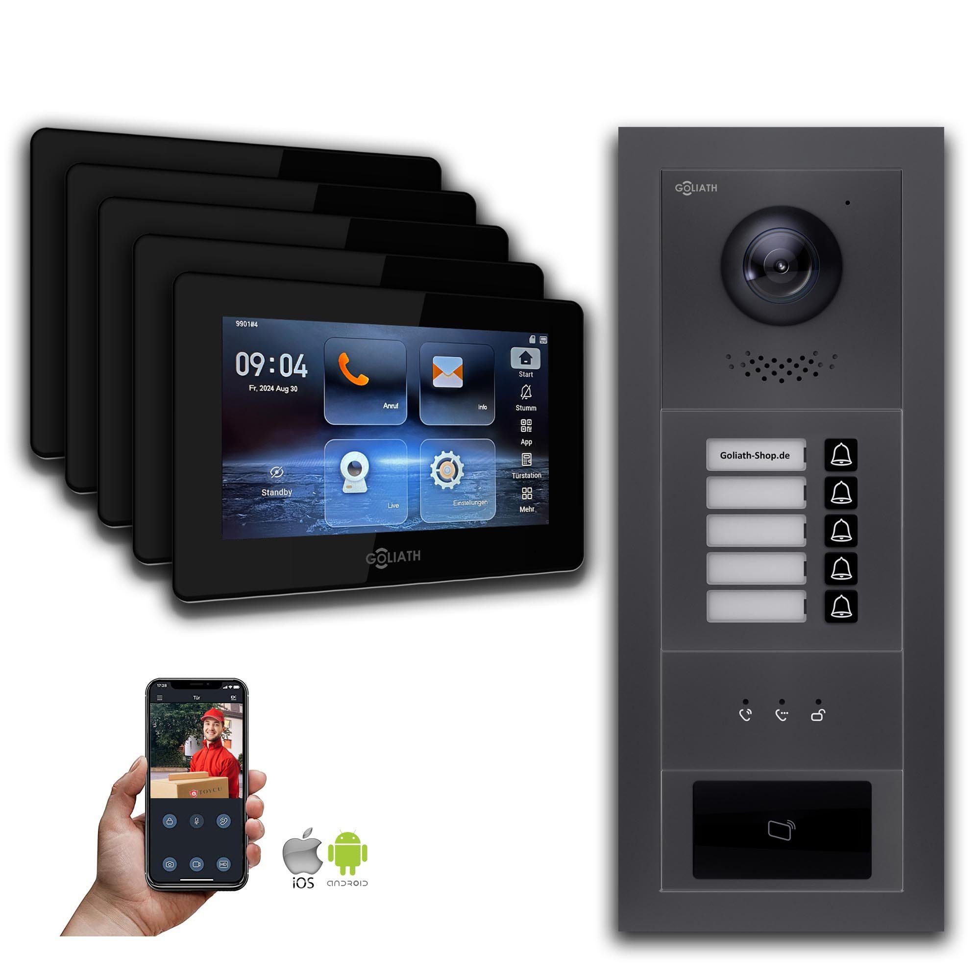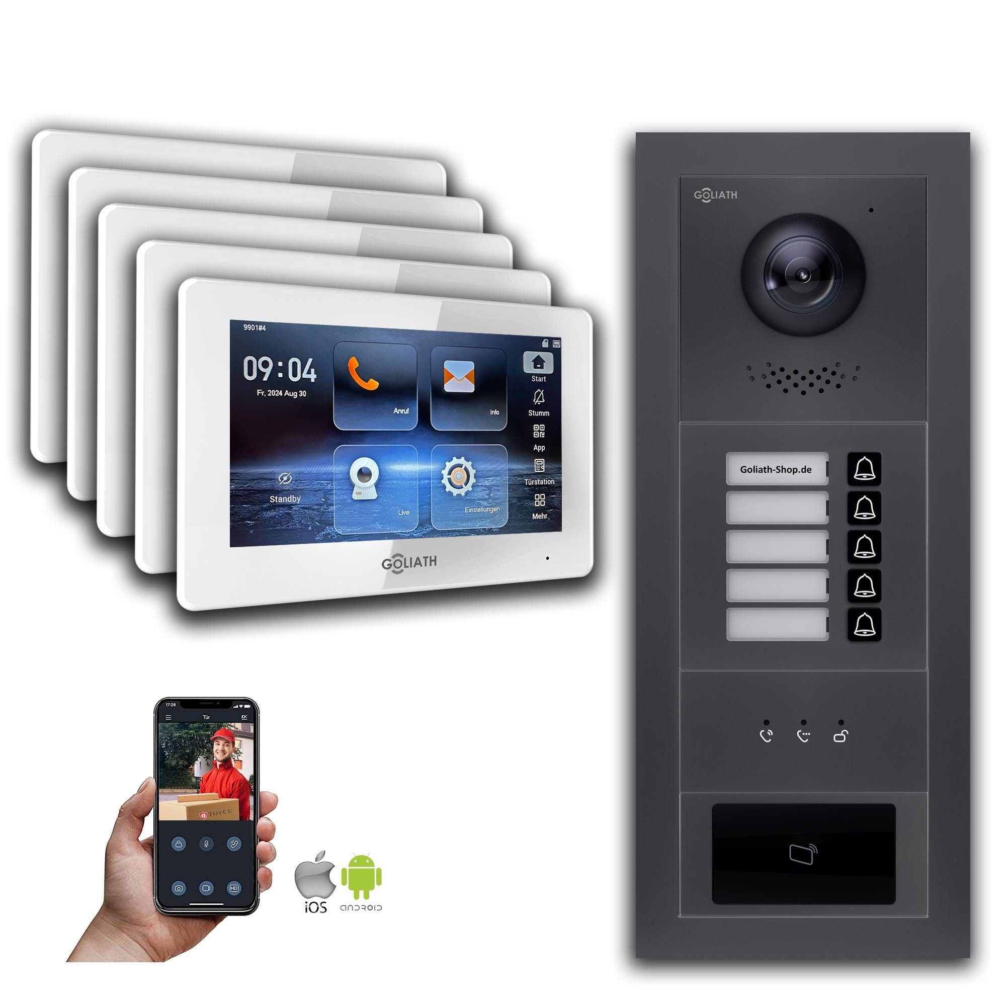 Goliath Intercom Video-Türsprechanlage Goliath IP Video Türsprechanlage: 7-Zoll 5 Familienhaus, RFID, Anzeige (Privat oder Gewerblich)