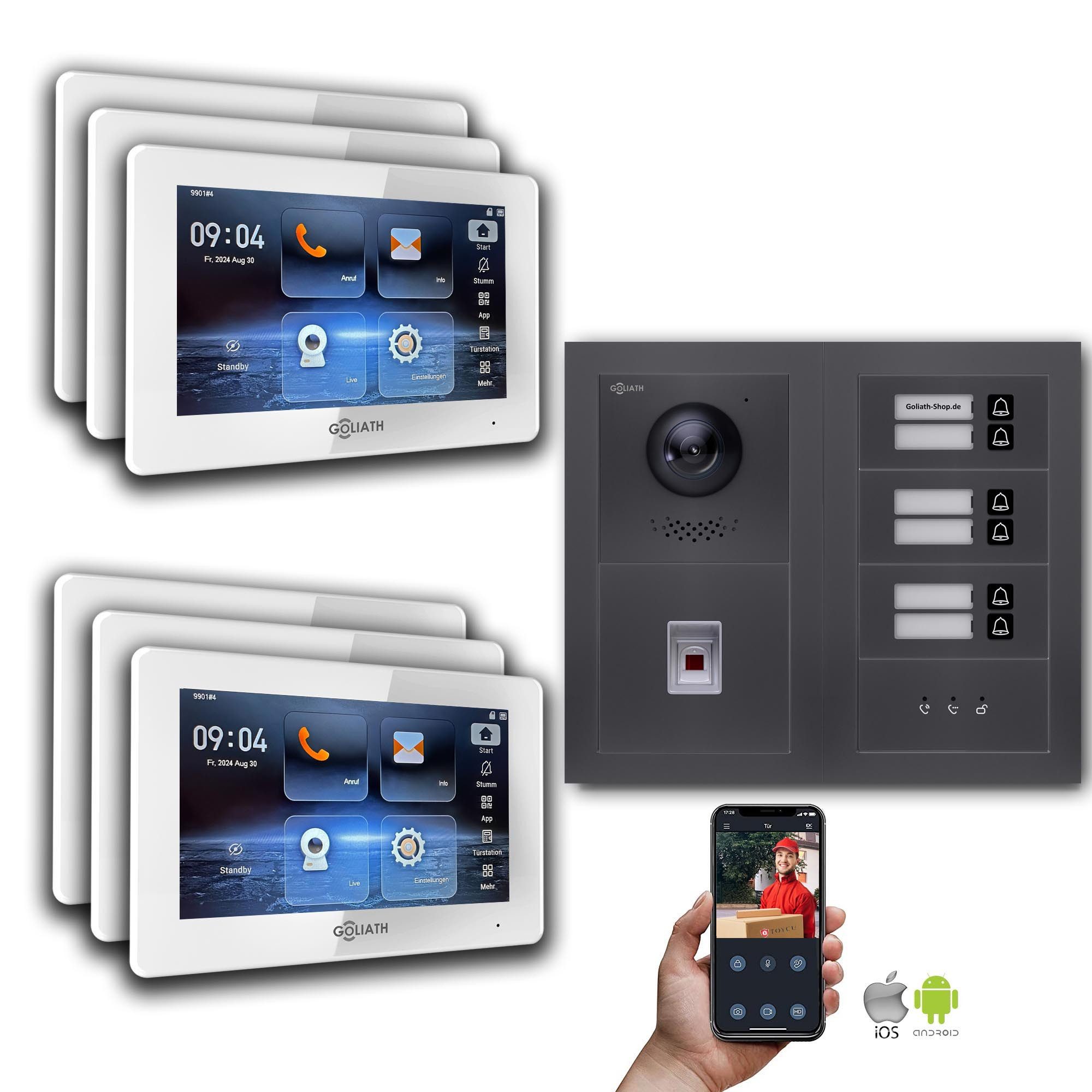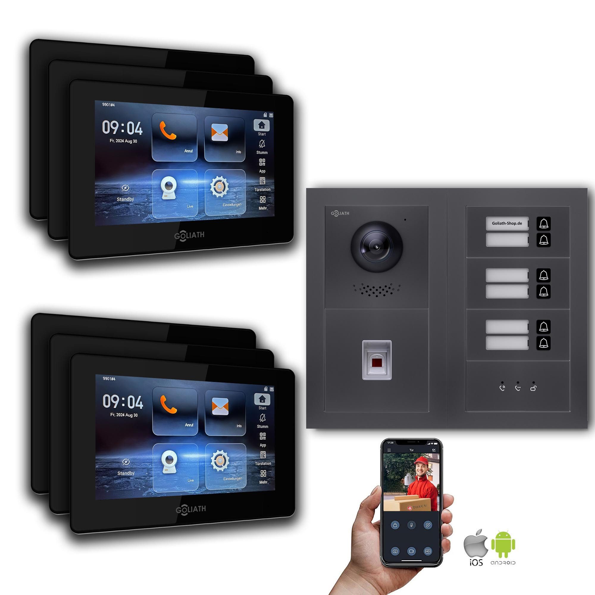 Goliath Intercom Video-Türsprechanlage Goliath IP Video Türsprechanlage: 7-Zoll 6 Familienhaus, Fingerprint, (Privat oder Gewerblich)