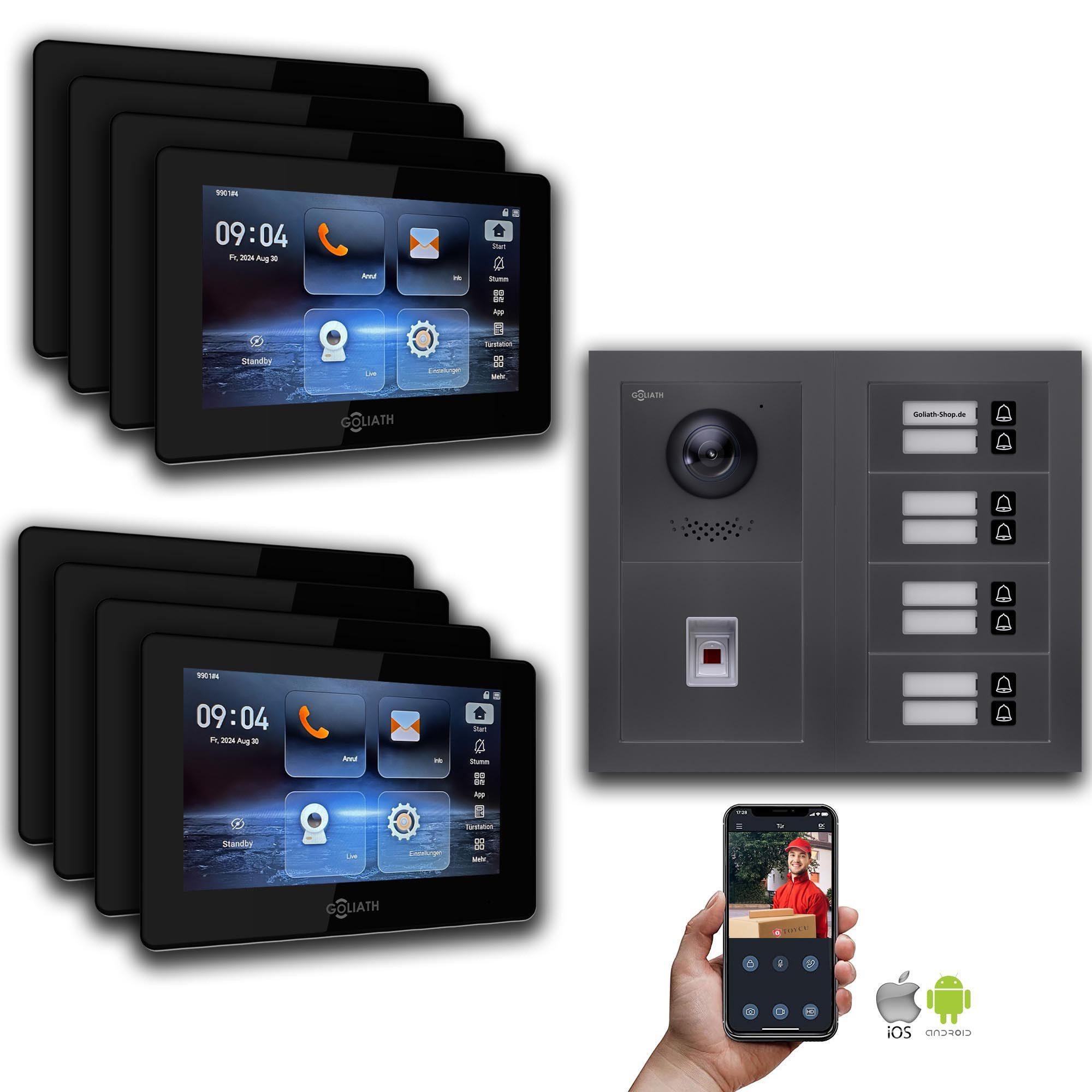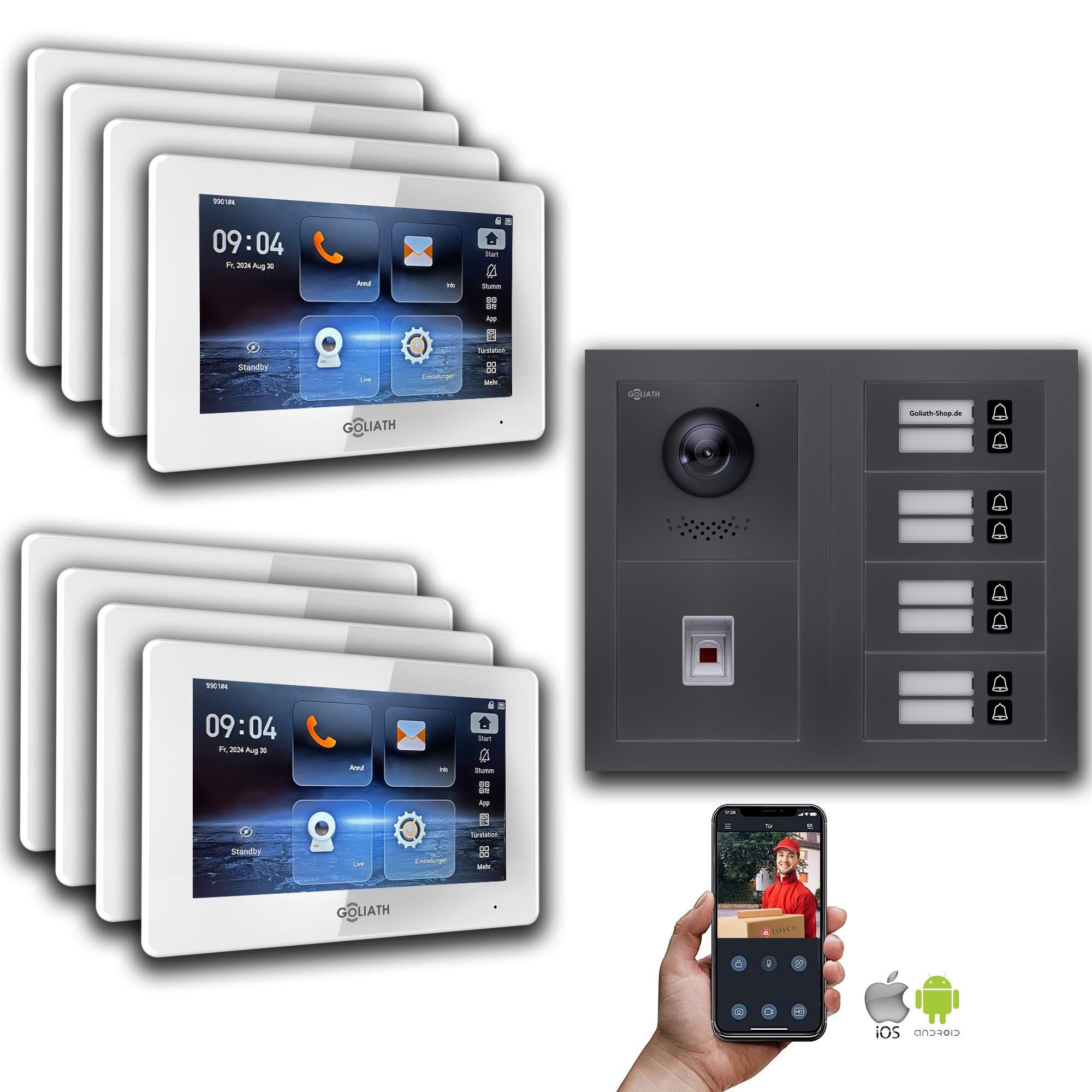 Goliath Intercom Video-Türsprechanlage Goliath IP Video Türsprechanlage: 7-Zoll 8 Familienhaus, Fingerprint, (Privat oder Gewerblich)