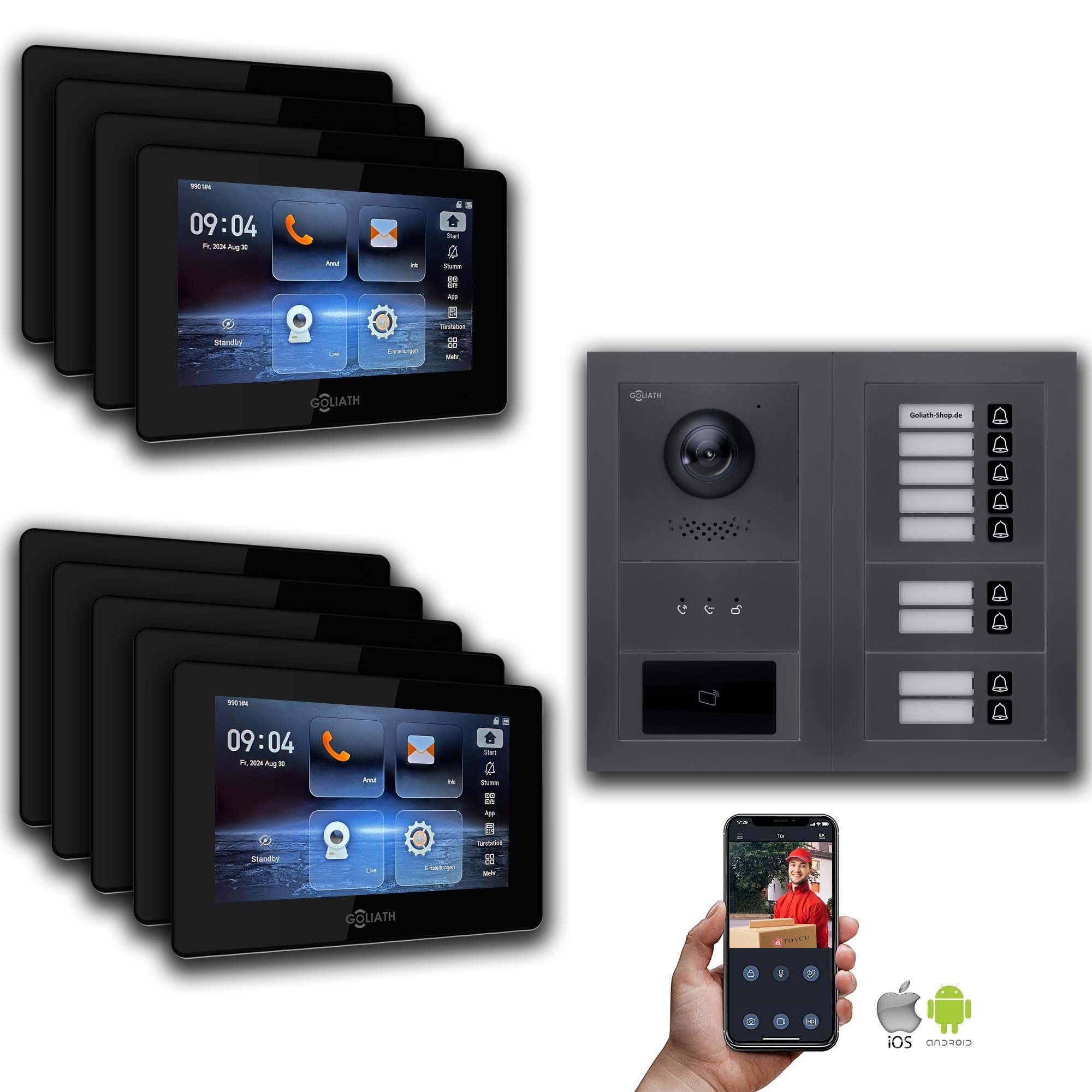 Die Goliath Video Türsprechanlage ist eine hochmoderne und zuverlässige Sicherheitslösung für Ihr Zuhause oder Unternehmen. Mit ihrer fortschrittlichen Technologie bietet sie Ihnen ein Höchstmaß an Sicherheit und Komfort. Die hohe Bild- und Tonqualität ermöglicht Ihnen eine sichere Identifizierung von Besuchern, bevor Sie die Tür öffnen. Zusätzlich bietet die Türklingel Sicherheitsfunktionen wie die Türöffnung mit Passwort oder Fingerabdruck, um den Zugang zu autorisierten Personen zu beschränken. Die Fernzugriffsfunktion über App Android/iOS ermöglicht es Ihnen, von überall aus auf Ihr System zuzugreifen und mit Besuchern zu kommunizieren. Die robuste Bauweise und Wetterbeständigkeit schützen die Türsprechanlage vor Vandalismus und extremen Wetterbedingungen. Insgesamt bietet die Goliath Video Türsprechanlage eine umfassende Sicherheitslösung mit hohem Schutz und Zuverlässigkeit.