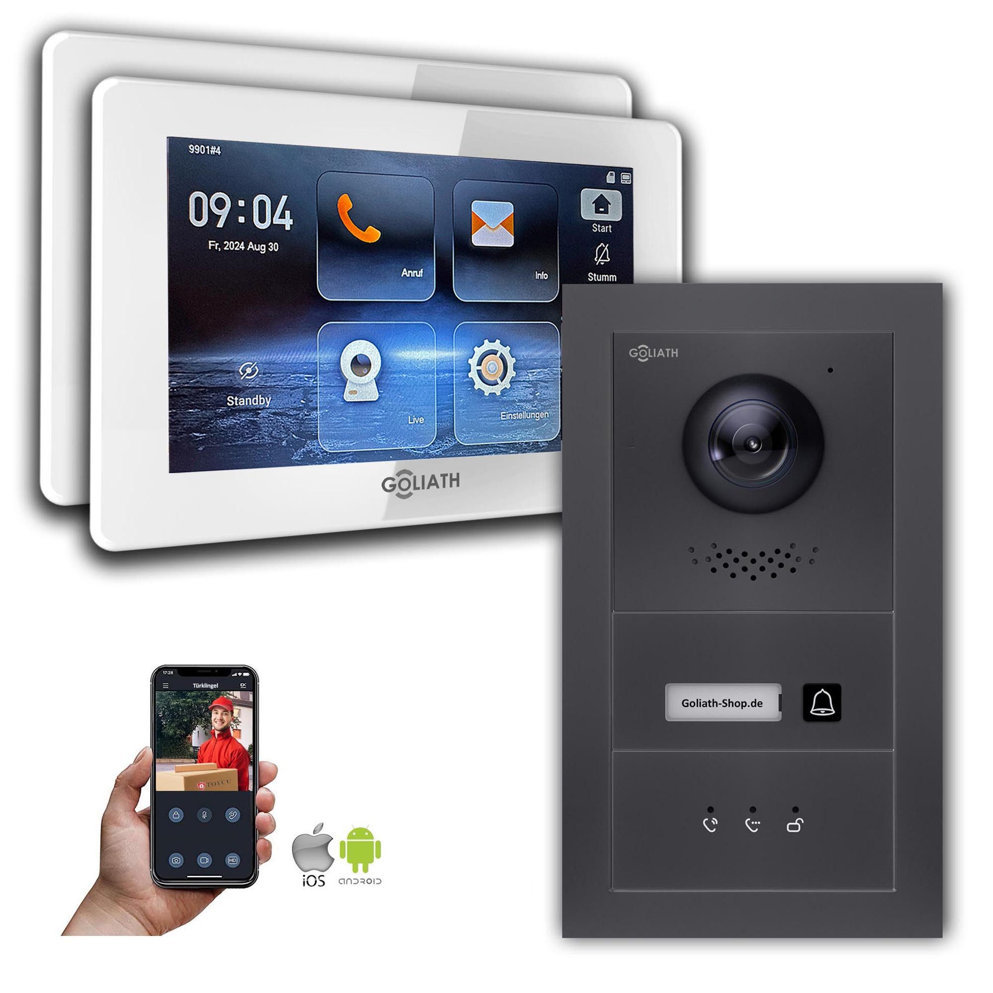 Die Goliath Video Türsprechanlage ist eine hochmoderne und zuverlässige Sicherheitslösung für Ihr Zuhause oder Unternehmen. Mit ihrer fortschrittlichen Technologie bietet sie Ihnen ein Höchstmaß an Sicherheit und Komfort. Die hohe Bild- und Tonqualität ermöglicht Ihnen eine sichere Identifizierung von Besuchern, bevor Sie die Tür öffnen. Zusätzlich bietet die Türklingel Sicherheitsfunktionen wie die Türöffnung mit Passwort oder Fingerabdruck, um den Zugang zu autorisierten Personen zu beschränken. Die Fernzugriffsfunktion über App Android/iOS ermöglicht es Ihnen, von überall aus auf Ihr System zuzugreifen und mit Besuchern zu kommunizieren. Die robuste Bauweise und Wetterbeständigkeit schützen die Türsprechanlage vor Vandalismus und extremen Wetterbedingungen. Insgesamt bietet die Goliath Video Türsprechanlage eine umfassende Sicherheitslösung mit hohem Schutz und Zuverlässigkeit.