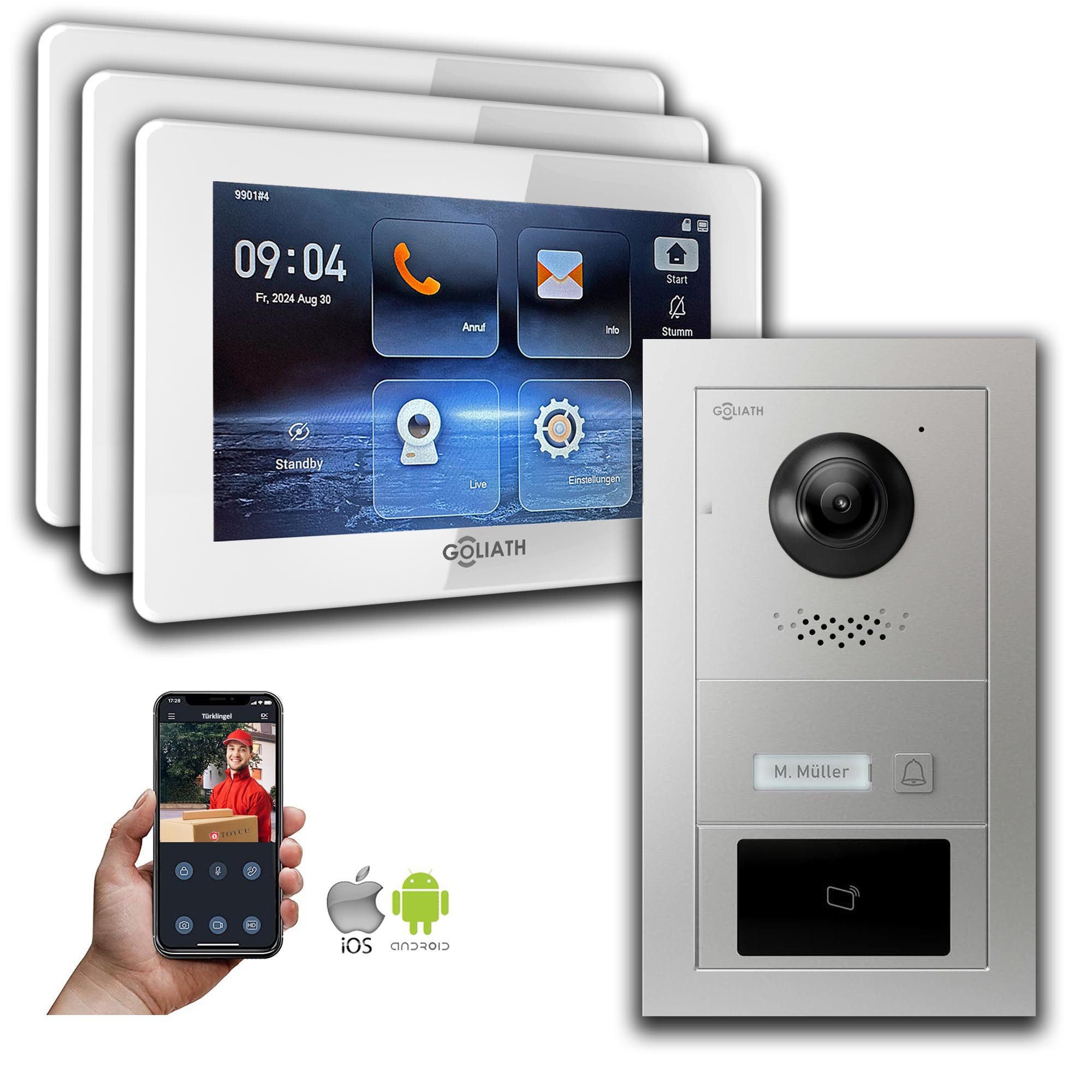 Die Goliath Video Türsprechanlage ist eine hochmoderne und zuverlässige Sicherheitslösung für Ihr Zuhause oder Unternehmen. Mit ihrer fortschrittlichen Technologie bietet sie Ihnen ein Höchstmaß an Sicherheit und Komfort. Die hohe Bild- und Tonqualität ermöglicht Ihnen eine sichere Identifizierung von Besuchern, bevor Sie die Tür öffnen. Zusätzlich bietet die Türklingel Sicherheitsfunktionen wie die Türöffnung mit Passwort oder Fingerabdruck, um den Zugang zu autorisierten Personen zu beschränken. Die Fernzugriffsfunktion über App Android/iOS ermöglicht es Ihnen, von überall aus auf Ihr System zuzugreifen und mit Besuchern zu kommunizieren. Die robuste Bauweise und Wetterbeständigkeit schützen die Türsprechanlage vor Vandalismus und extremen Wetterbedingungen. Insgesamt bietet die Goliath Video Türsprechanlage eine umfassende Sicherheitslösung mit hohem Schutz und Zuverlässigkeit.