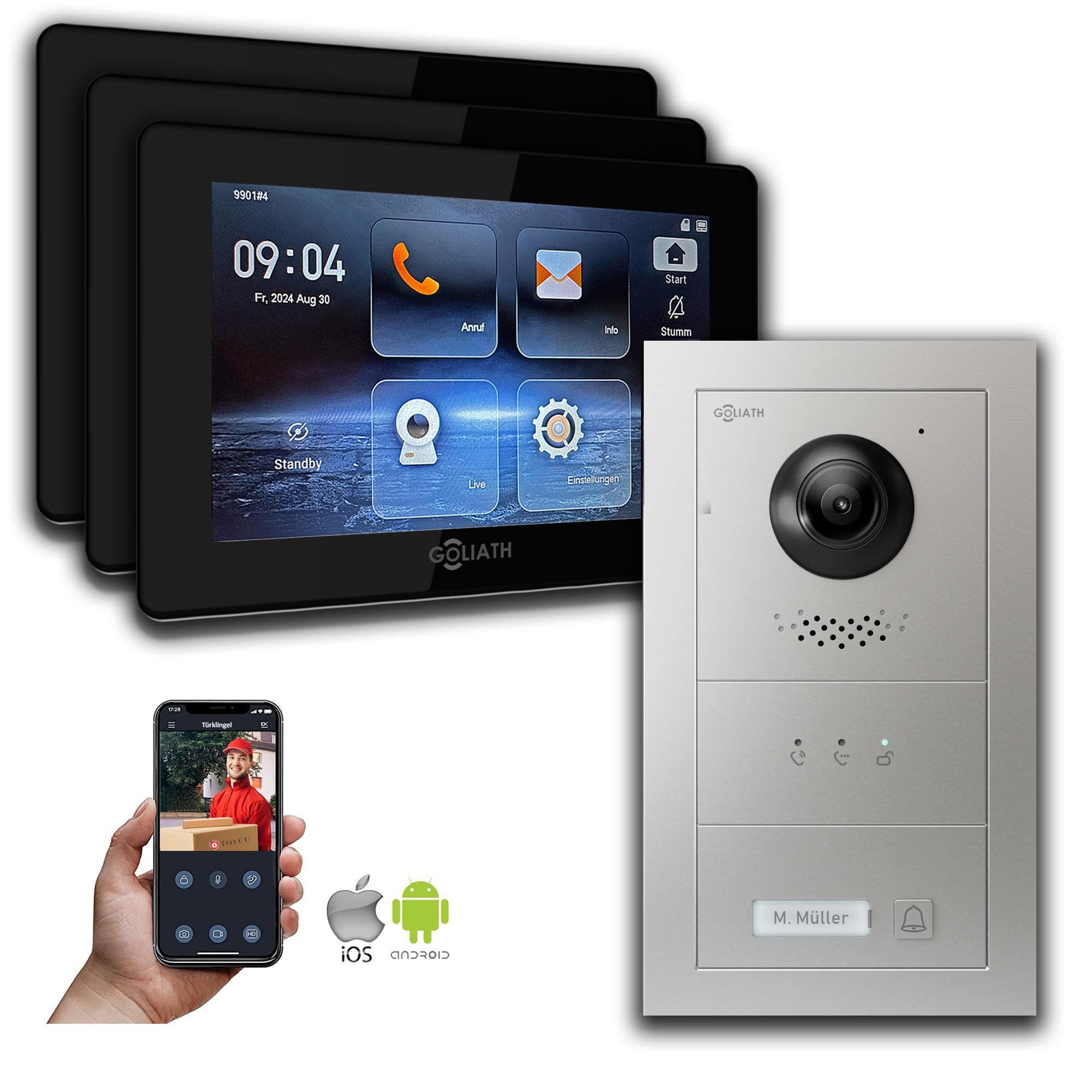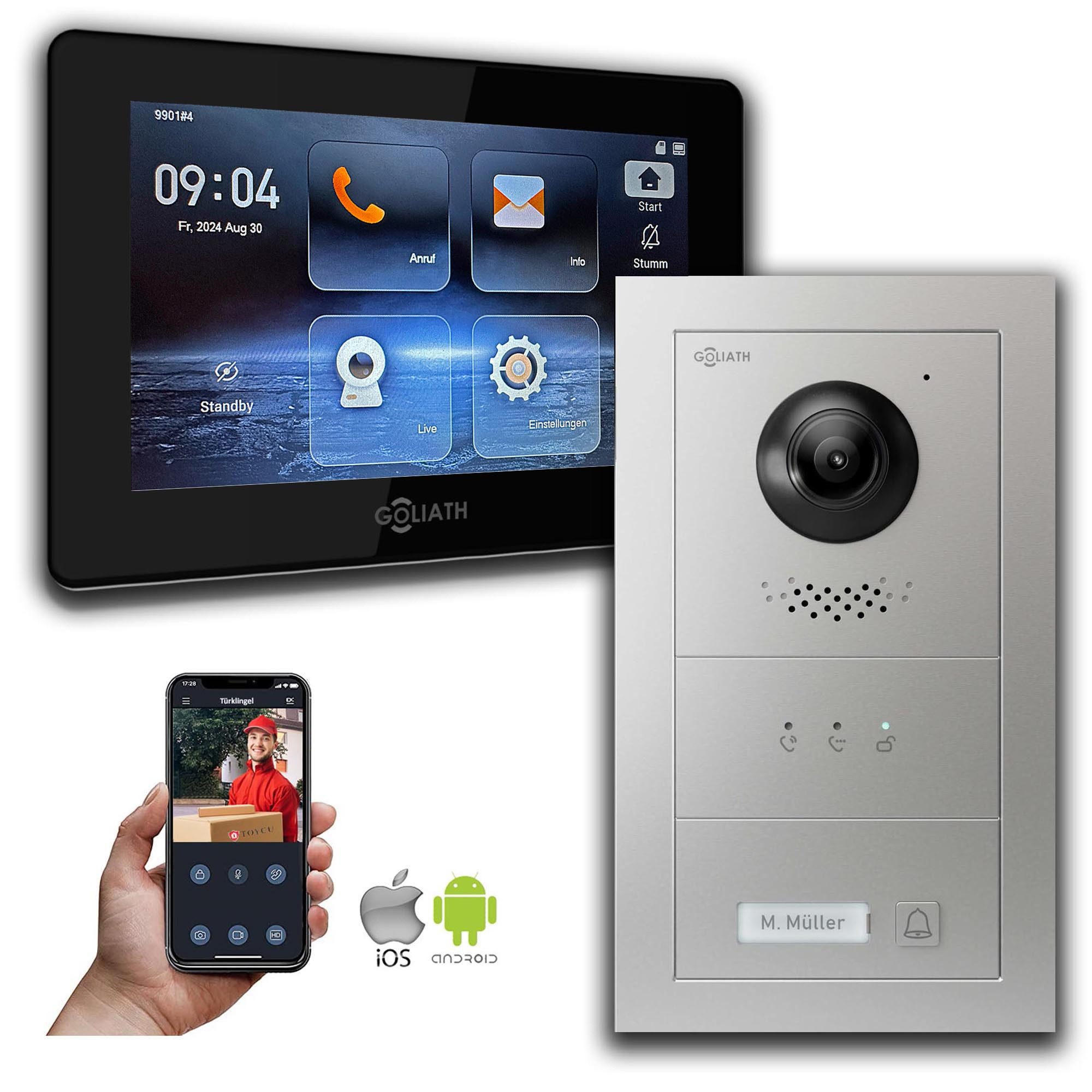 Goliath Intercom Video-Türsprechanlage Goliath IP Video Türsprechanlage mit Kamera 7-Zoll Silber (Privat oder Gewerblich)