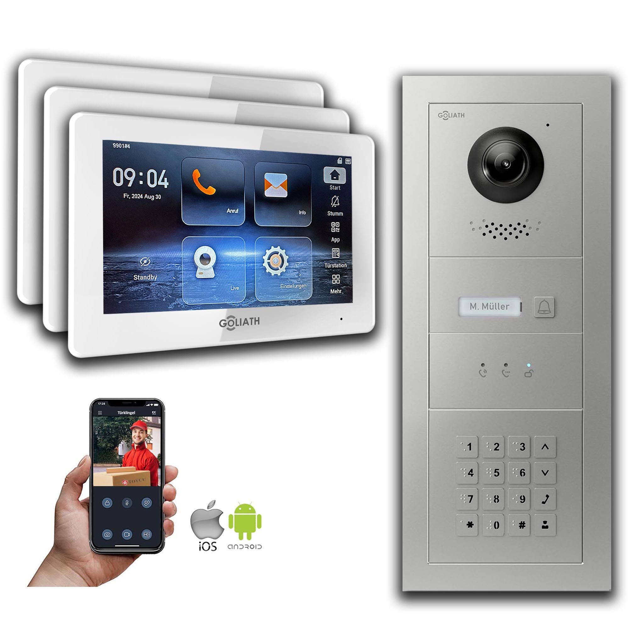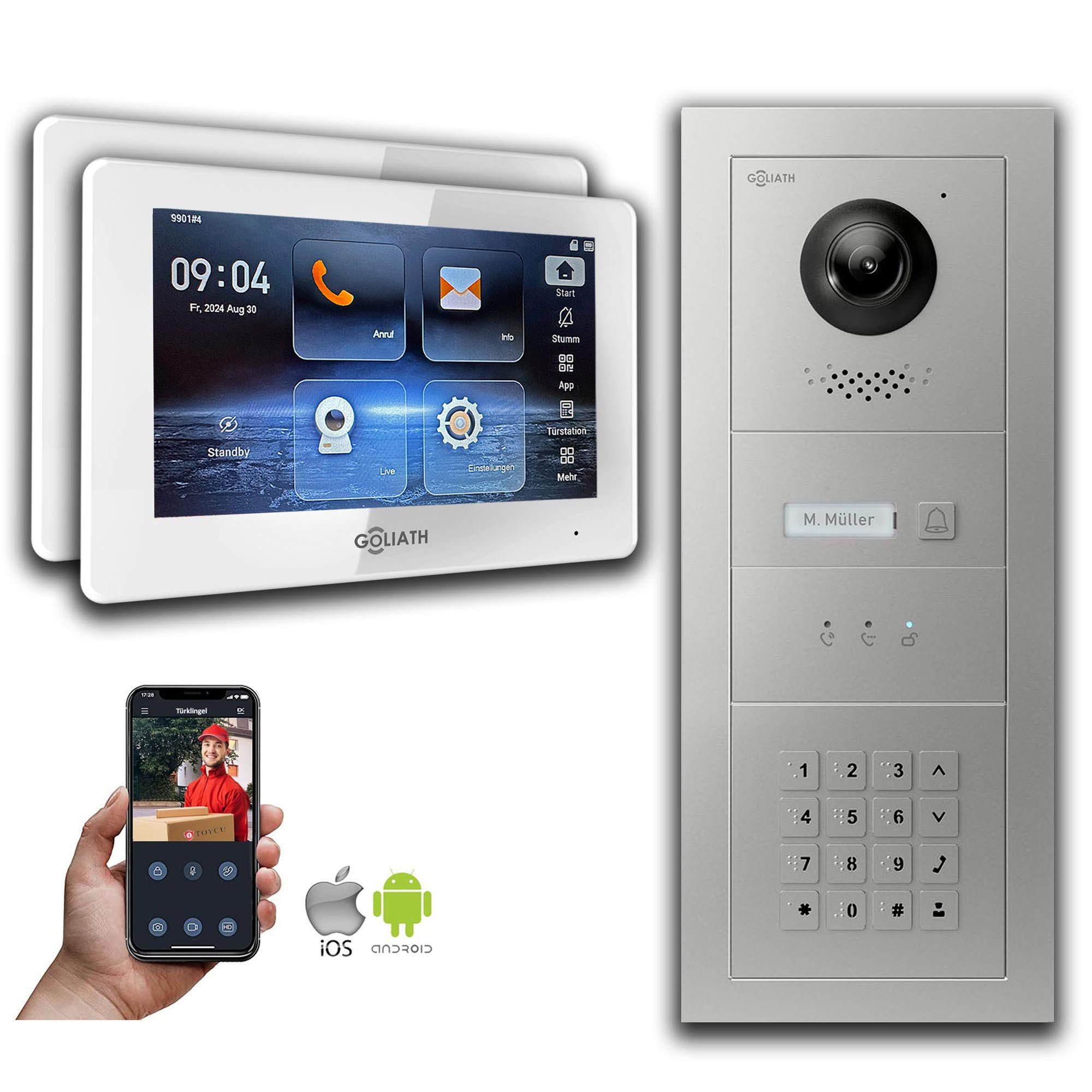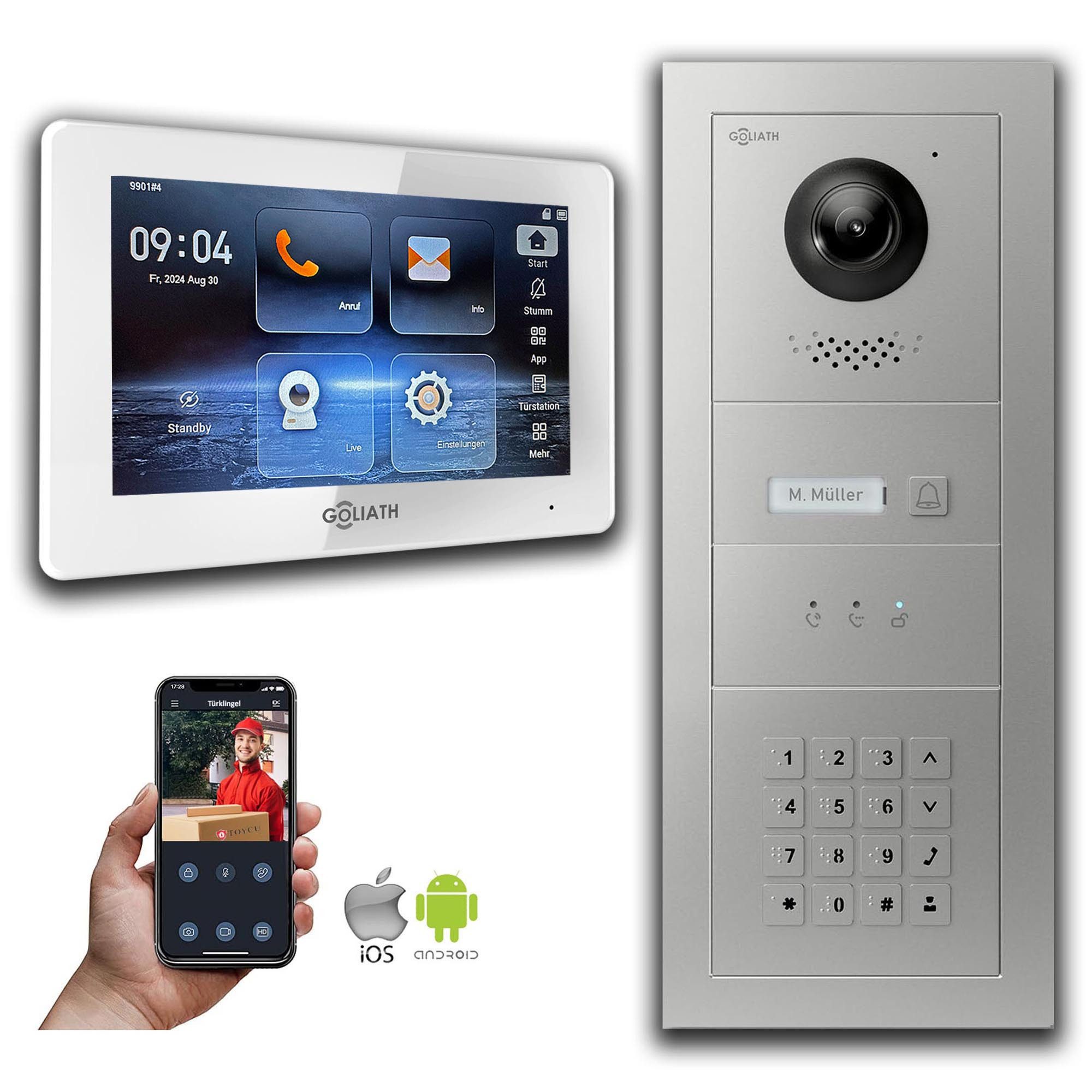 Die Goliath Video Türsprechanlage ist eine hochmoderne und zuverlässige Sicherheitslösung für Ihr Zuhause oder Unternehmen. Mit ihrer fortschrittlichen Technologie bietet sie Ihnen ein Höchstmaß an Sicherheit und Komfort. Die hohe Bild- und Tonqualität ermöglicht Ihnen eine sichere Identifizierung von Besuchern, bevor Sie die Tür öffnen. Zusätzlich bietet die Türklingel Sicherheitsfunktionen wie die Türöffnung mit Passwort oder Fingerabdruck, um den Zugang zu autorisierten Personen zu beschränken. Die Fernzugriffsfunktion über App Android/iOS ermöglicht es Ihnen, von überall aus auf Ihr System zuzugreifen und mit Besuchern zu kommunizieren. Die robuste Bauweise und Wetterbeständigkeit schützen die Türsprechanlage vor Vandalismus und extremen Wetterbedingungen. Insgesamt bietet die Goliath Video Türsprechanlage eine umfassende Sicherheitslösung mit hohem Schutz und Zuverlässigkeit.