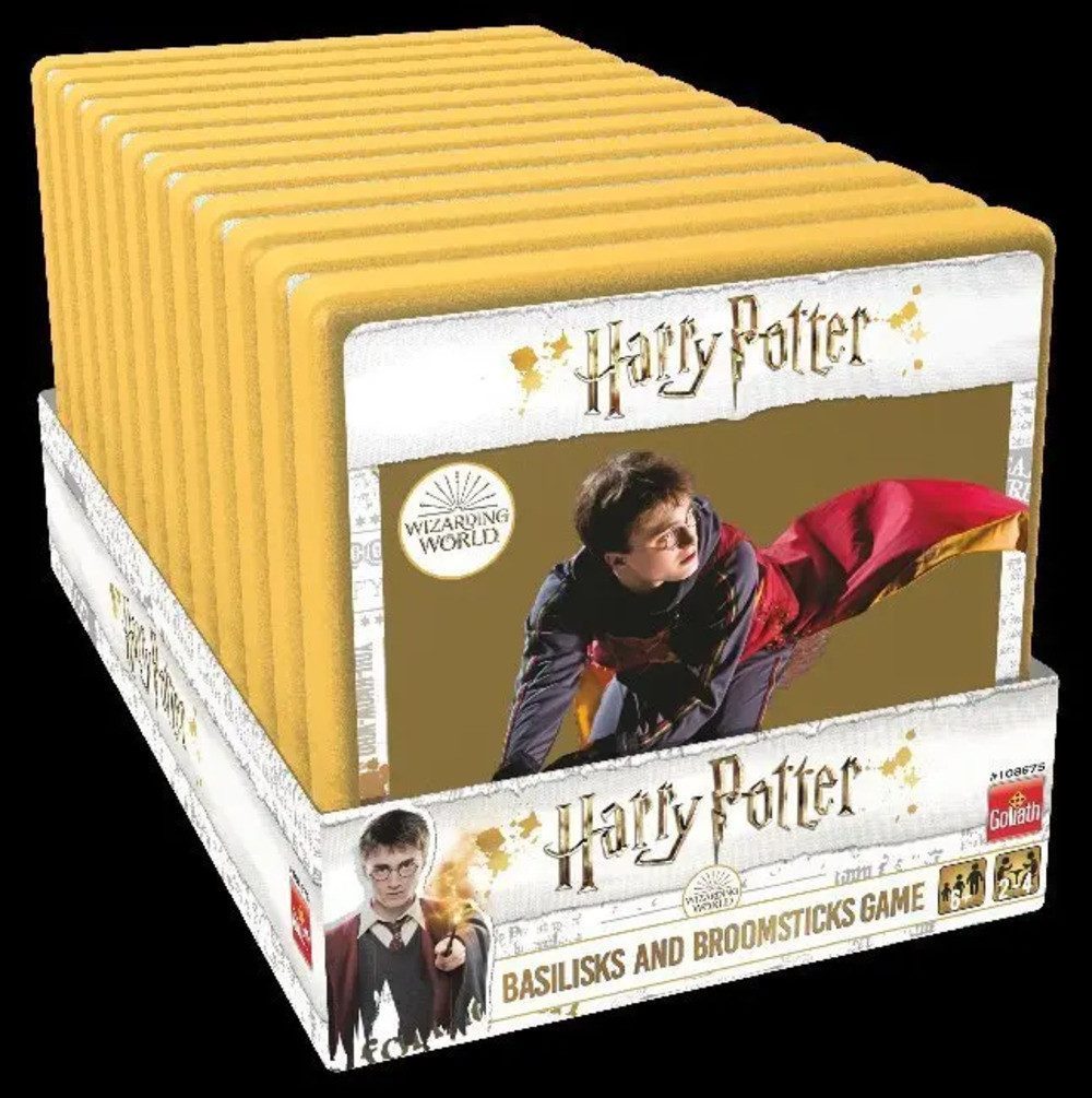 Das Harry Potter - Basilisks and Broomsticks ist ein cooles Reisespiel für alle Harry Potter Fans. Das Spiel folgt einem gängigen Spielprinzip, bei dem 2 Spieler versuchen ihre Spielfiguren als erster ins Ziel zu bringen. Aber Achtung. Auf dem Weg dorthin lauern Basilisken, die versuchen einen daran zu hindern. Besenstiele helfen jedoch dabei. Das Spielfeld und die Spielfiguren sind magnetisch, so kann auch im Auto oder Zug gespielt werden, ohne dass die Figuren durcheinandergeraten. Die Lieferung erfolgt in einem attraktiven Thekendisplay mit 10 Spielen in einer hochwertigen Metalldose, die sich ganz einfach in Taschen oder Rucksäcken verstauen lässt.