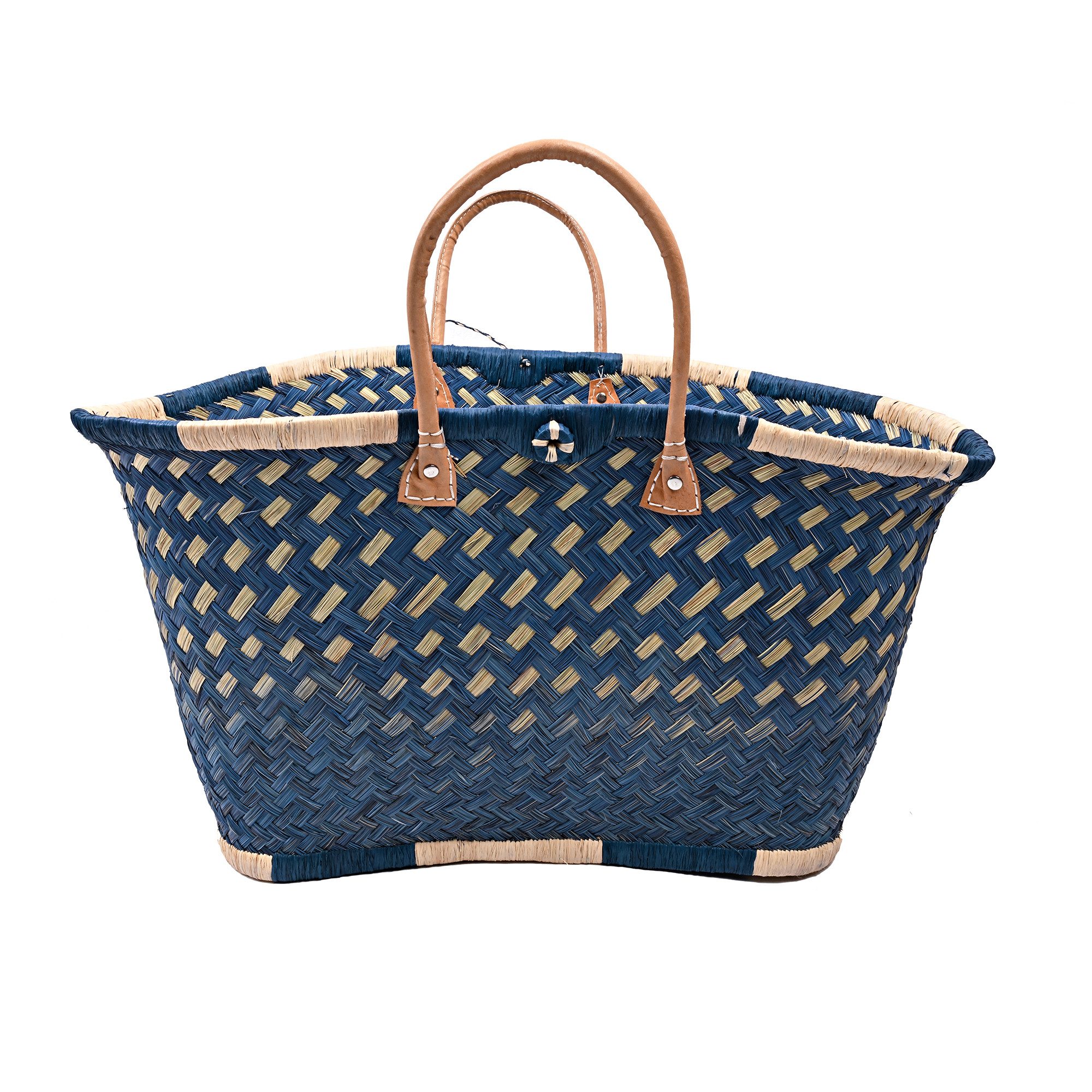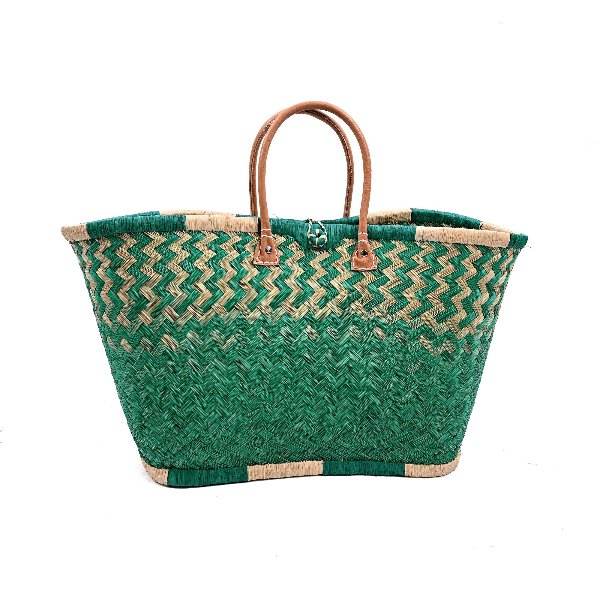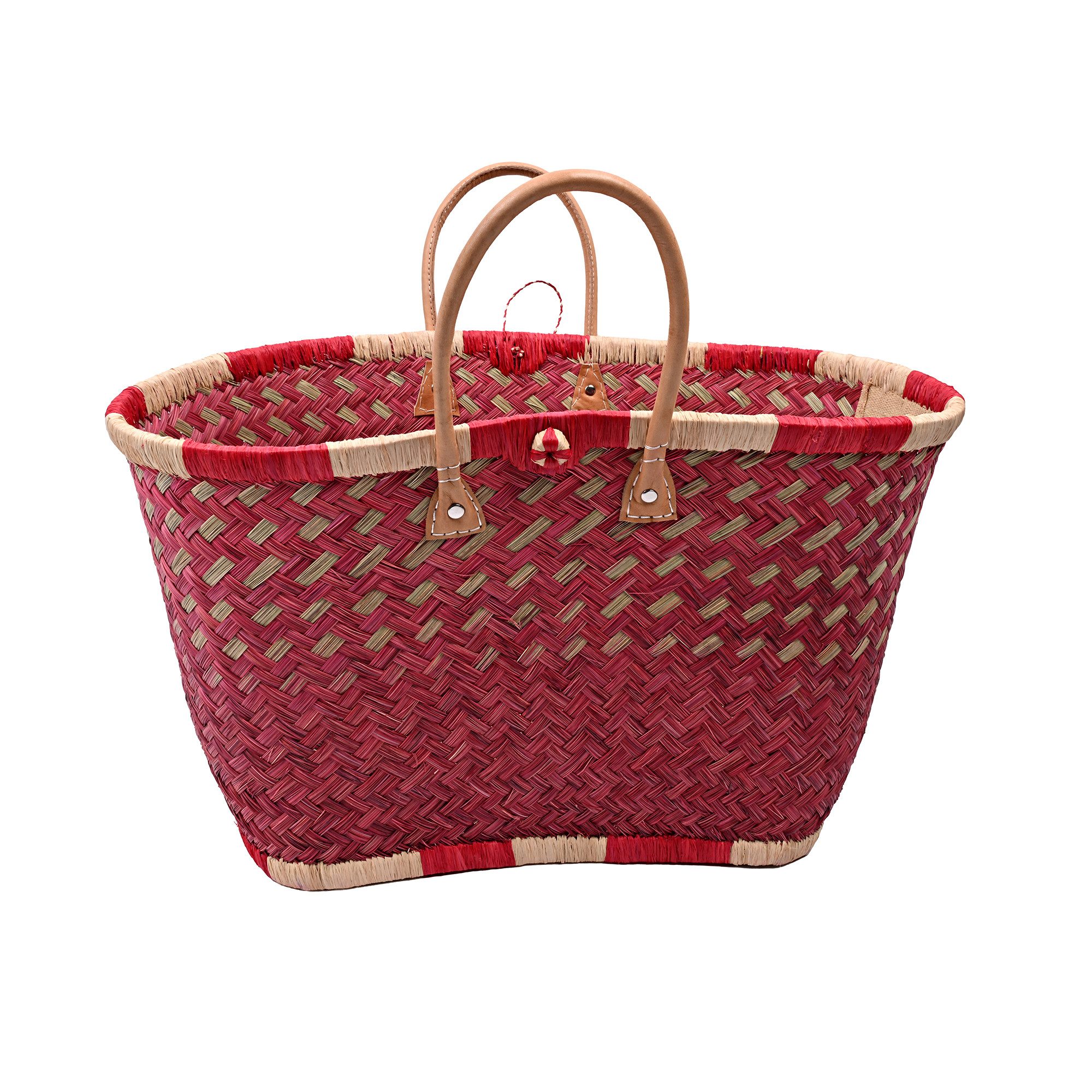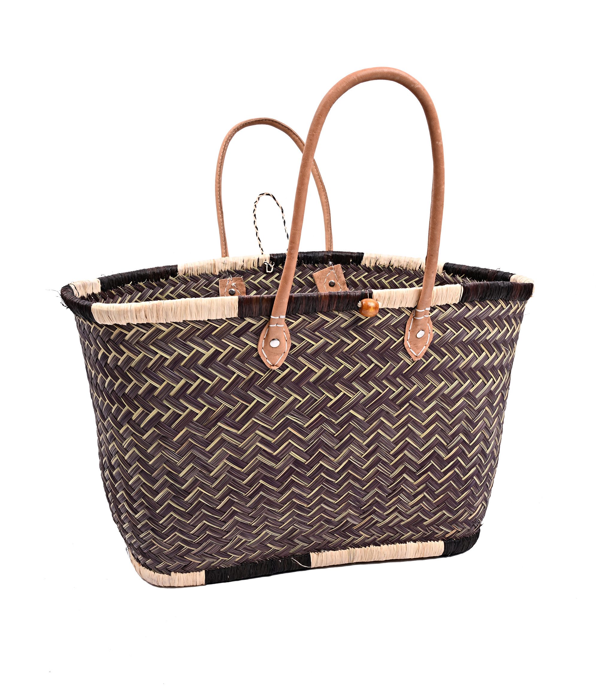 Diese hochwertige Basttasche vereint traditionelles Handwerk mit modernem, alltagstauglichem Design. Sie wurde in sorgfältiger Handarbeit aus natürlichen Fasern geflochten und überzeugt durch ihre besondere Stabilität, ihr großes Fassungsvermögen und ihre langlebige Verarbeitung. Dank der robusten Ledergriffe und ihrer tiefen Form eignet sich die Tasche ideal zum Tragen von schweren Lasten – ob beim Einkaufen, am Strand, auf Reisen oder im täglichen Gebrauch. Mit einer großzügigen Размер von ca. 30 cm Höhe und 58 cm Breite bietet sie ausreichend Platz für Einkäufe, Kleidung, Bücher oder andere persönliche Dinge. Eine kleine Innentasche sorgt für zusätzlichen Stauraum für Schlüssel, Handy oder Portemonnaie – so hast du das Wichtigste immer griffbereit. Unsere Tragetaschenkörbe bestehen zu 100 % aus natürlichen, biologisch abbaubaren Materialien wie Palmblättern, Rattan, Binse, Mais und Jute. Jede Tasche ist ein Unikat: Durch die individuelle Handarbeit und den Einsatz von Naturmaterialien entstehen kleine Unterschiede in Farbe, Struktur und Webart – genau diese Unregelmäßigkeiten machen den Charme und die Einzigartigkeit jeder Tasche aus.