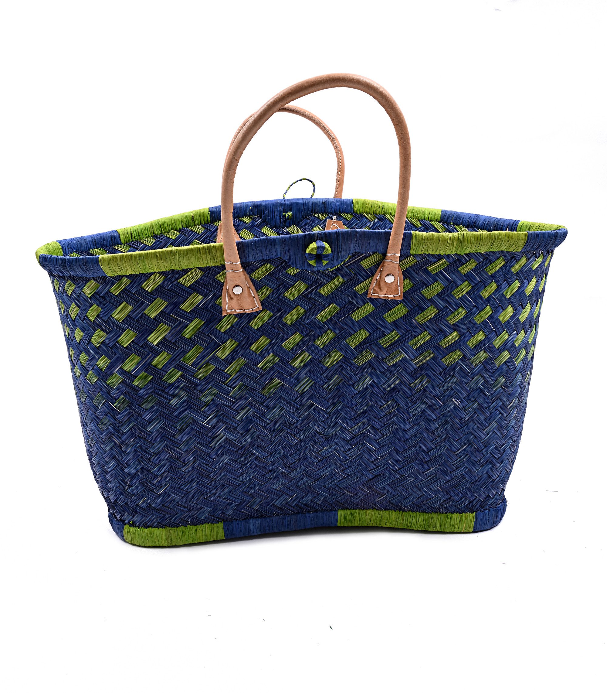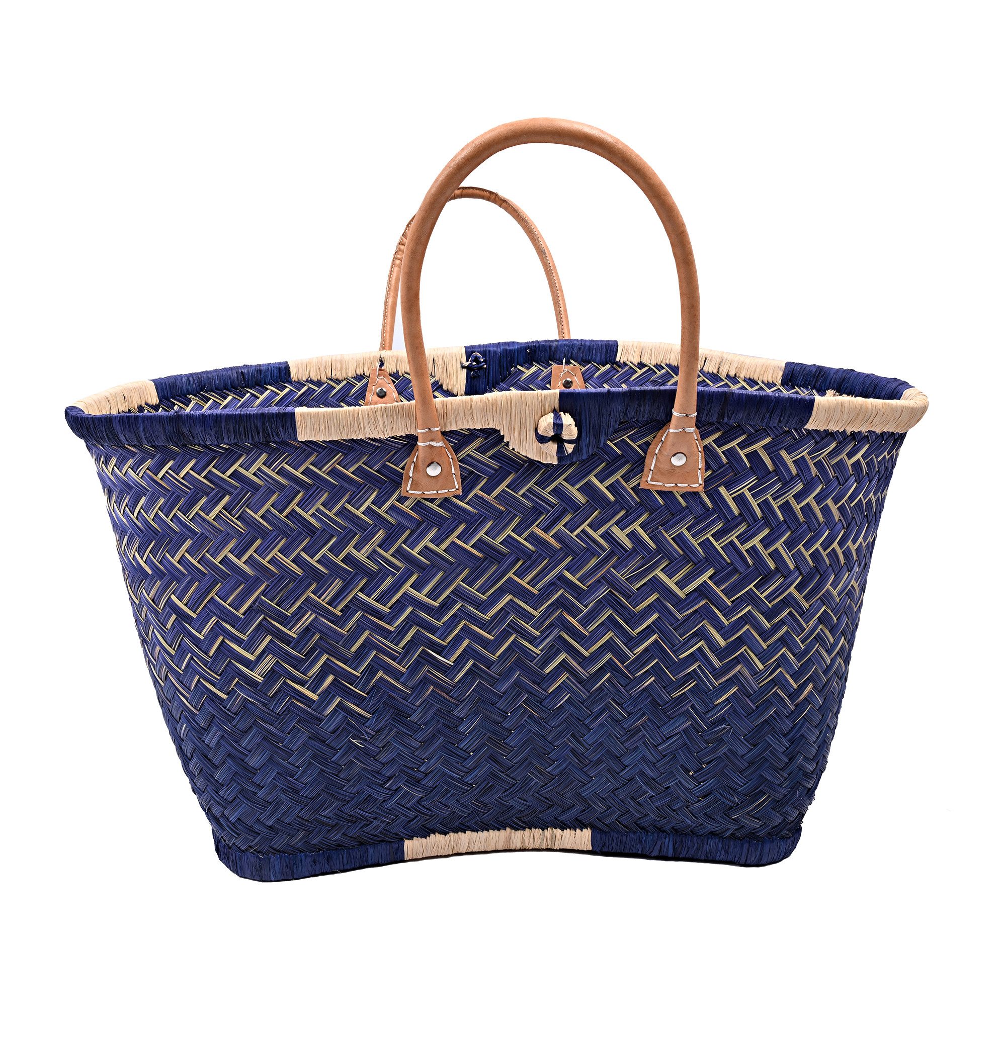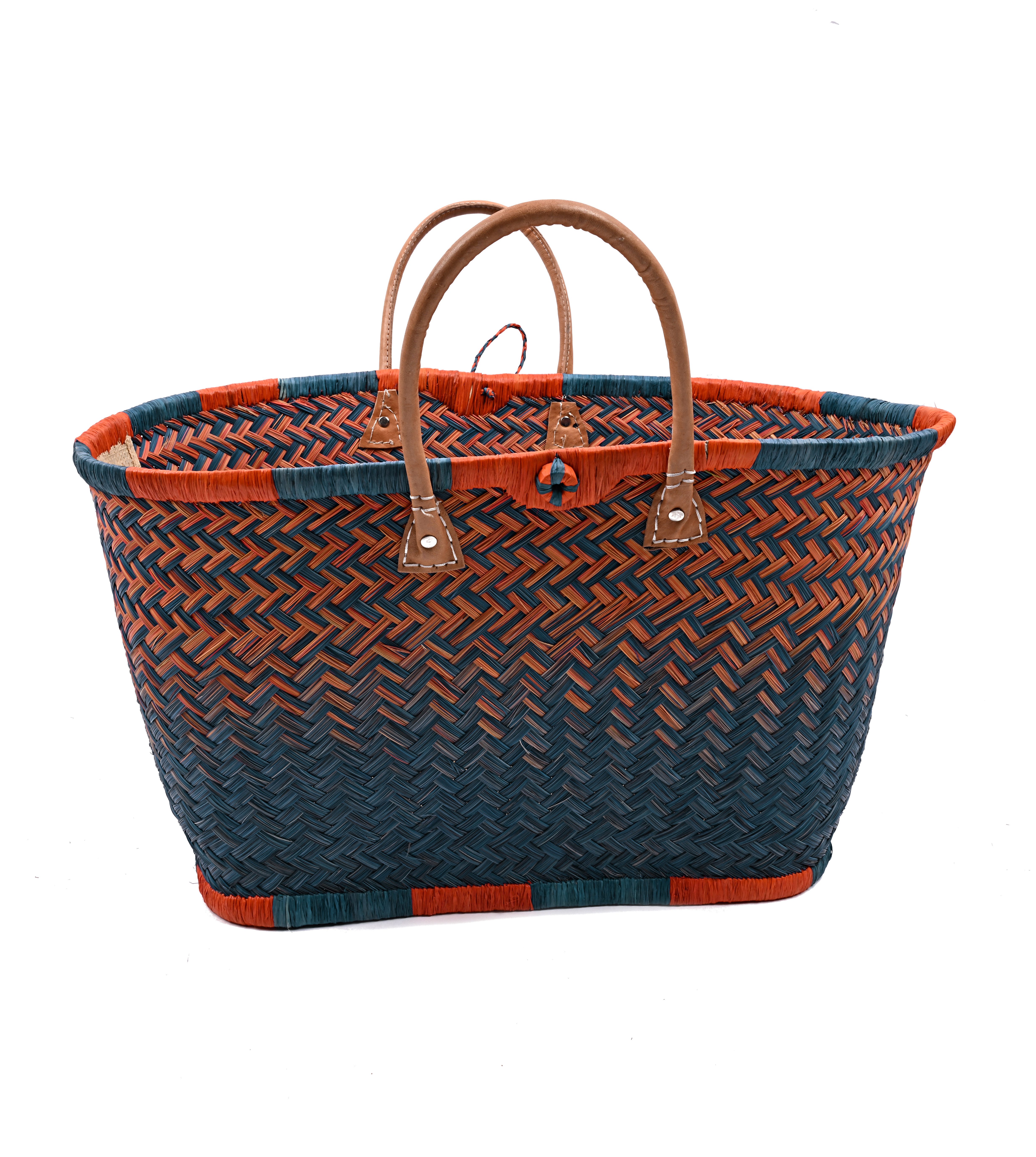 Diese hochwertige Basttasche vereint traditionelles Handwerk mit modernem, alltagstauglichem Design. Sie wurde in sorgfältiger Handarbeit aus natürlichen Fasern geflochten und überzeugt durch ihre besondere Stabilität, ihr großes Fassungsvermögen und ihre langlebige Verarbeitung. Dank der robusten Ledergriffe und ihrer tiefen Form eignet sich die Tasche ideal zum Tragen von schweren Lasten – ob beim Einkaufen, am Strand, auf Reisen oder im täglichen Gebrauch. Mit einer großzügigen Размер von ca. 30 cm Höhe und 58 cm Breite bietet sie ausreichend Platz für Einkäufe, Kleidung, Bücher oder andere persönliche Dinge. Eine kleine Innentasche sorgt für zusätzlichen Stauraum für Schlüssel, Handy oder Portemonnaie – so hast du das Wichtigste immer griffbereit. Unsere Tragetaschenkörbe bestehen zu 100 % aus natürlichen, biologisch abbaubaren Materialien wie Palmblättern, Rattan, Binse, Mais und Jute. Jede Tasche ist ein Unikat: Durch die individuelle Handarbeit und den Einsatz von Naturmaterialien entstehen kleine Unterschiede in Farbe, Struktur und Webart – genau diese Unregelmäßigkeiten machen den Charme und die Einzigartigkeit jeder Tasche aus.
