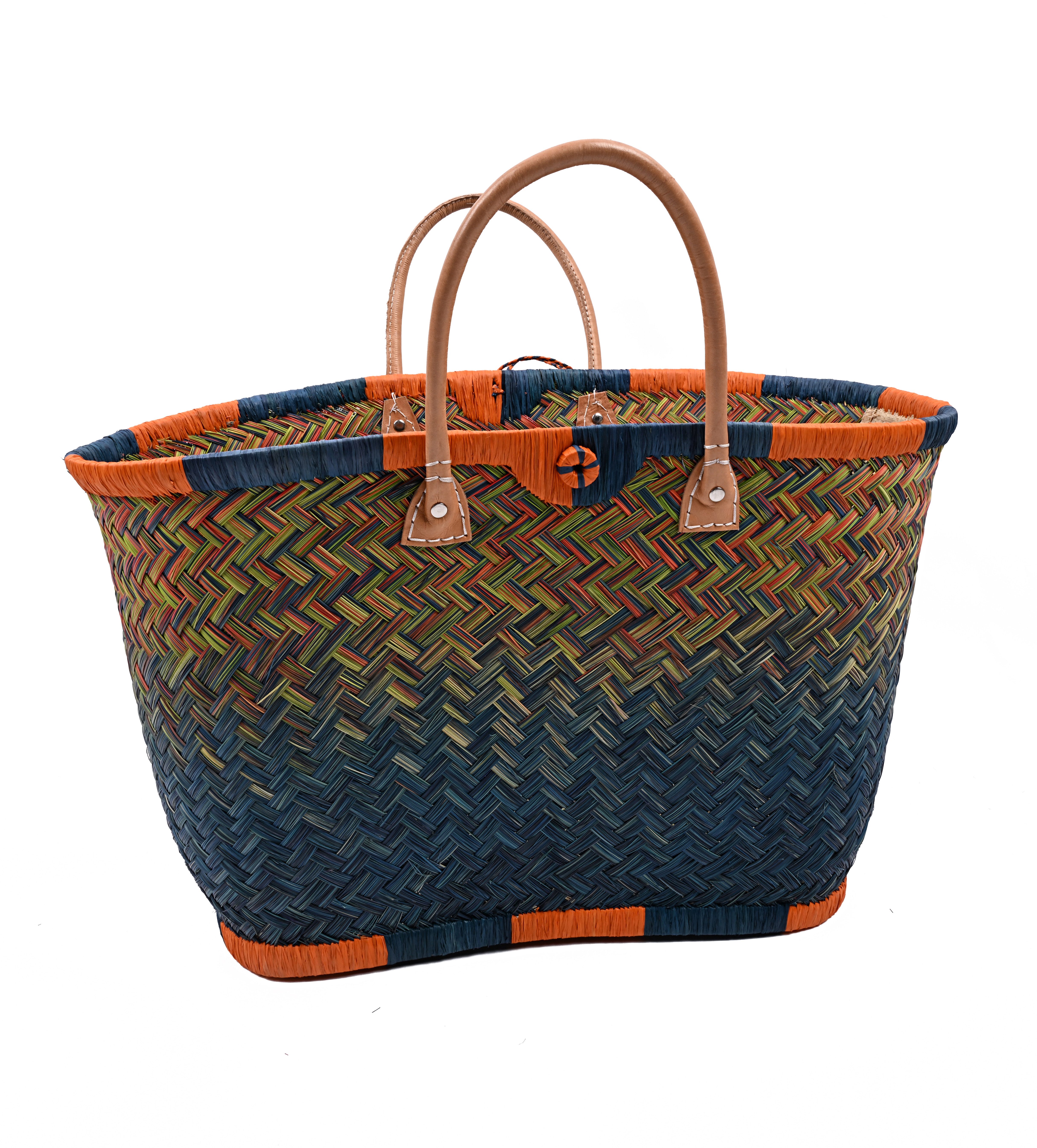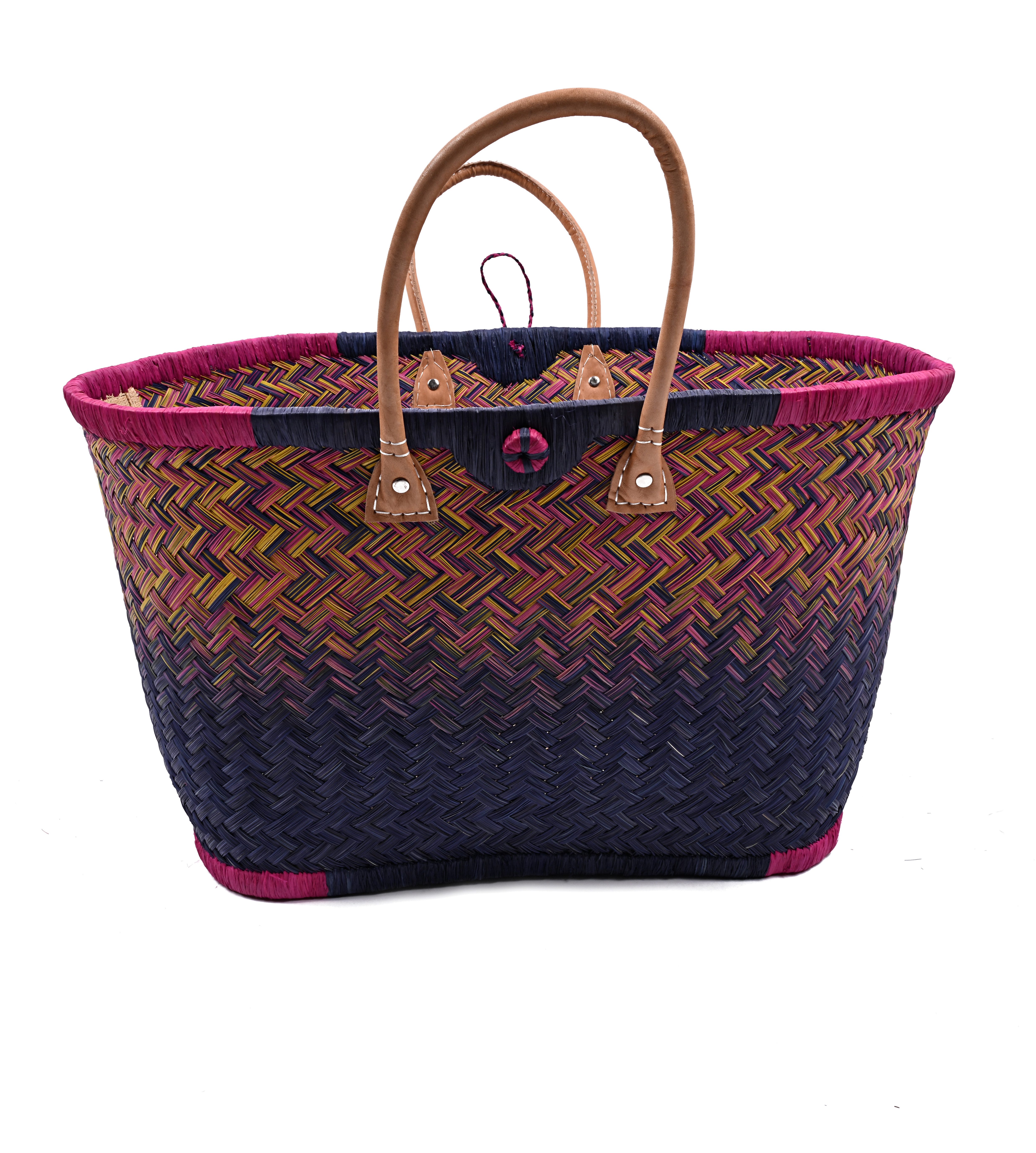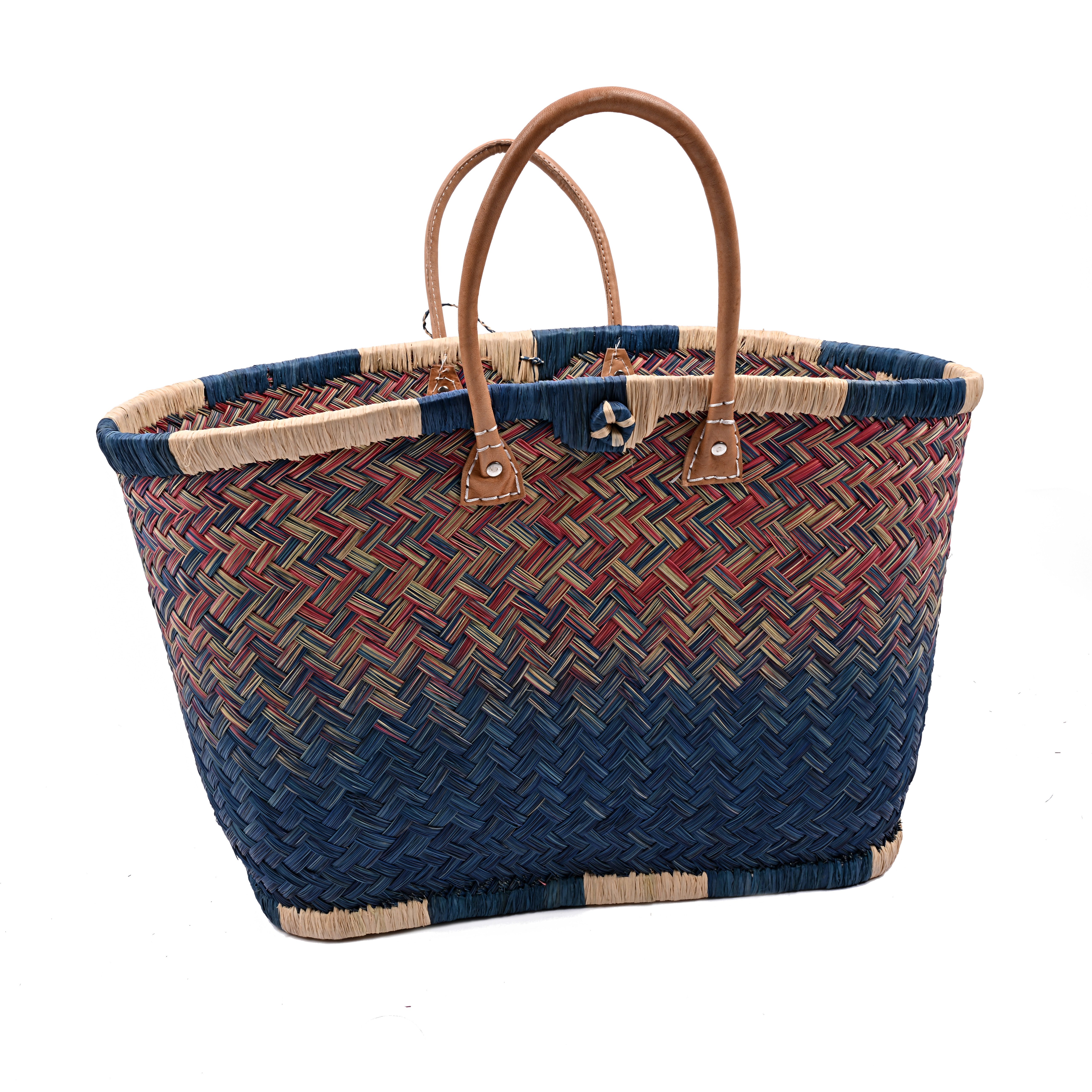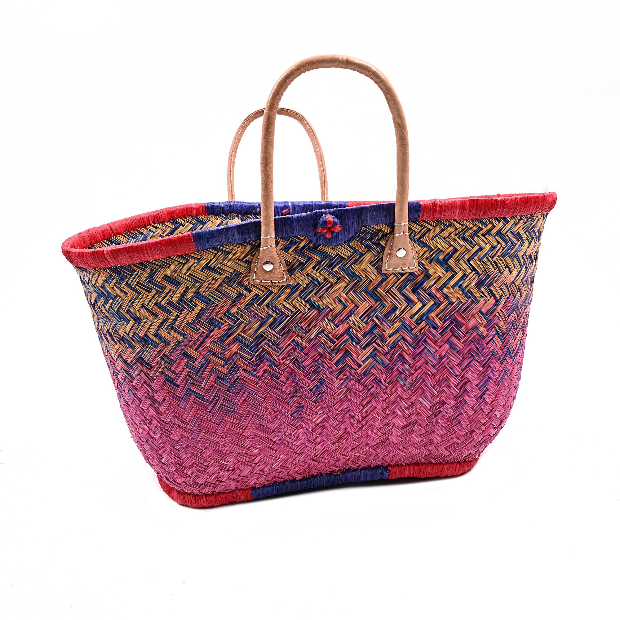 Diese hochwertige Basttasche vereint traditionelles Handwerk mit modernem, alltagstauglichem Design. Sie wurde in sorgfältiger Handarbeit aus natürlichen Fasern geflochten und überzeugt durch ihre besondere Stabilität, ihr großes Fassungsvermögen und ihre langlebige Verarbeitung. Dank der robusten Ledergriffe und ihrer tiefen Form eignet sich die Tasche ideal zum Tragen von schweren Lasten – ob beim Einkaufen, am Strand, auf Reisen oder im täglichen Gebrauch. Mit einer großzügigen Размер von ca. 30 cm Höhe und 58 cm Breite bietet sie ausreichend Platz für Einkäufe, Kleidung, Bücher oder andere persönliche Dinge. Eine kleine Innentasche sorgt für zusätzlichen Stauraum für Schlüssel, Handy oder Portemonnaie – so hast du das Wichtigste immer griffbereit. Unsere Tragetaschenkörbe bestehen zu 100 % aus natürlichen, biologisch abbaubaren Materialien wie Palmblättern, Rattan, Binse, Mais und Jute. Jede Tasche ist ein Unikat: Durch die individuelle Handarbeit und den Einsatz von Naturmaterialien entstehen kleine Unterschiede in Farbe, Struktur und Webart – genau diese Unregelmäßigkeiten machen den Charme und die Einzigartigkeit jeder Tasche aus.
