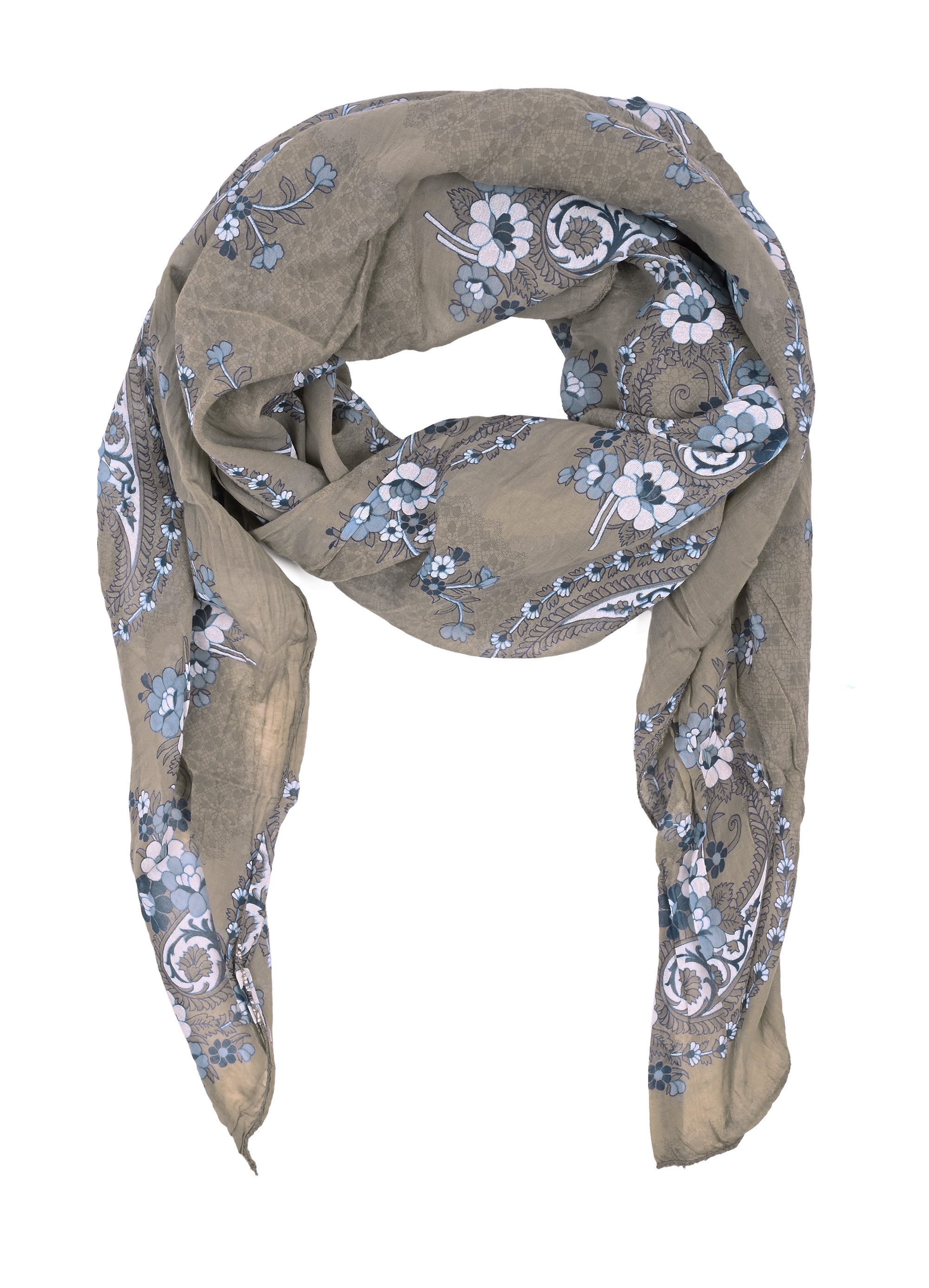 Dieser elegante Schrägschal Made in Italy mit zartem Blumenmuster verleiht jedem Outfit eine feminine Note. Hergestellt aus 80 % Baumwolle und 20 % Seide, überzeugt er mit einer sehr guten Verarbeitung und einem angenehm weichen Griff. Durch das leichte, atmungsaktive Material ist der Schal besonders ideal für den Sommer, aber auch das ganze Jahr über tragbar. Ob locker um den Hals gelegt oder lässig über die Schultern – dieser Schal passt zu jedem Stil und Anlass. Ein vielseitiges Accessoire für Frauen, die Qualität und Stil lieben.