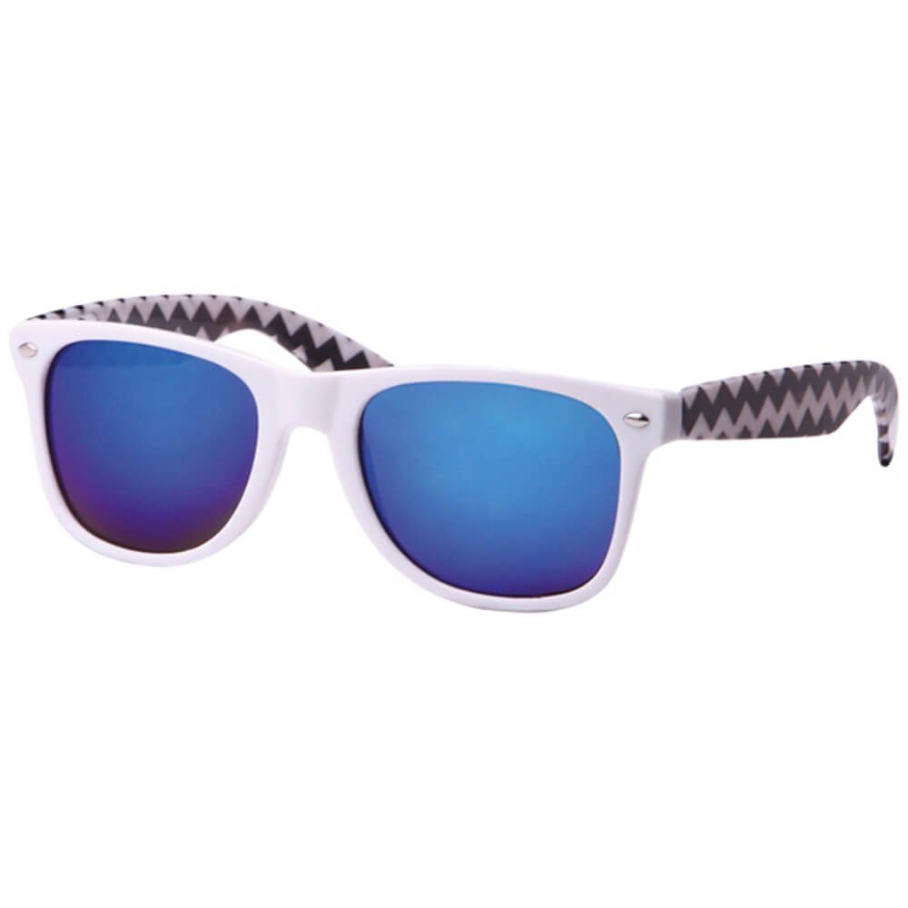 Diese Sonnenbrille lässt keine Wünsche offen! Mit den verspielt gemusterten Bügeln im Zick Zack Design und der Retro Optik ist sie das perfekte Fashionaccessoire. Farbe Tönung: Farbverlauf. Material Rahmen: Kunststoff. UV-Schutz: UV 400. Glashöhe: ca. 4,2 cm. Glasbreite: ca. 5,2 cm