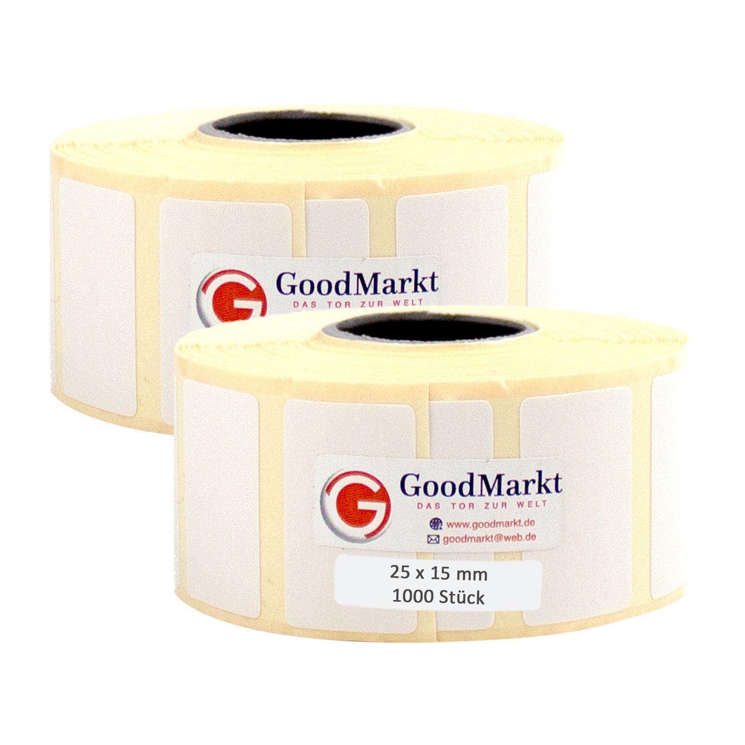 Entdecken Sie die vielseitigen GoodMarkt Thermoetiketten, die eine bequeme und hochwertige Lösung für all Ihre Etikettierbedürfnisse bieten. Diese selbstklebenden, weißen Etiketten sind in einer handlichen 25x15mm-Размер erhältlich und werden auf einer Rolle mit insgesamt 1000 Etiketten geliefert. Der 25mm-Kern sorgt für eine reibungslose Verwendung in verschiedenen Etikettendruckern, einschließlich Brother, Zebra und Phomemo.