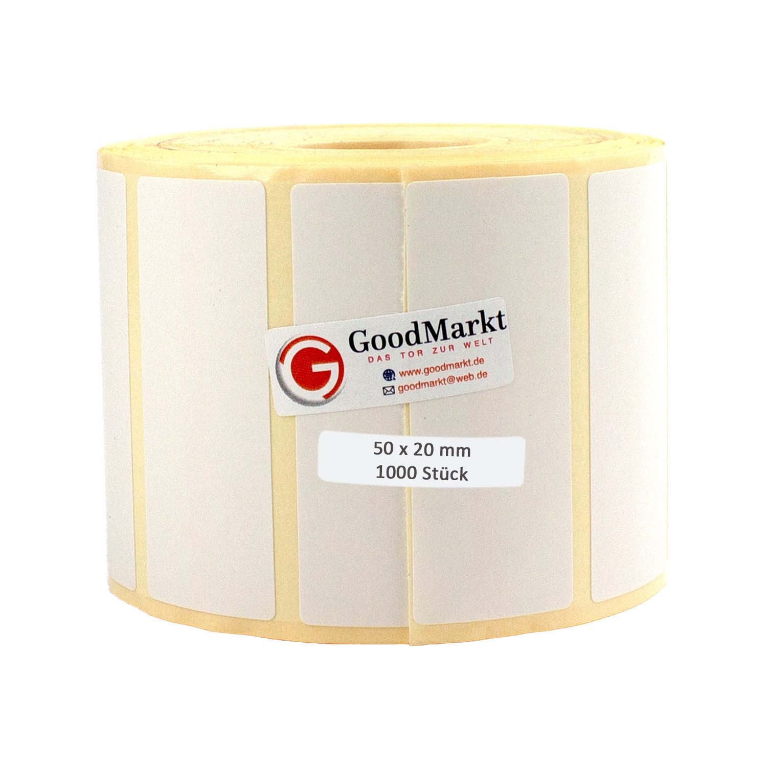 Entdecken Sie die vielseitigen GoodMarkt Thermoetiketten, die eine bequeme und hochwertige Lösung für all Ihre Etikettierbedürfnisse bieten. Diese selbstklebenden, weißen Etiketten sind in einer handlichen 50x20mm-Размер erhältlich und werden auf einer Rolle mit insgesamt 1000 Etiketten geliefert. Der 25mm-Kern sorgt für eine reibungslose Verwendung in verschiedenen Etikettendruckern, einschließlich Brother, Zebra und Phomemo.