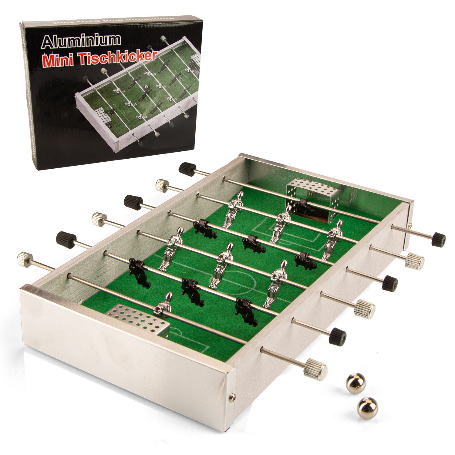Sie haben Lust auf heiße Fußballmatches überall und zwischendurch? Dieser Tischkicker bietet Riesenspaß für große und kleine Fußballfans und das einfach überall - egal ob im Pausenhof, in der TV-Werbepause, im Garten, beim Strandurlaub oder einfach beim Grillen. Holen Sie sich "Ihren" Minikicker und starten Sie ihre eigene WM zu Hause. Dank der kleinen Kulen vor jedem einzelnen Spieler ist der Ball erstaunlich gut zu kontrollieren und es kommt zu wahrhaft spannenden Spielen. Bereits fertig zusammengebaut und sofort startklar.