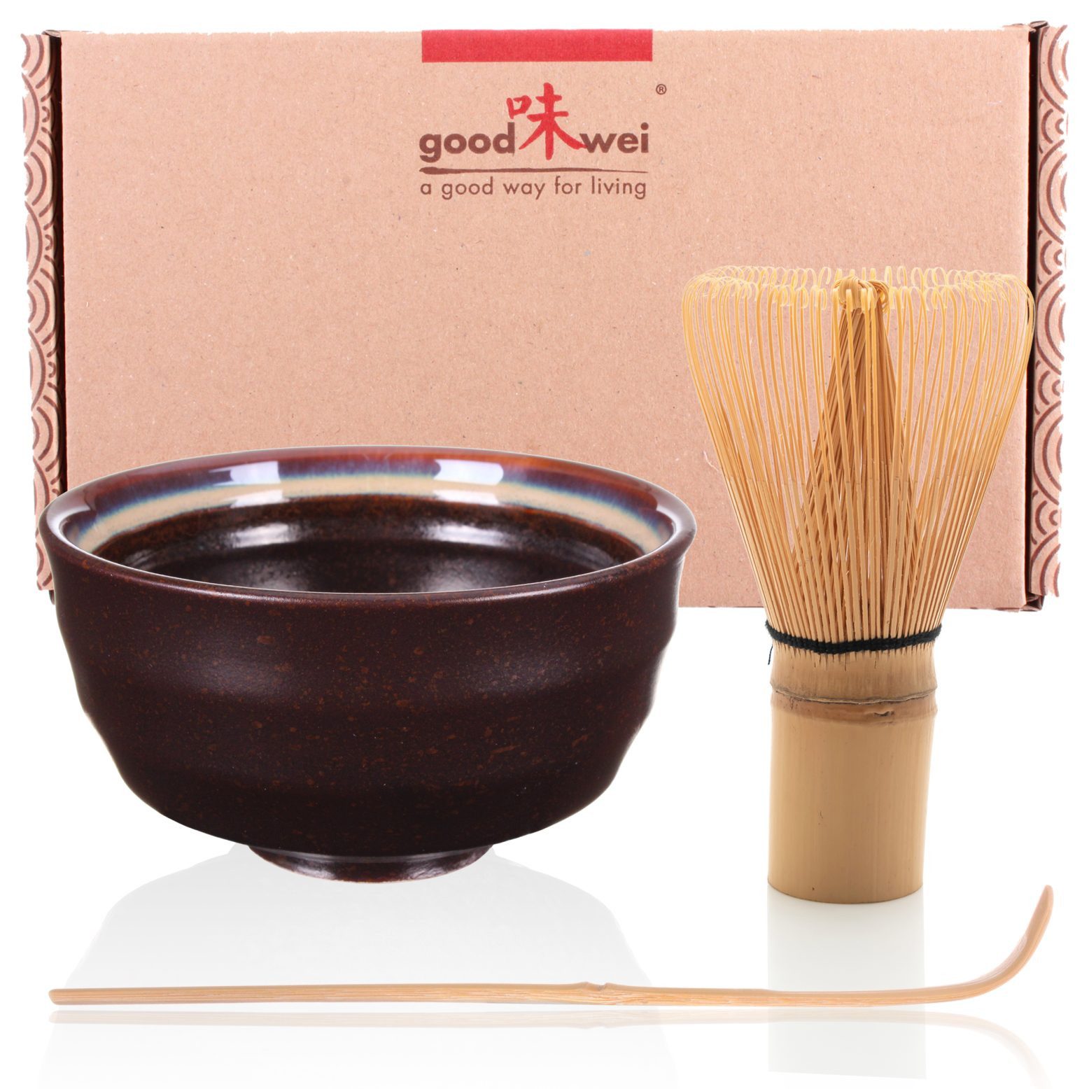 Entdecken Sie das bezaubernde Matcha-Set "Kumo" (jap. "Wolken") – perfekt für Einsteiger oder Gelegenheitsgenießer. Die handgearbeitete Keramikschale mit erdbraun-gesprenkelter Glasur und cremefarbenem Innenrand kontrastiert wunderbar mit dem satten Grün des Matcha-Tees. Im Set: 80-borstiger Bambus-Matchabesen (Chasen) für festen Schaum und traditioneller Matcha-Löffel "Chashaku" für perfekte Dosierung. Genießen Sie die faszinierende Welt des Matcha-Tees!