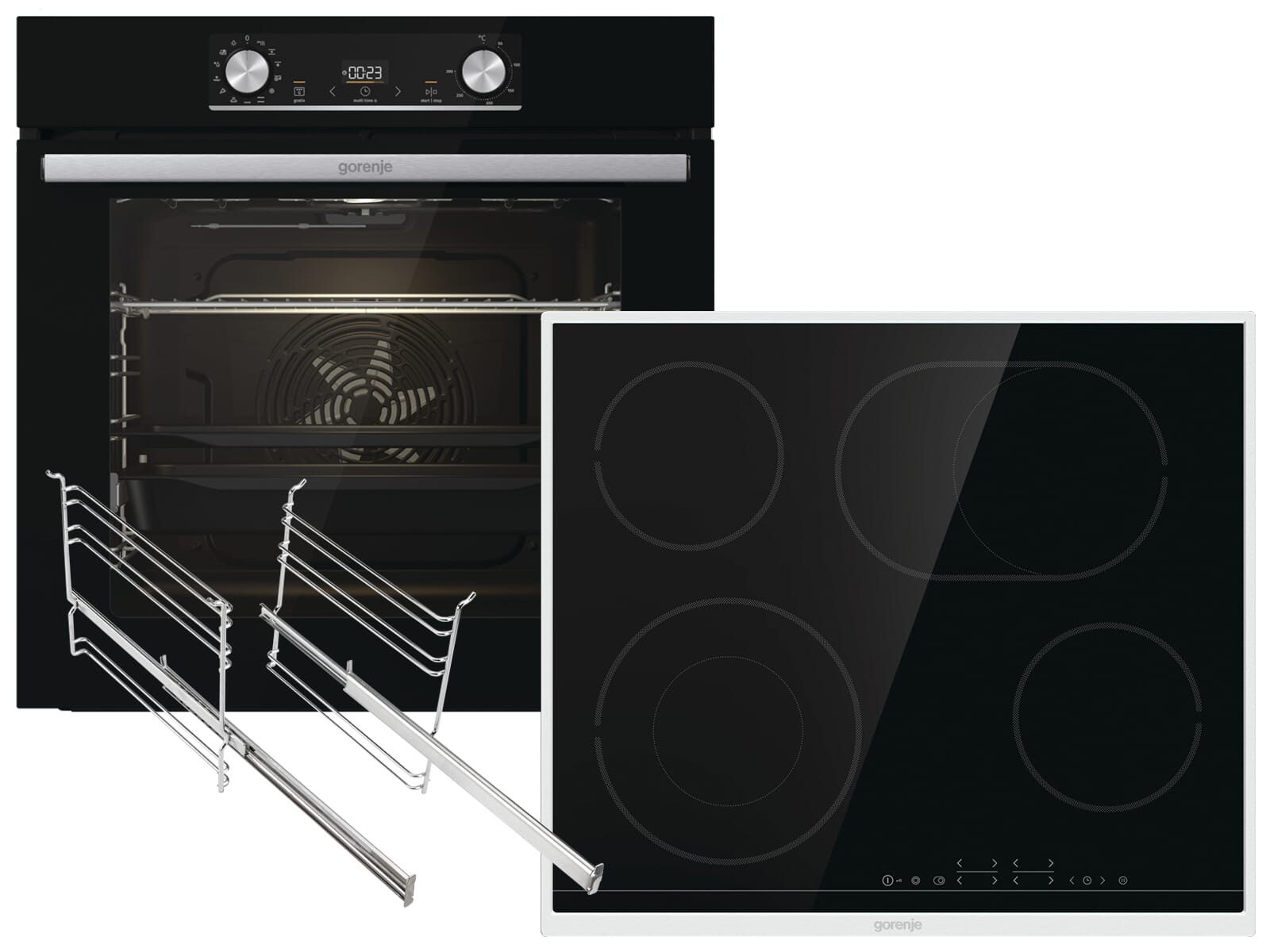 Set bestehend aus | Gorenje BOSX6737E06BG Backofen: - 1 Fettpfanne - 1 Backblech - 1 Grillrost - 1-fach Teleskopauszug, Gorenje ECT43X Glaskeramik-Kochfeld,