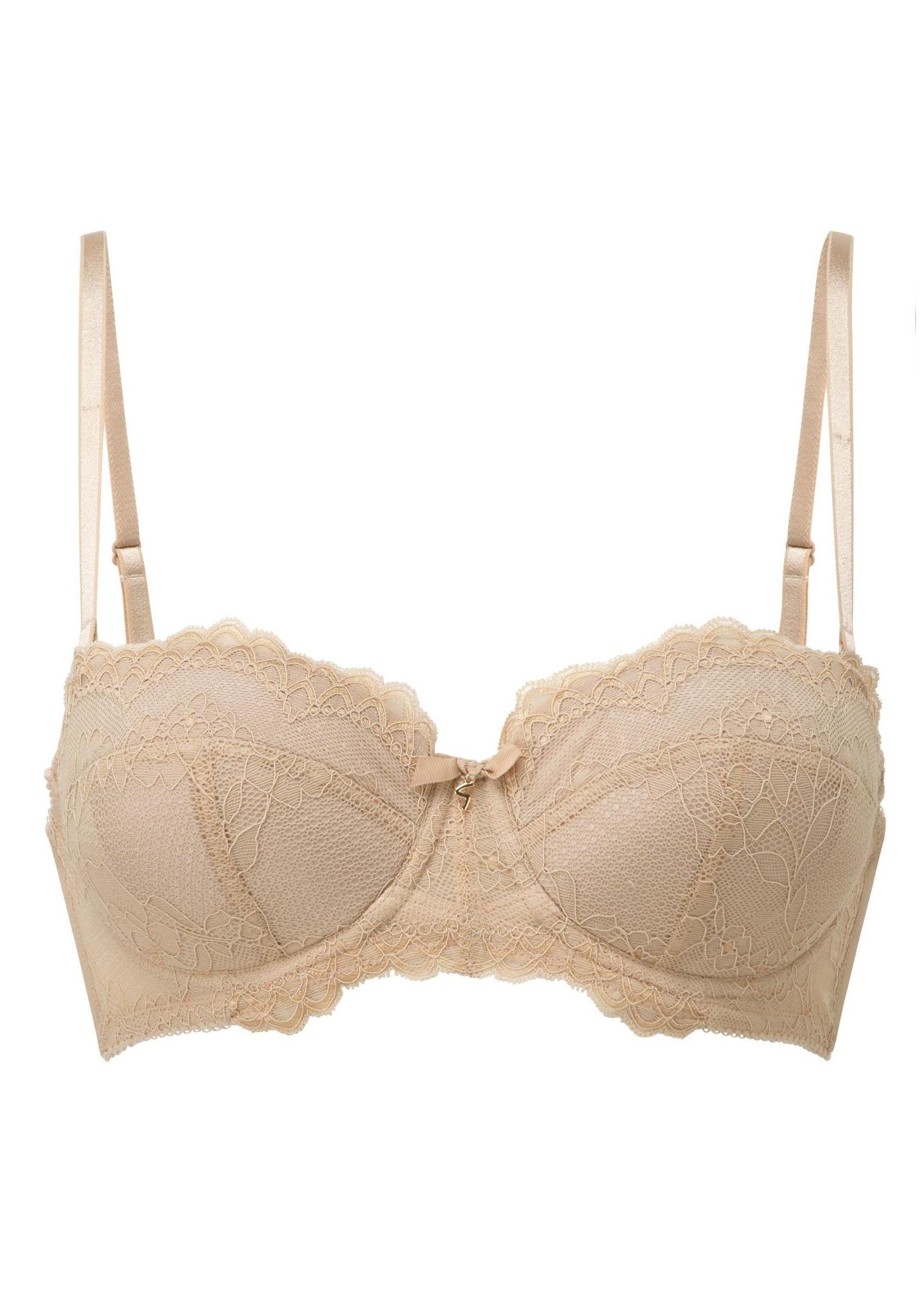 Die Farbe ist zuerst mal nicht"natur" sondern ein (für mich) hässliches mittelbraun, das ging schon mal gar nicht da die Abbildung ja eher einen dunkleren Creme-Ton zeigt. Der Stoff war o.k., nicht kratzig, aber leider wirklich gar kein "Push-up" - was vor allem bei grösseren Brüsten sofort auffällt da eben alles hängt.