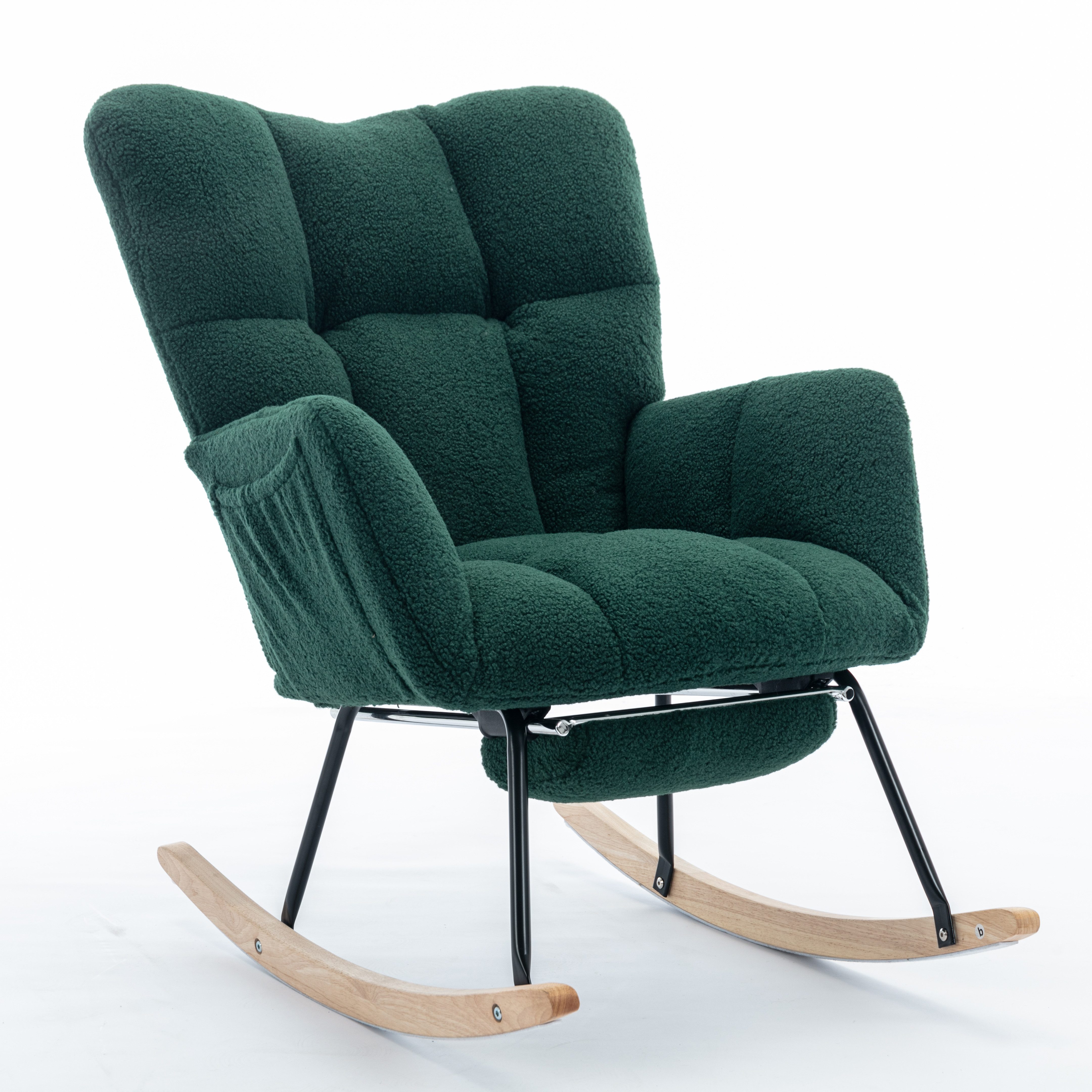 Spezifikation Produktposition:Weiches Teddy-Material + Schaumstofffüllung + Holzrahmen + Schwarz lackierter Metallrahmen + Holz-Schaukelbeine + Gepolstert + Boden-Schutz- und Isolationsschicht Technische Daten: 80 x 98 x 95,8 cm (L x B x H). Verpackungsabmessungen:72*69*38cm(L*B*H) NW/GW: 14,5 kg/17 kg Gewichtskapazität: 110 kg Produktmontage: Es kann von einer Person in 15 Minuten zusammengebaut werden Anwendbares Alter:Von 7 bis 70 Jahren Produktpflege: Flecken mit einem weichen, trockenen Tuch abwischen