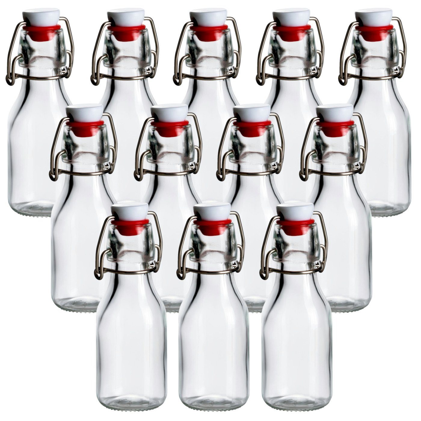 gouveo Trinkflasche Glasflaschen 100 ml mit Bügelverschluss rot - Kleine Bügel-Flasche, 12er Set